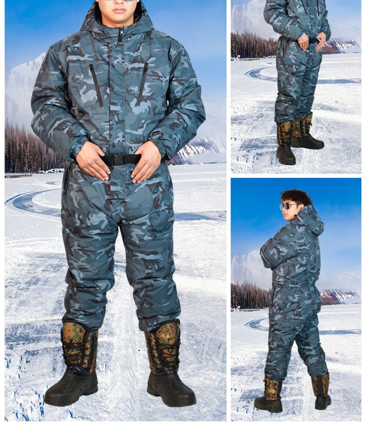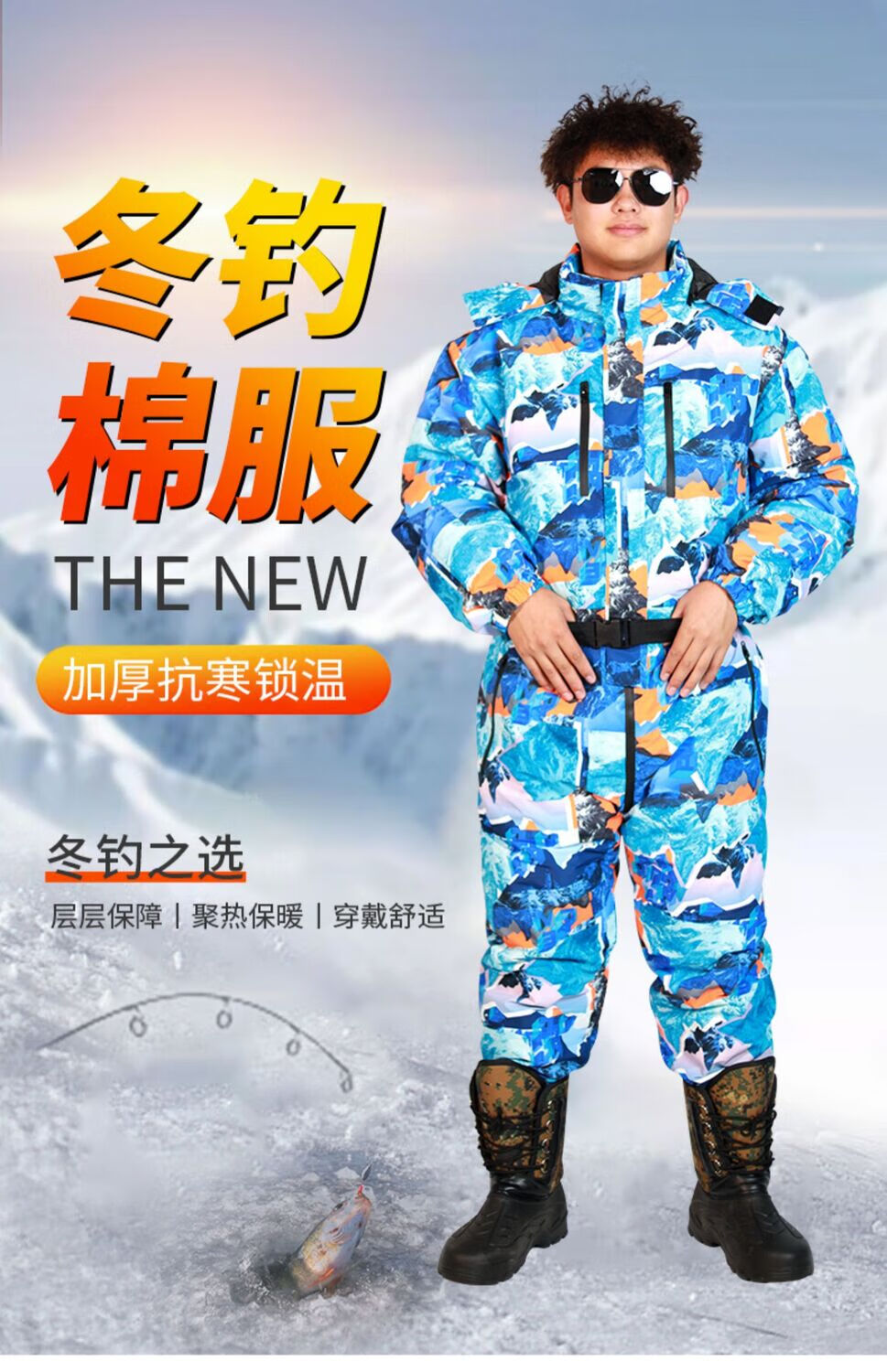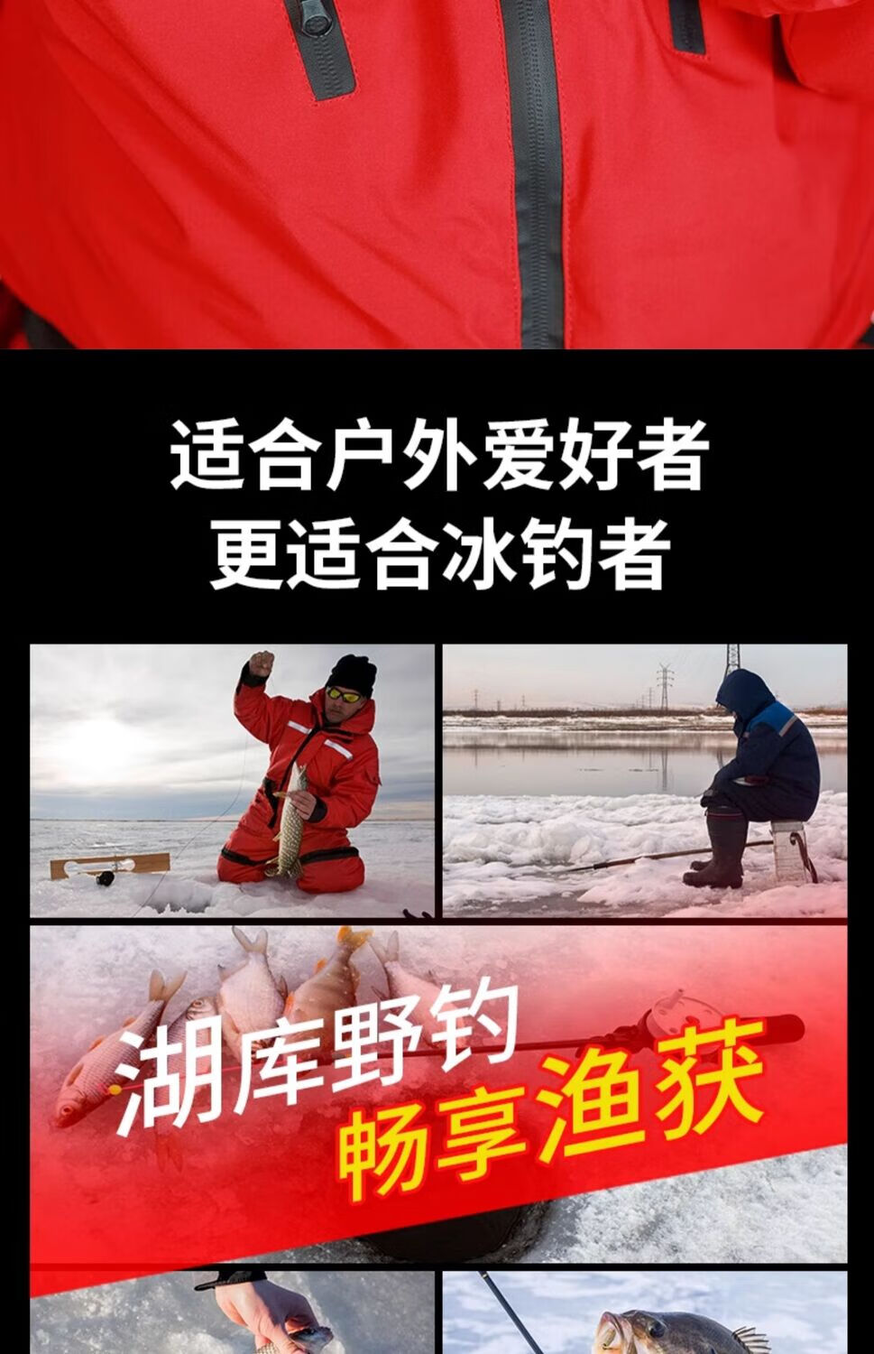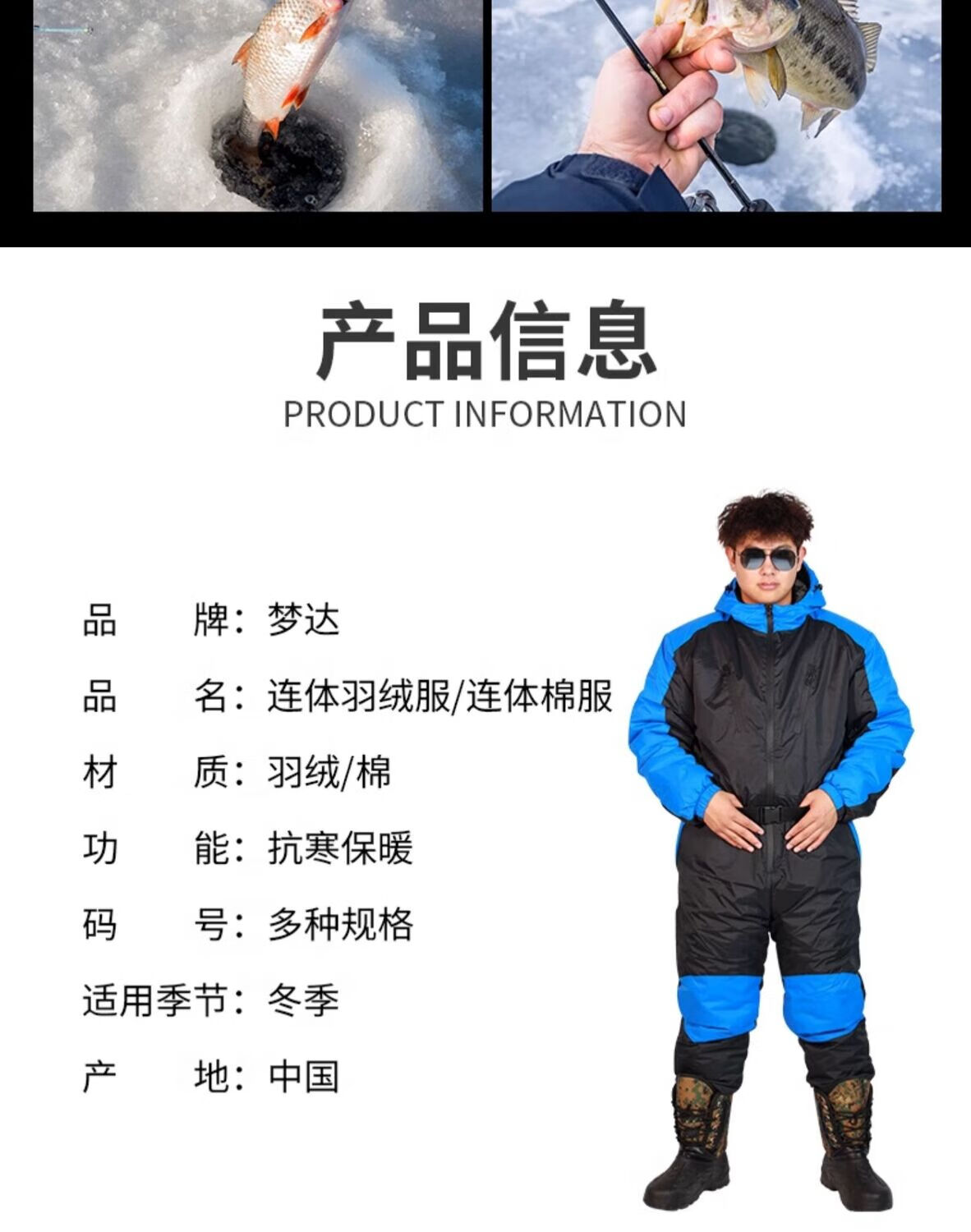 Mengda thickened and warm winter fishing clothing, winter fishing for anchor fish, ice fishing, cold storage, sea fishing, antifreeze one-piece cold-proof down jacket, gray one-piece cotton jacket 2XL (recommended height 1.8-1.85 and weight 210 or above