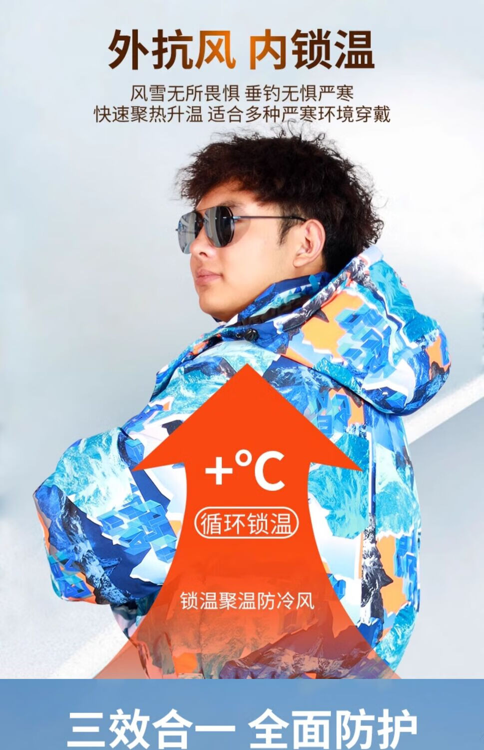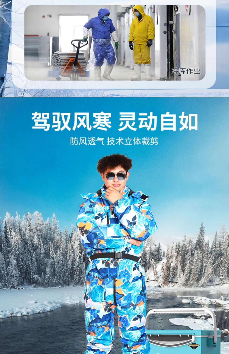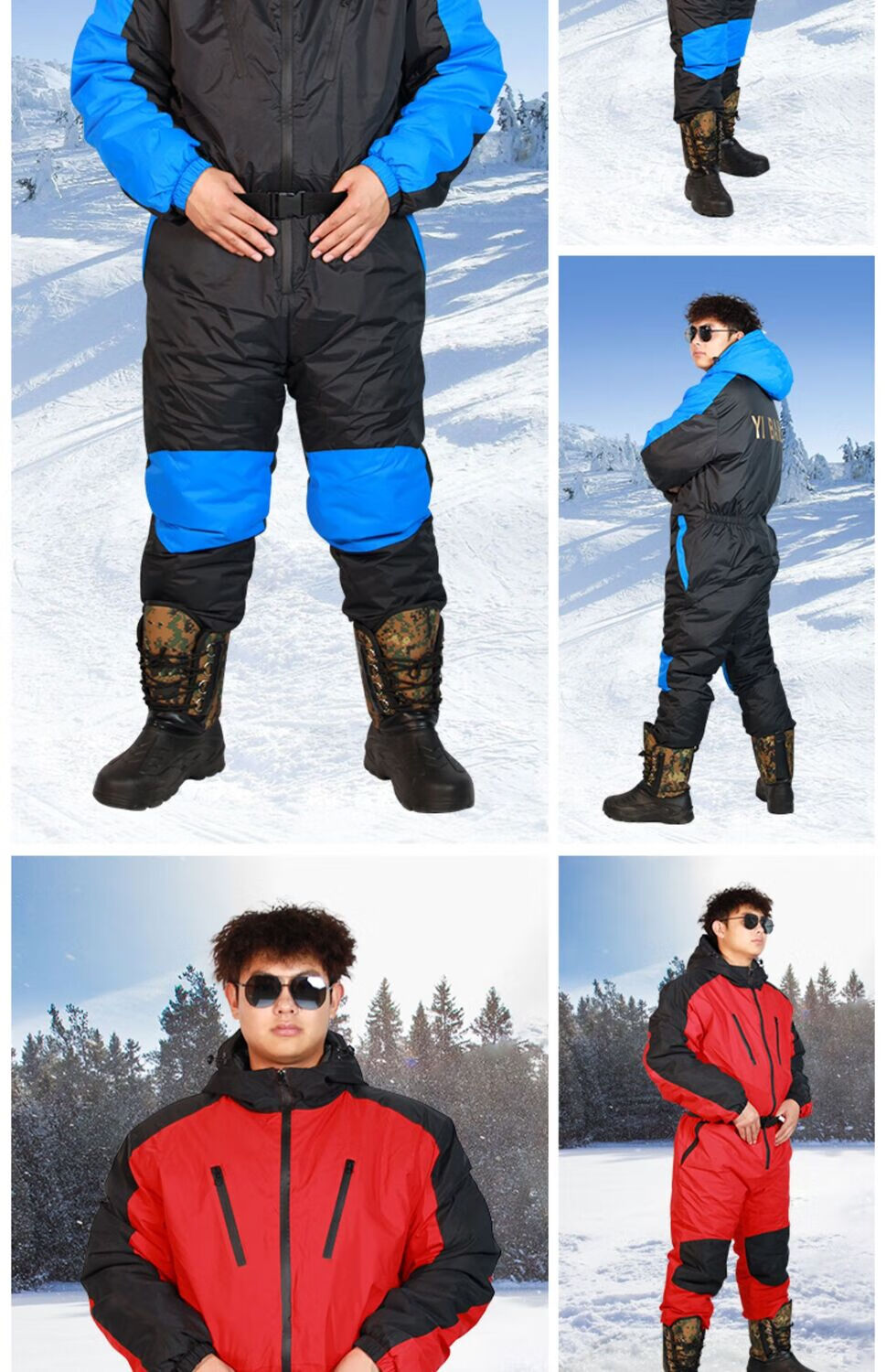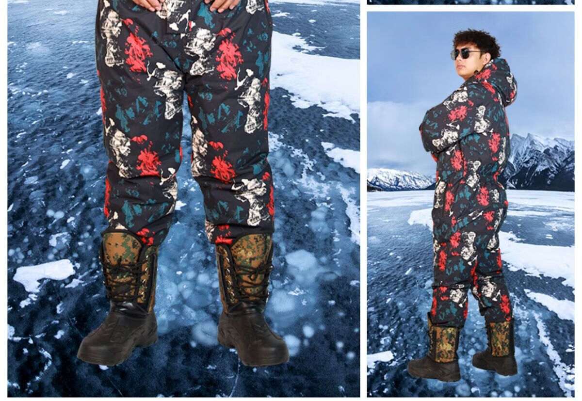 Mengda thickened and warm winter fishing clothing, winter fishing for anchor fish, ice fishing, cold storage, sea fishing, antifreeze one-piece cold-proof down jacket, gray one-piece cotton jacket 2XL (recommended height 1.8-1.85 and weight 210 or above