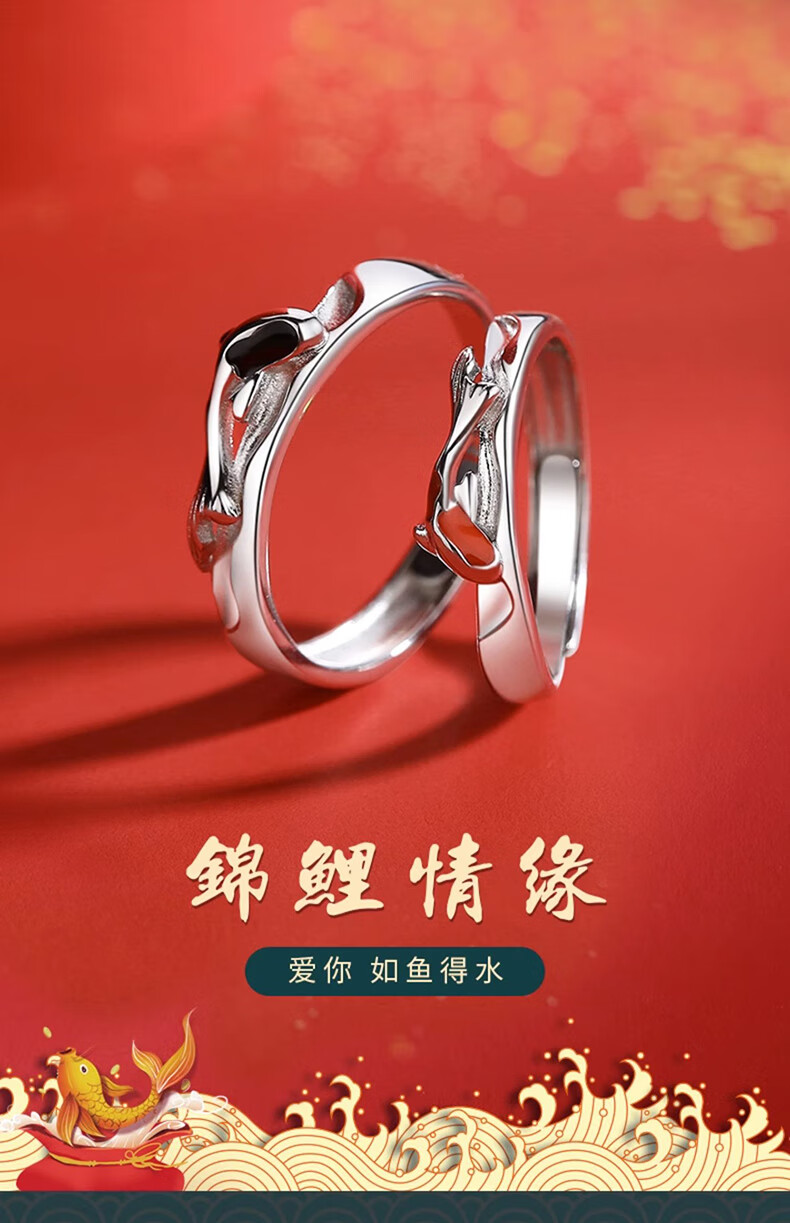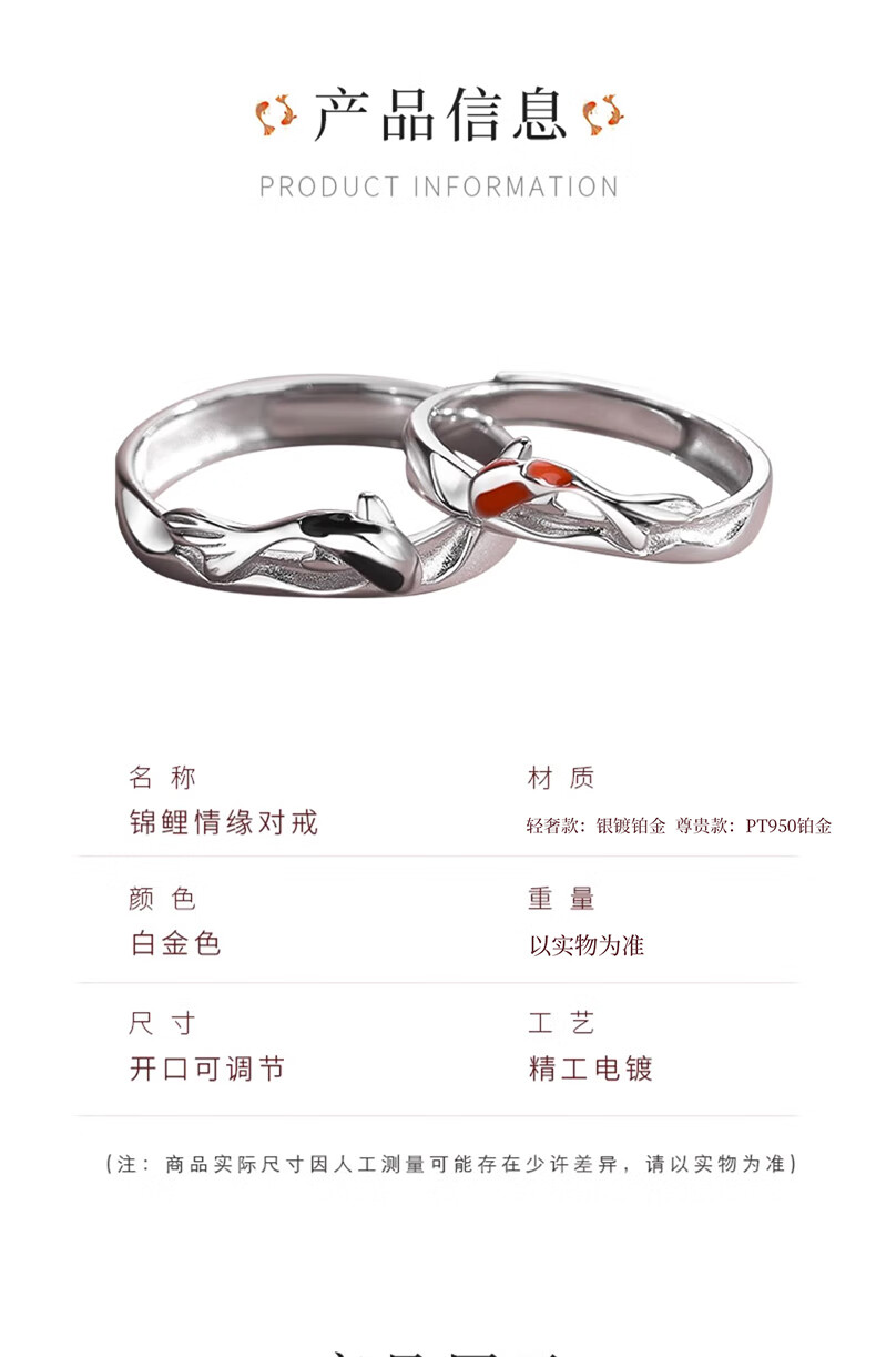 Dirholl Koi Love Platinum Ring PT950 Couple Ring Birthday 520 Valentine's Day Gift for Girlfriend and Wife Exquisite Customized Model - Koi Love Ring - Can be engraved