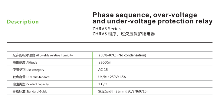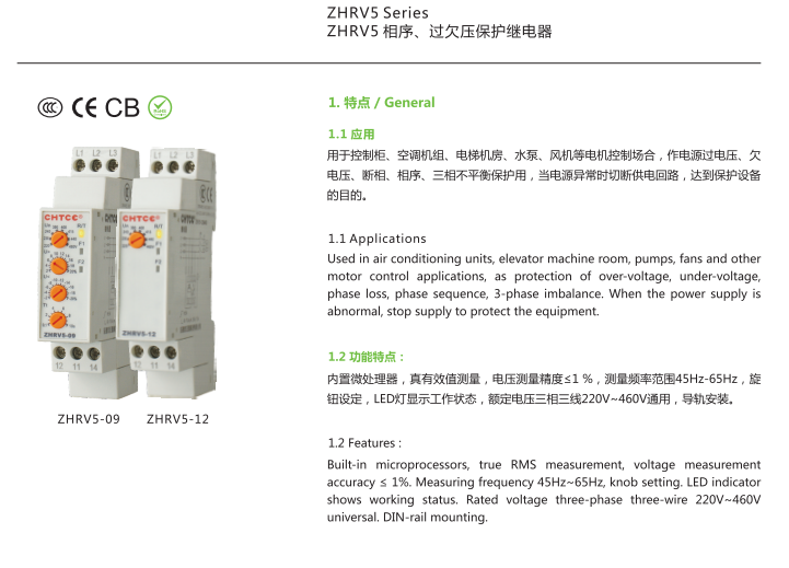 ZHRV5 Technology CHTCE Phase Sequence Over and Under Voltage Protector Phase Sequence Over and Under Voltage Relay RV5-03~12 Milky White ZHRV5-10 M460