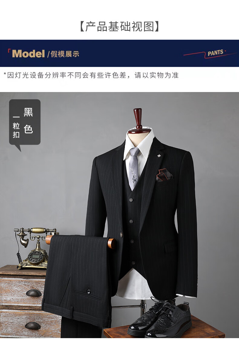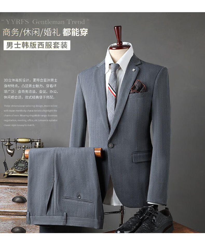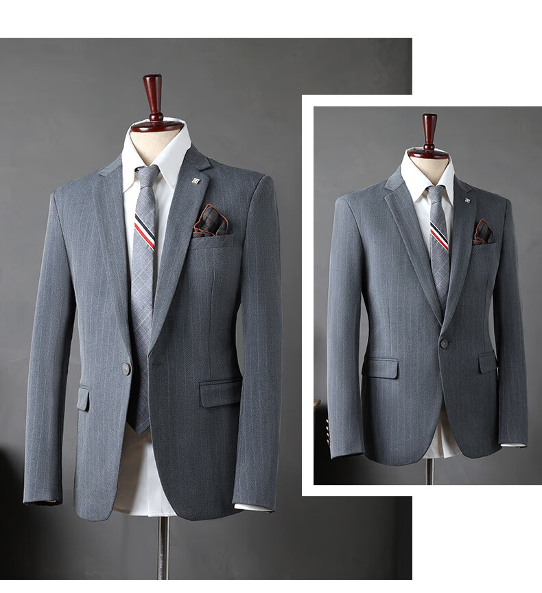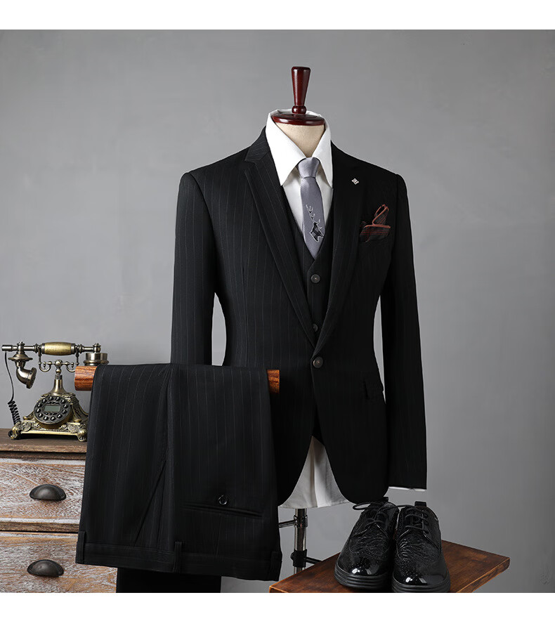 Woodpecker (TUCANO) New Wedding Suit Men's Groomsmen's Suit Business Formal Wear Korean Slim Striped Groom's Suit Jacket Men's Black Stripe (Suit+Trousers) XL 52 (125-135Jin Jin equals 0.5kg)