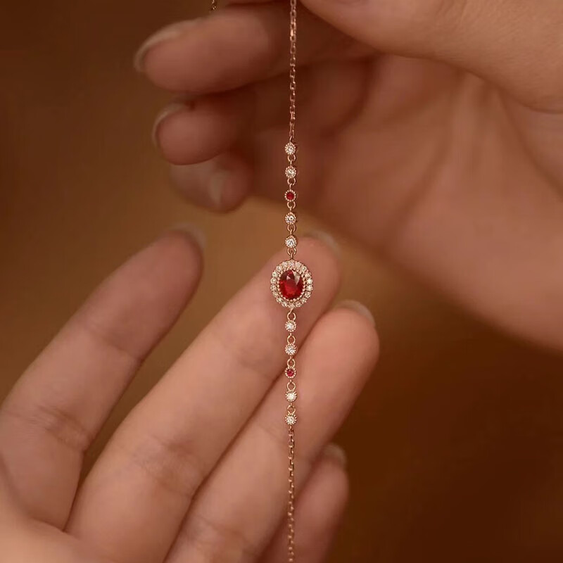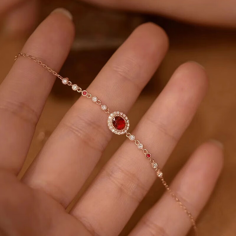 Muqian s925 silver French retro inlaid ruby bracelet for women, versatile, luxurious, noble and elegant gift for girlfriend, ruby bracelet - rose gold