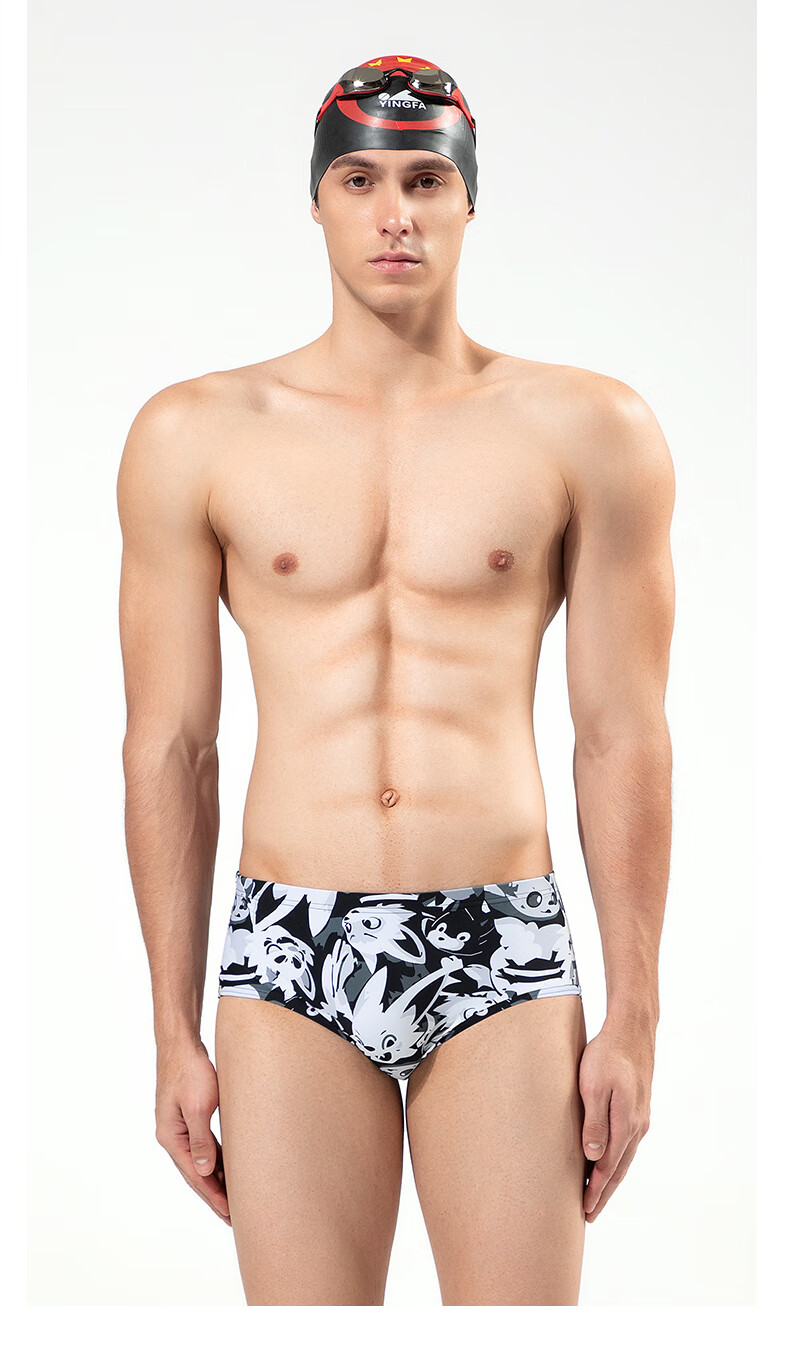 英发英发泳裤男款专业竞速三角泳裤男士泳衣成人儿童训练泳裤9679宽边 黑白9679 S