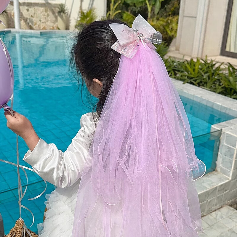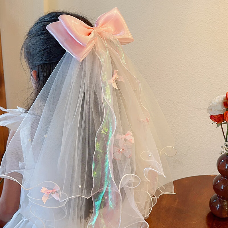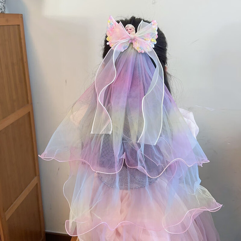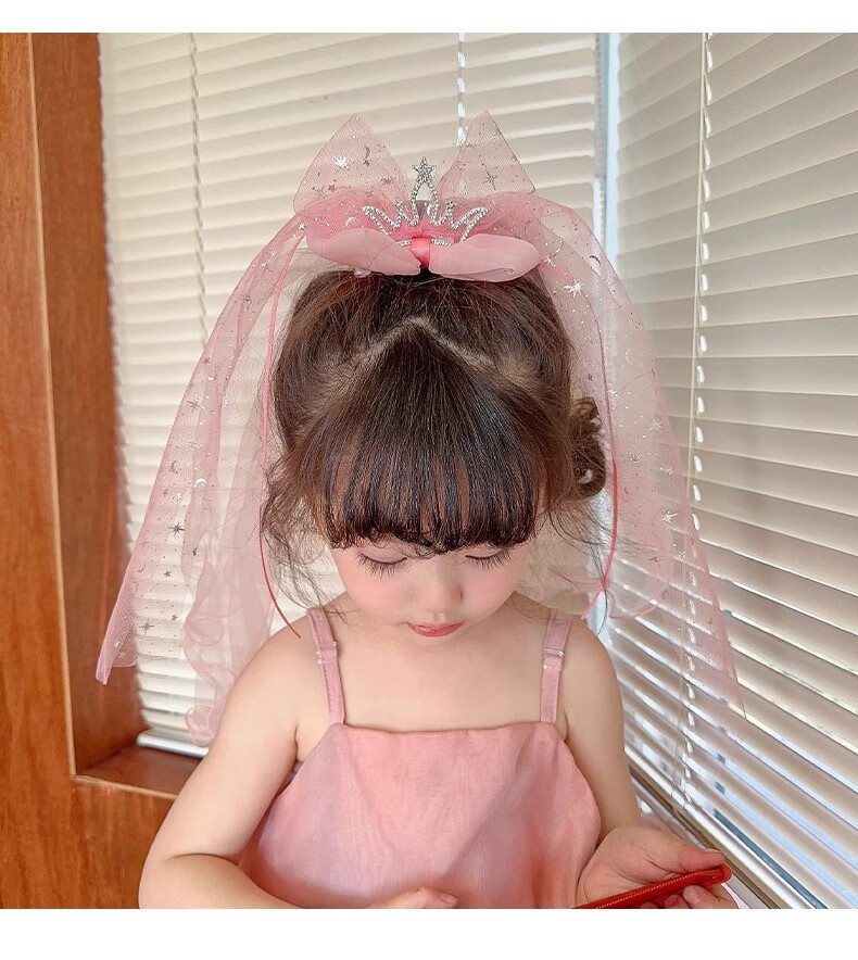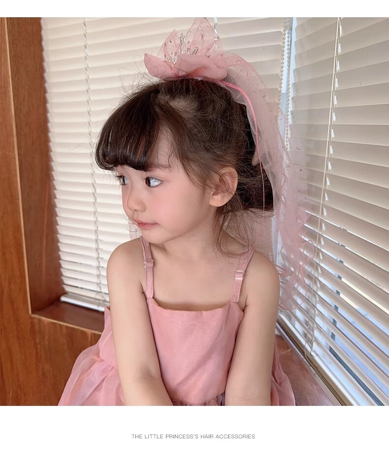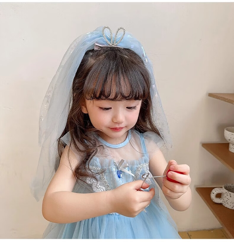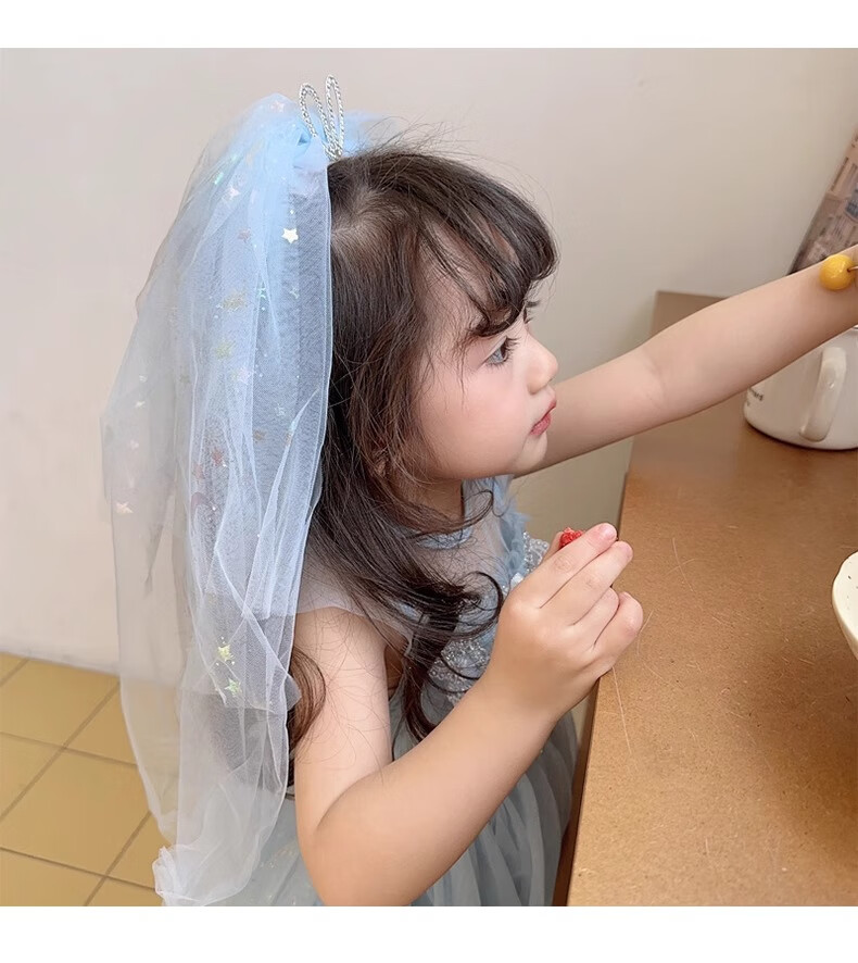 Fat Donglai's same style children's veil girl Elsa princess skirt headdress flower girl baby birthday dress Elsa hair accessories beige five-star crown yarn length 55cm, clip length 6c