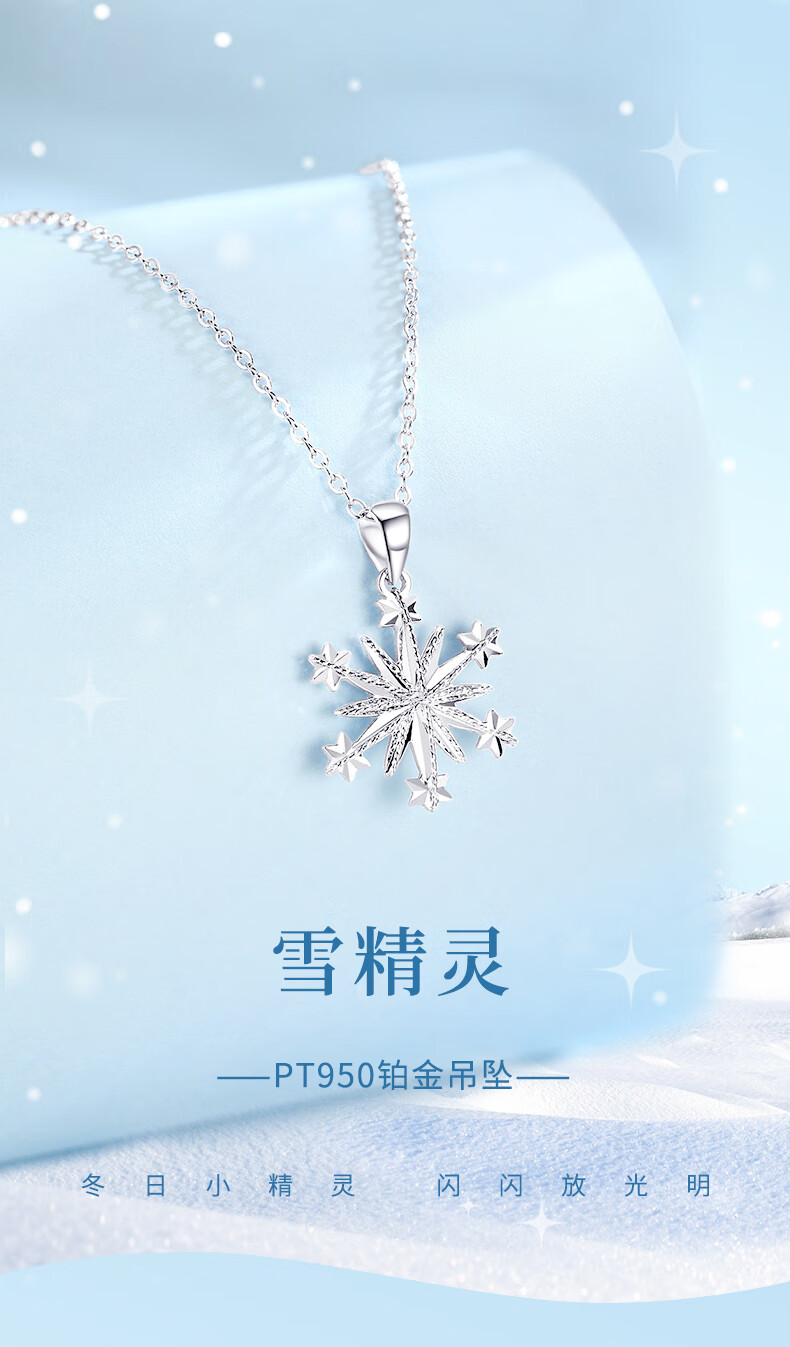 Zokai Snow Elf Pt950 Platinum Pendant Snowflake Platinum Pendant Designed as a Birthday Gift for Girlfriend Snow Elf Pendant About 1.35-1.45g