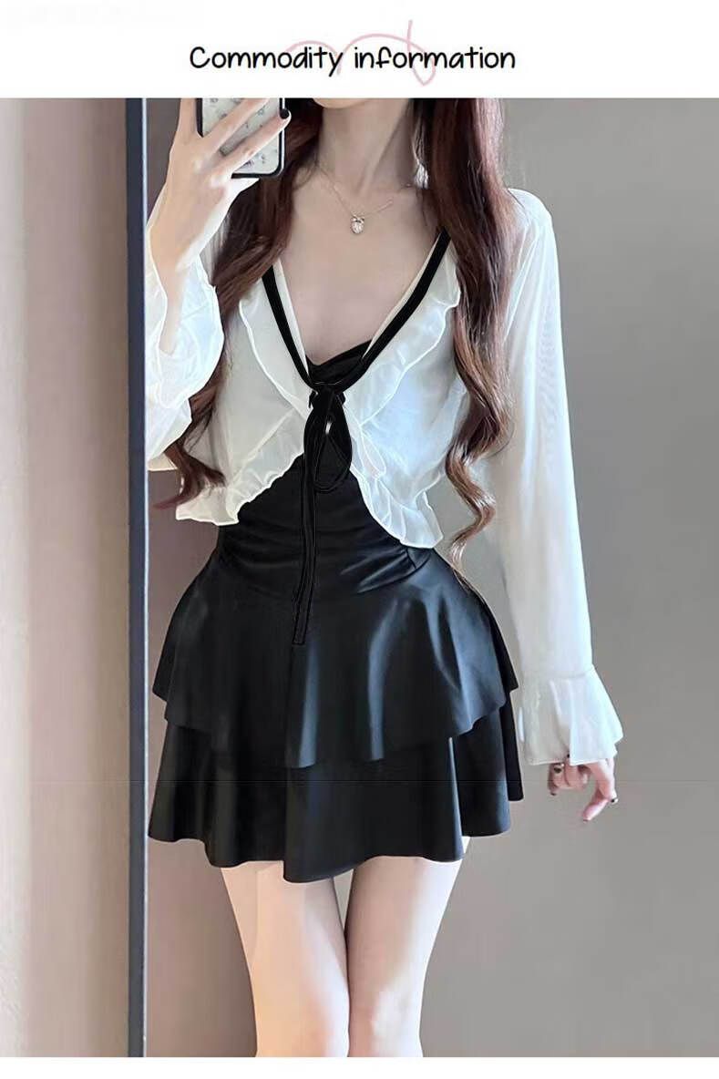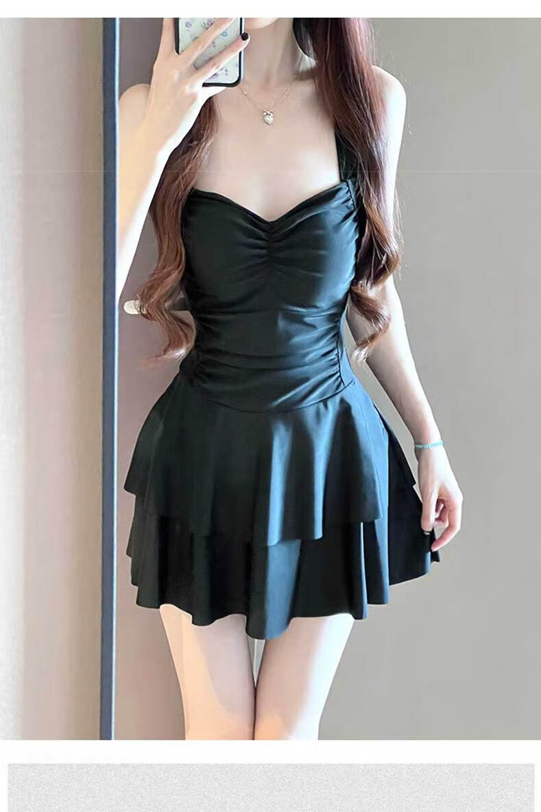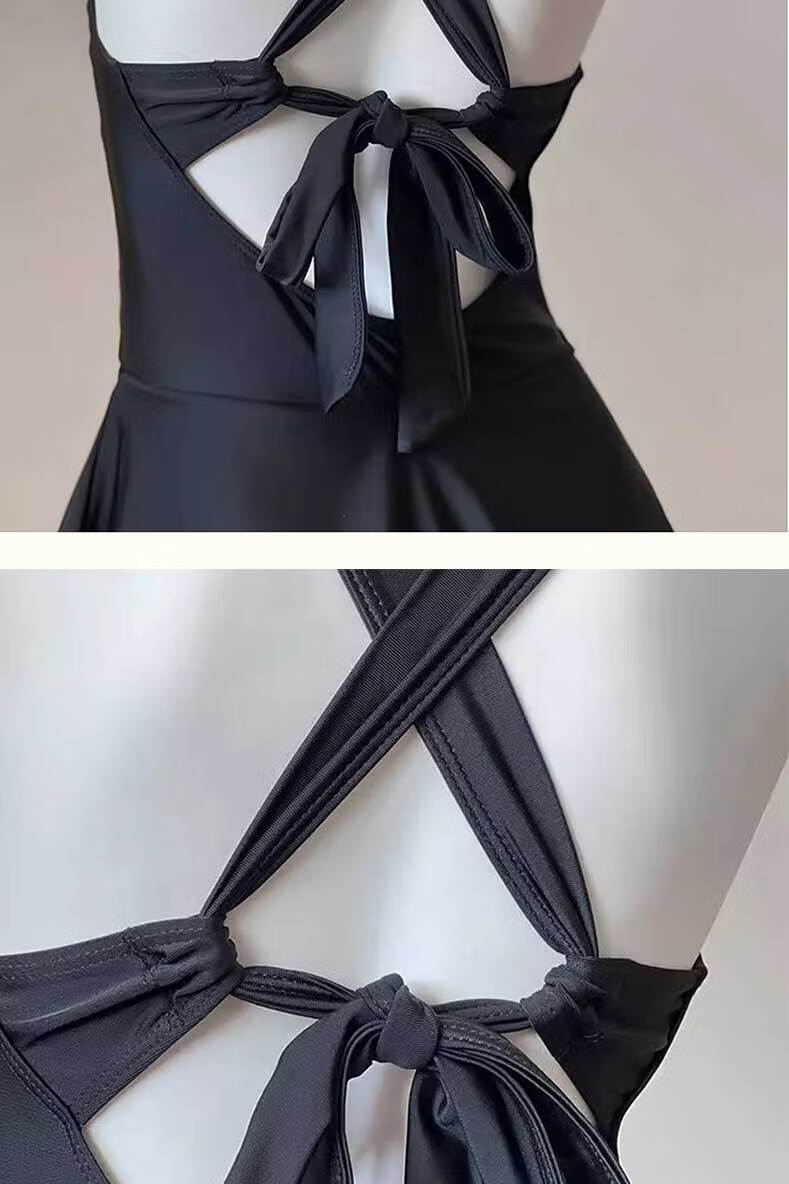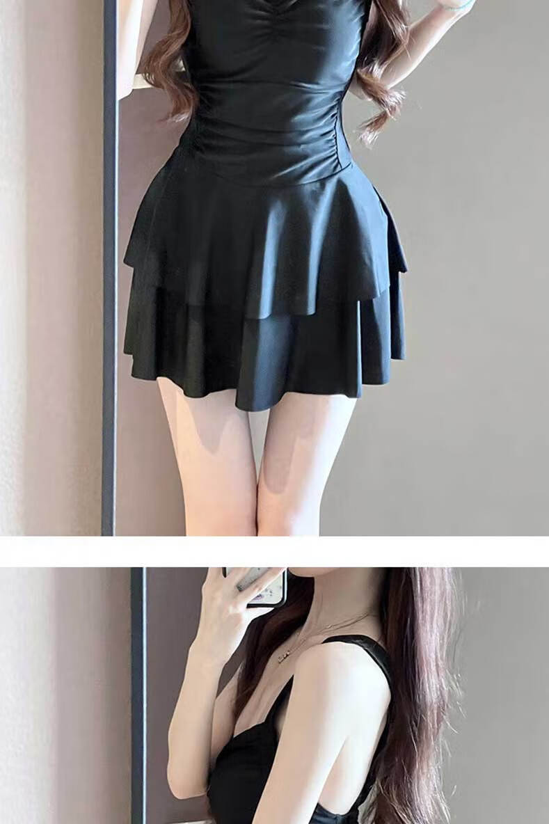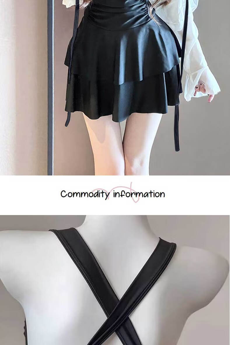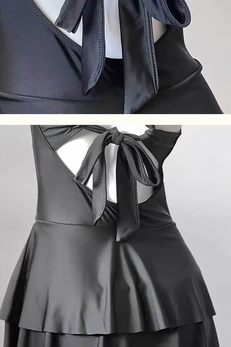 Lugeli swimsuit women's hot spring covering the flesh conservative one-piece skirt style slimming high-end long-sleeved sun protection two-piece swimsuit pure desire one-piece swimsuit black one size fits all recommended 80-120 Jin Jin equals 0.5 kg