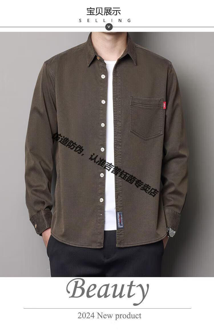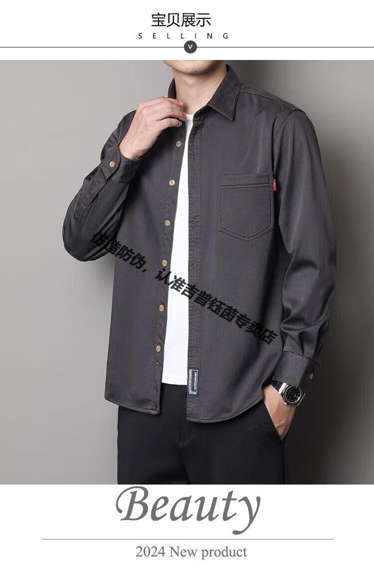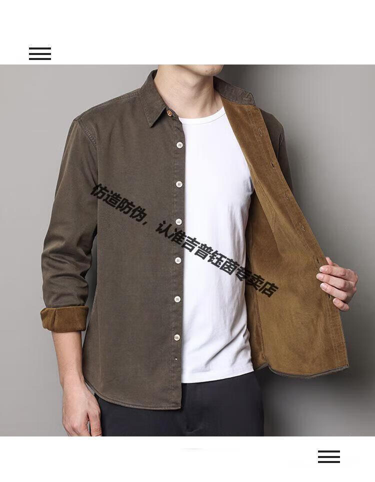 JEEP SPIRIT Jeep velvet shirt 2025 young and middle-aged autumn and winter long-sleeved Tencel winter loose casual shirt anti-wrinkle jacket gray Jeep shirt M 100-115Jin Jin equals 0.5 kg