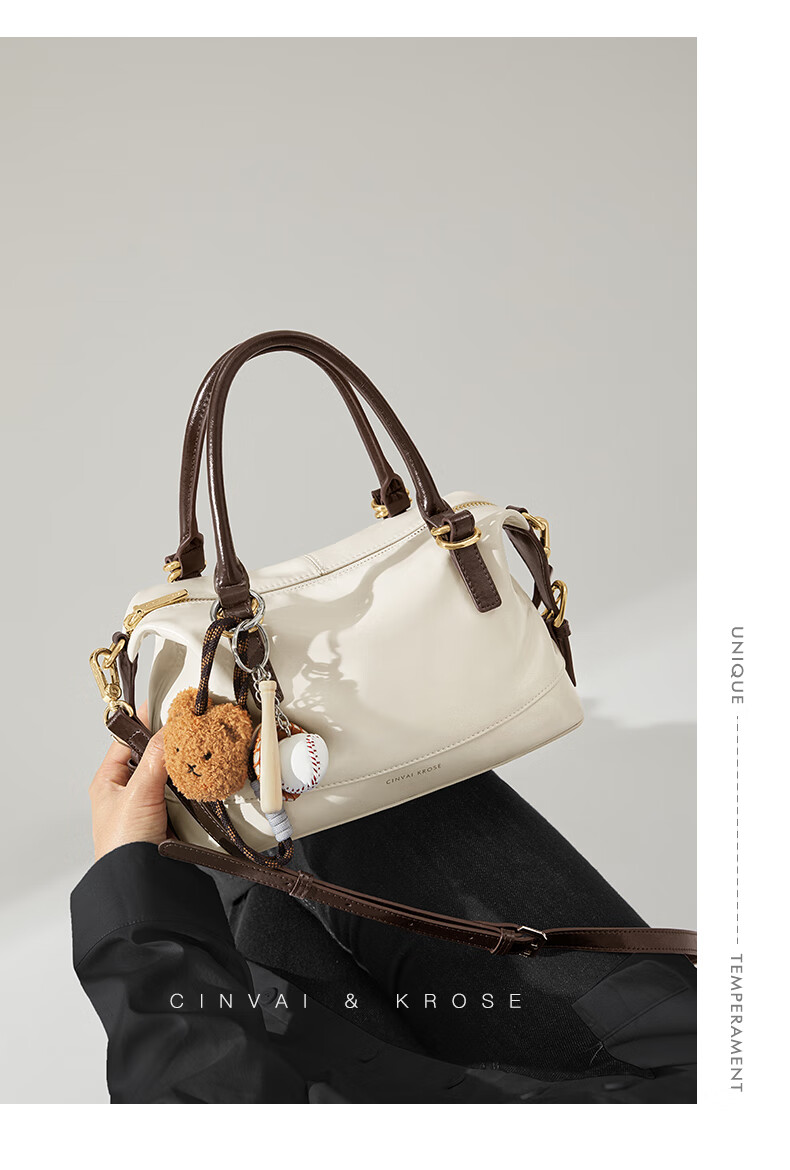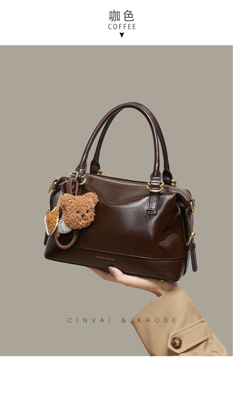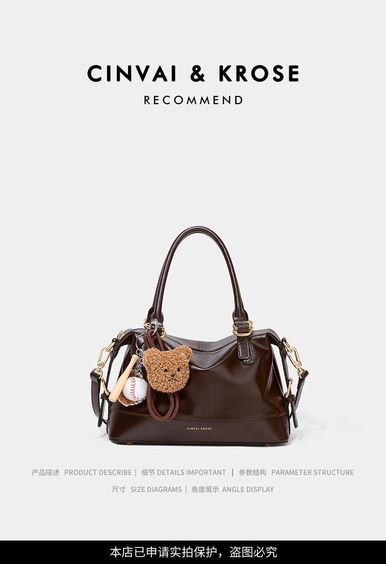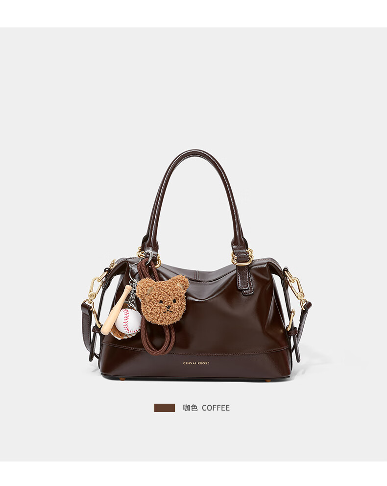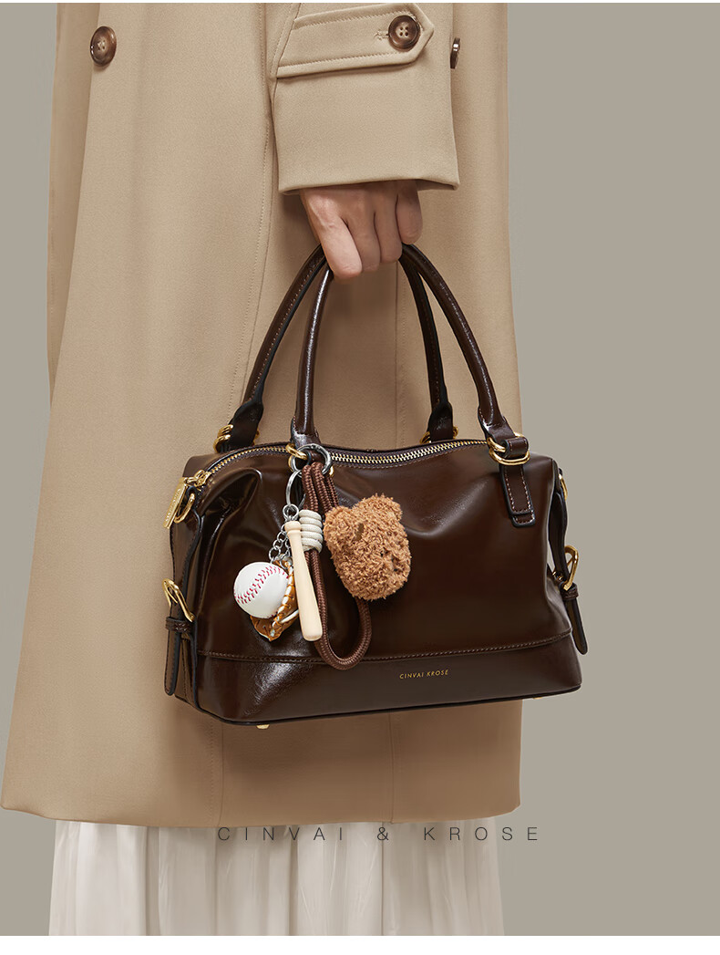 CinvaiKrose bag women's bag portable bowling bag women's 2026 new large capacity retro single shoulder messenger bag New Year gift coffee color