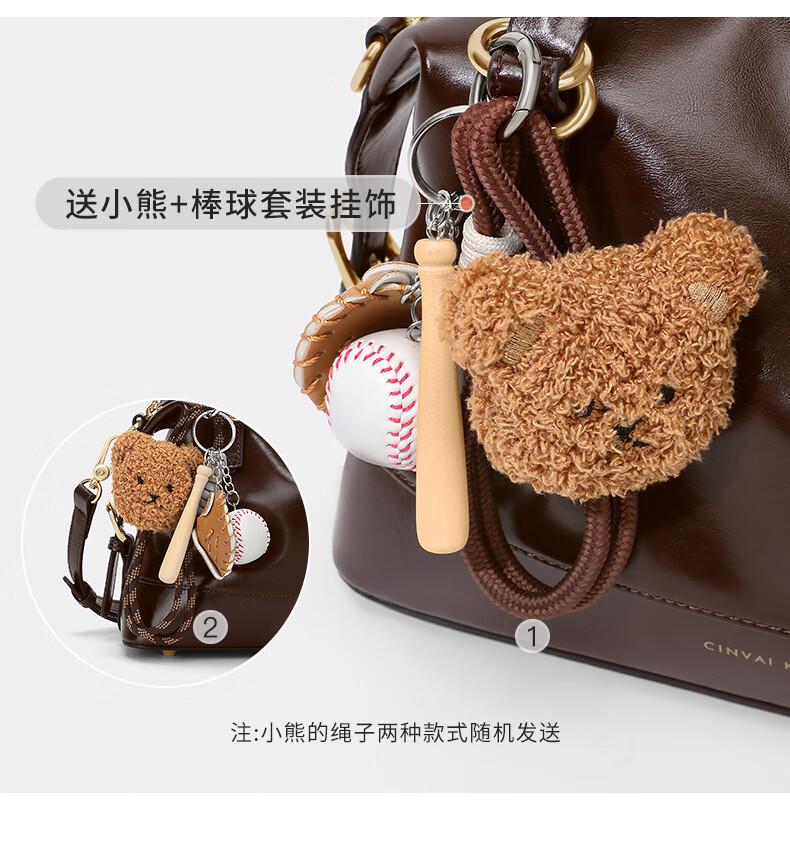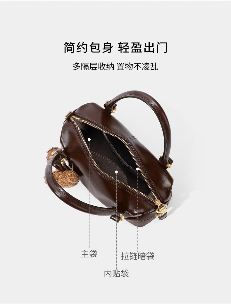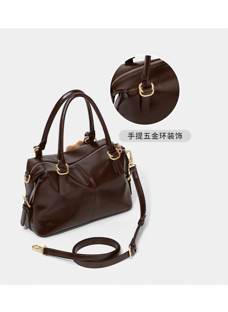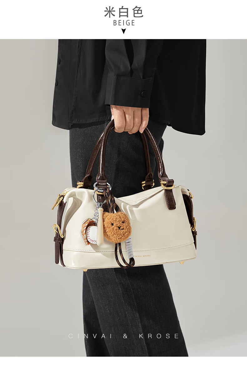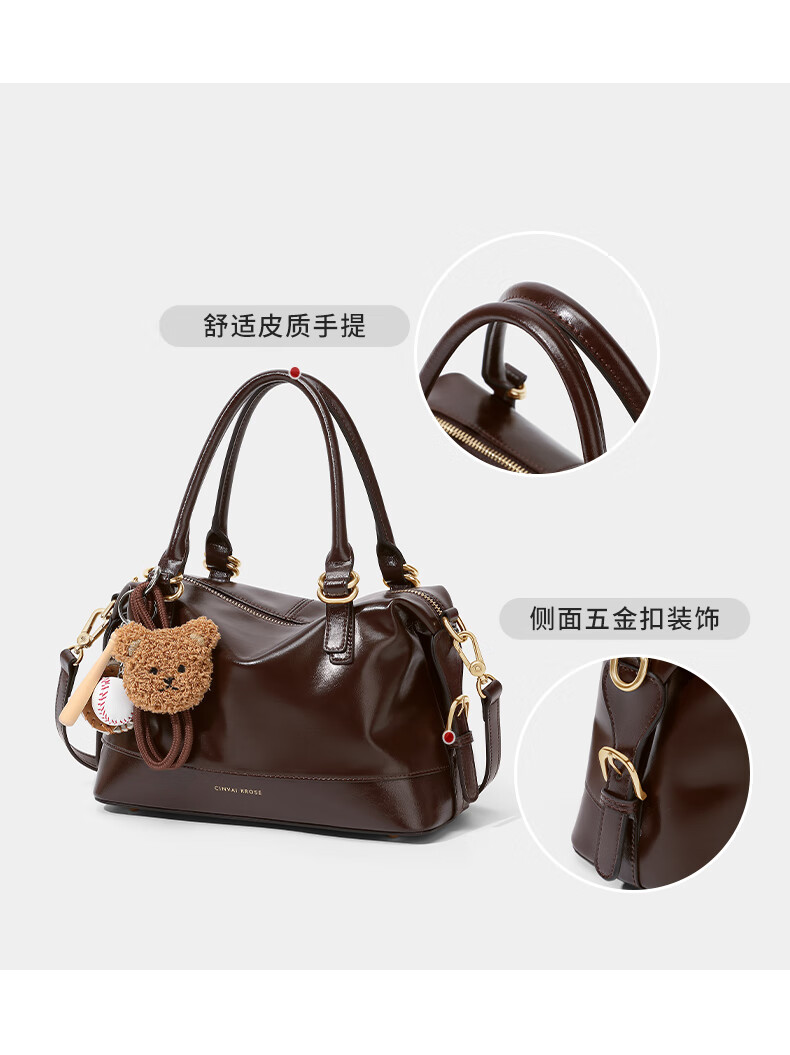CinvaiKrose bag women's bag portable bowling bag women's 2026 new large capacity retro single shoulder messenger bag New Year gift coffee color