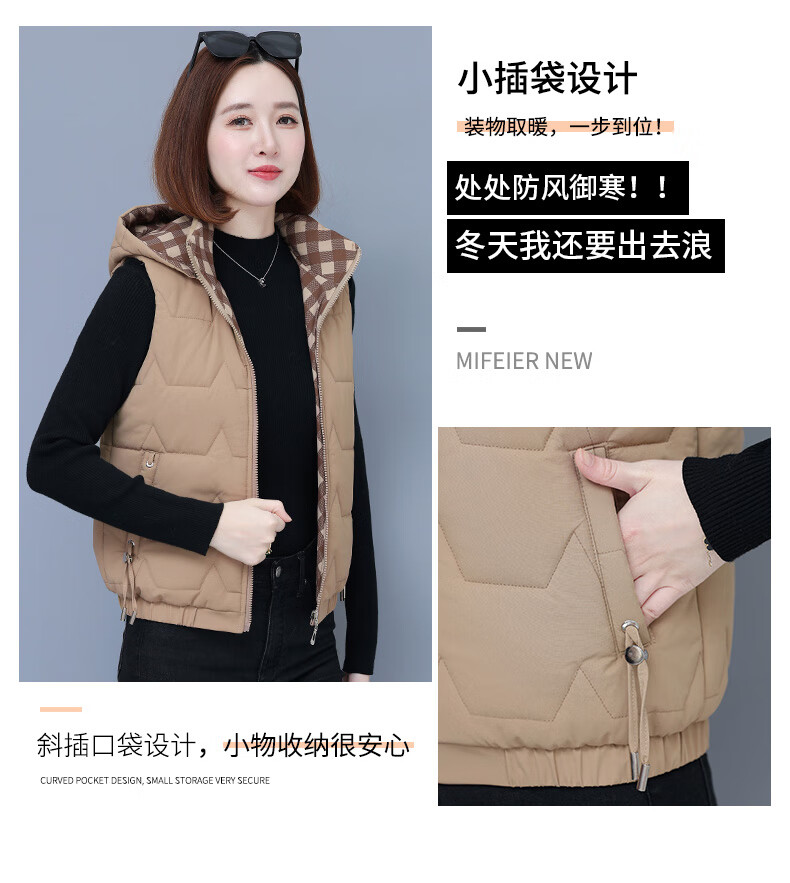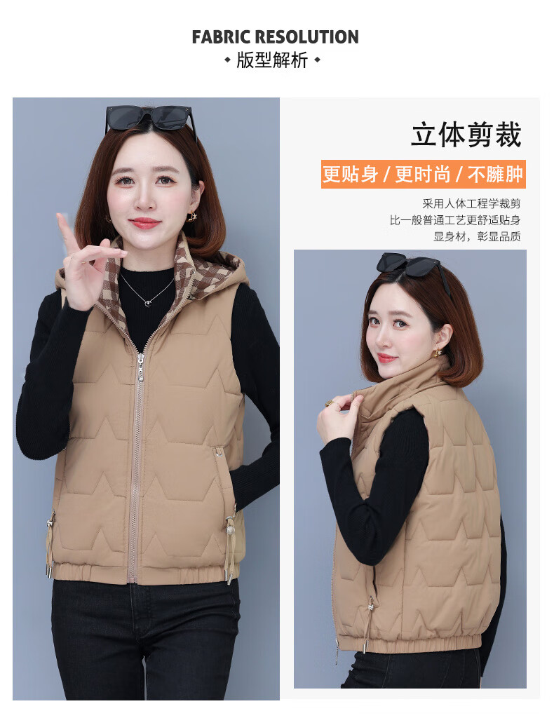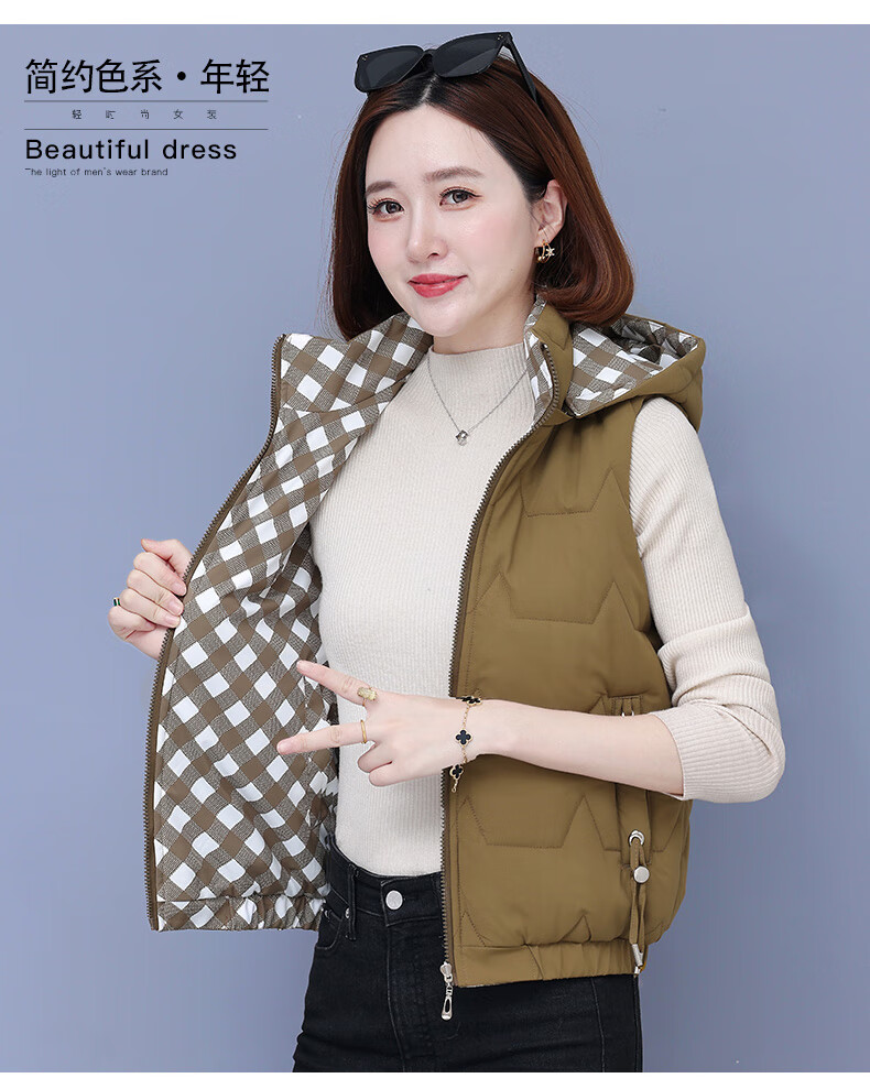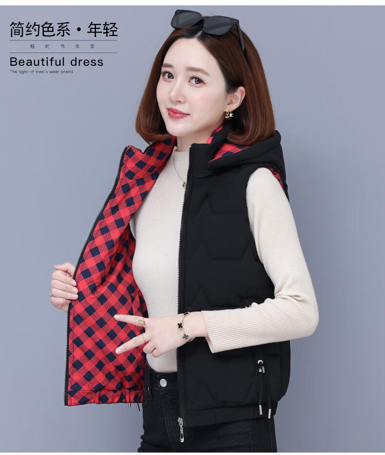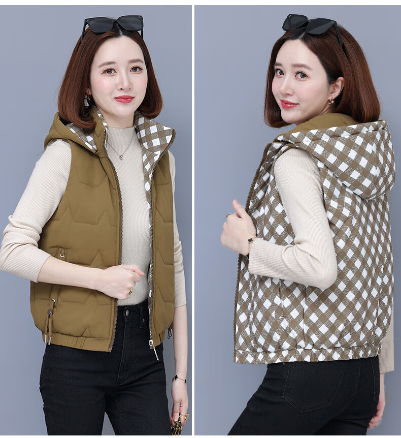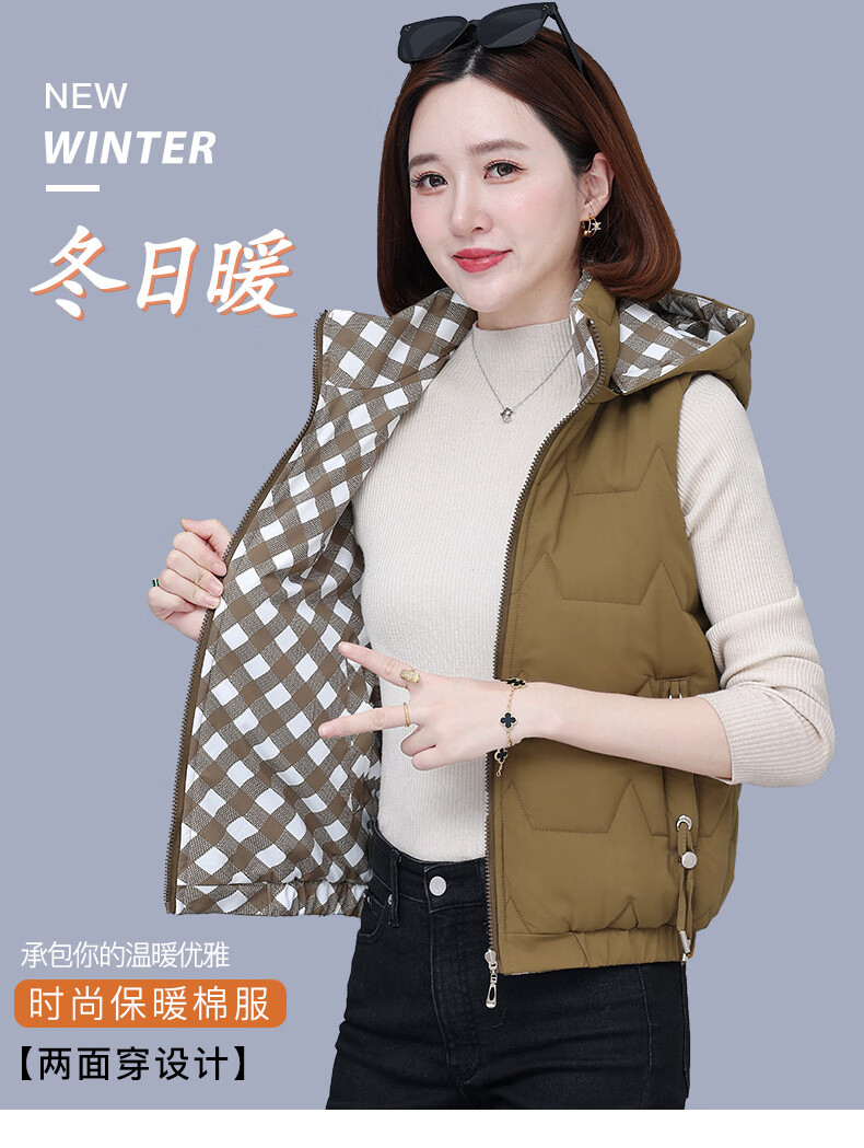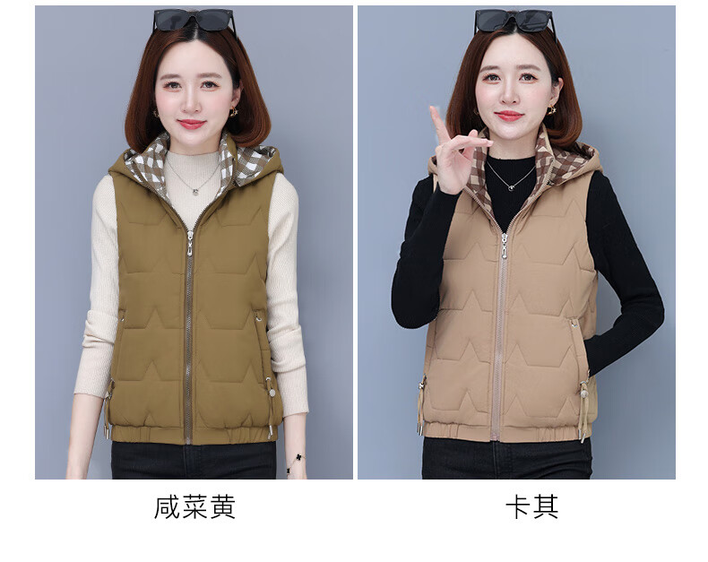 Woodpecker reversible women's down cotton vest 2024 new vest outer wear middle-aged and small autumn and winter vest for women pickle yellow XL recommended weight 115-130Jin Jin equals 0.5 kg