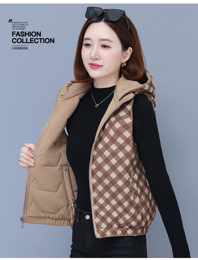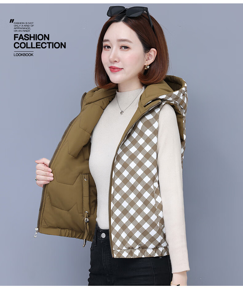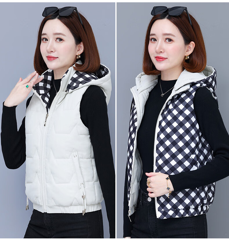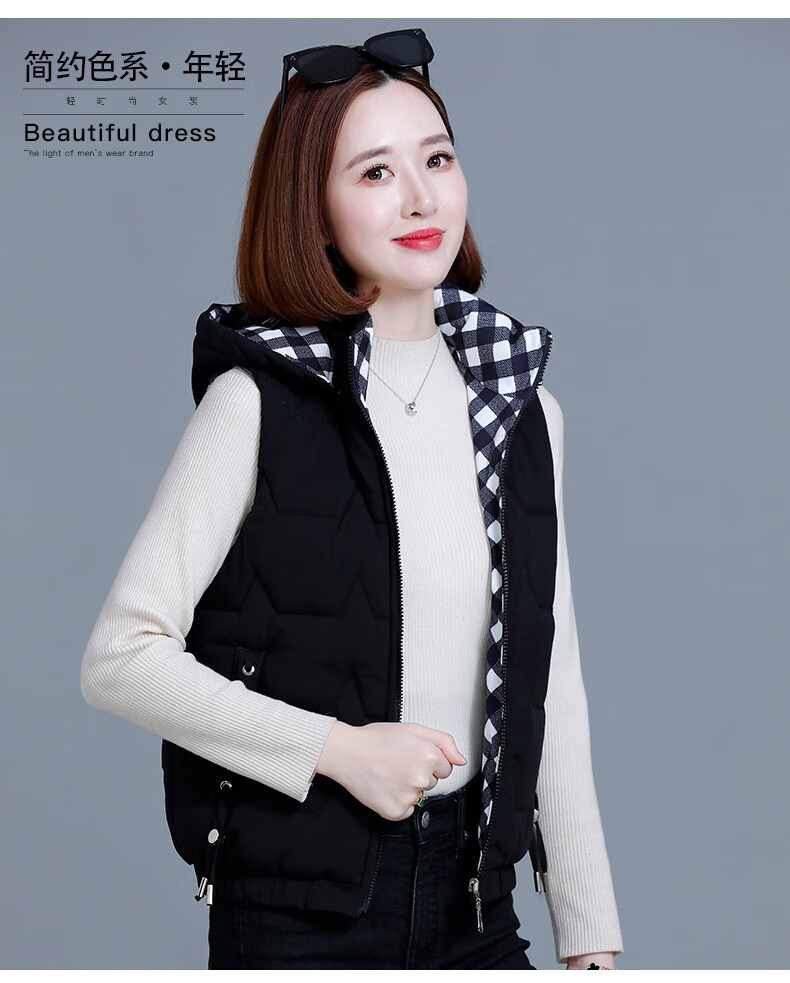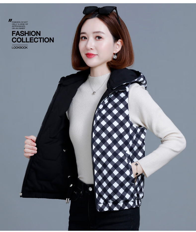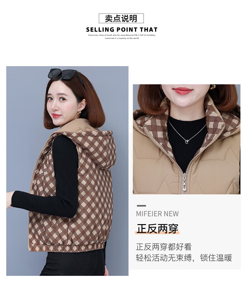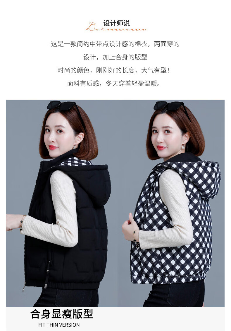 Woodpecker reversible women's down cotton vest 2024 new vest outer wear middle-aged and small autumn and winter vest for women pickle yellow XL recommended weight 115-130Jin Jin equals 0.5 kg