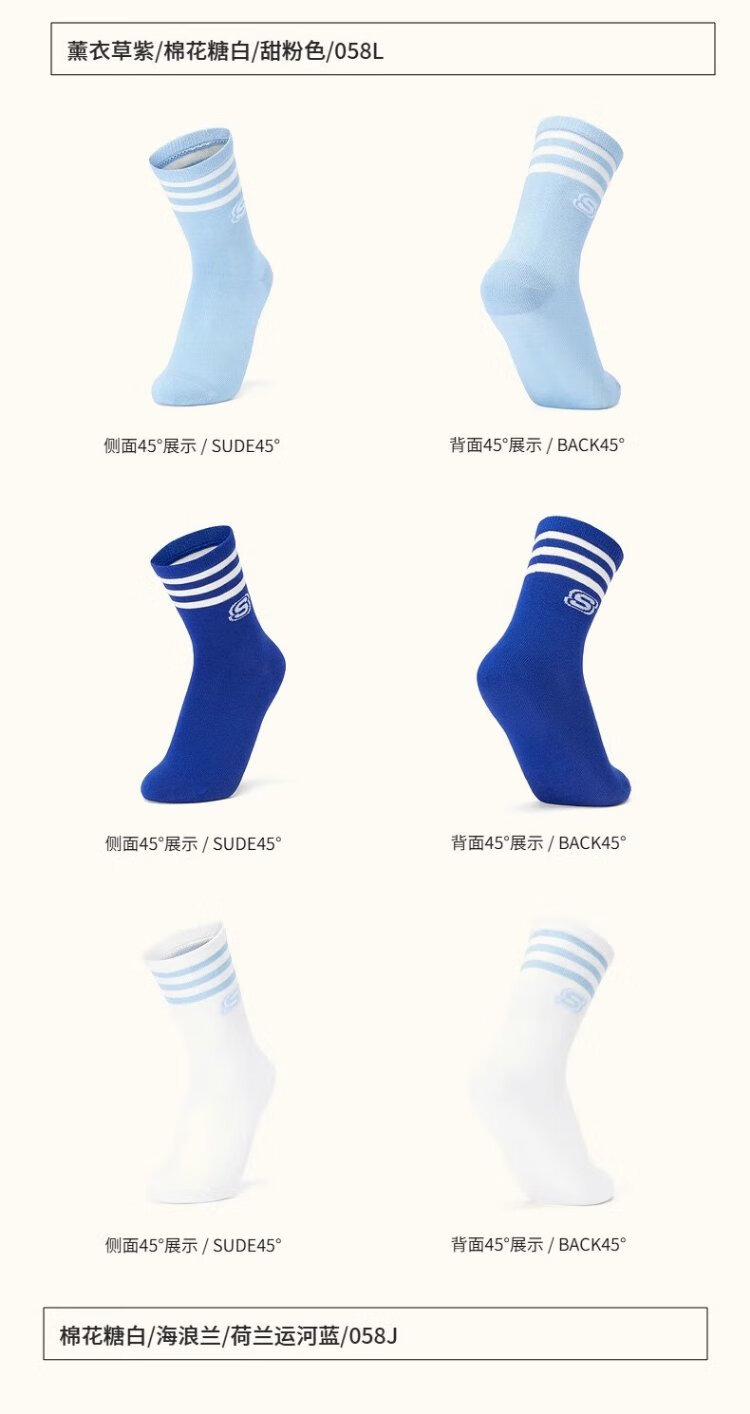 Skechers boys and girls sports socks are fashionable and comfortable winter children's antibacterial mid-calf socks 3 pairs L125K054 sugar white/wave blue/dutch canal blue/058J 3 pieces one size fits all (XL)