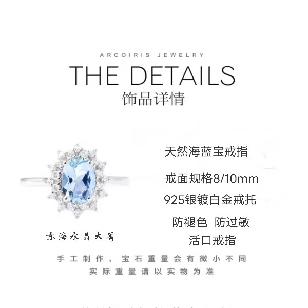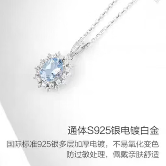 Tanhai natural aquamarine ring pendant female color treasure 925 silver plated platinum gemstone ring face popular necklace certificate aquamarine earrings