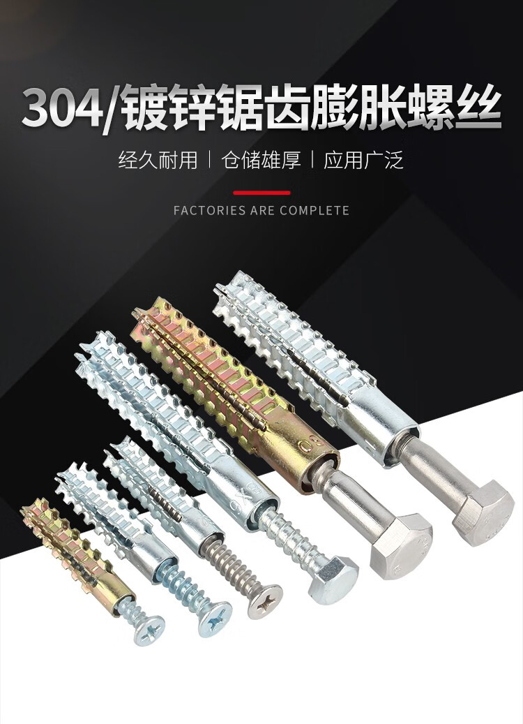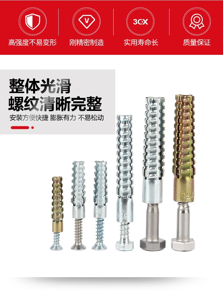 Guwanji iron sawtooth gecko expansion screw metal expansion pipe nail anti-loosening cement wall lightweight brick hollow brick self-tapping screw fastener collection M6x32 20 pieces blue and white zinc single tube