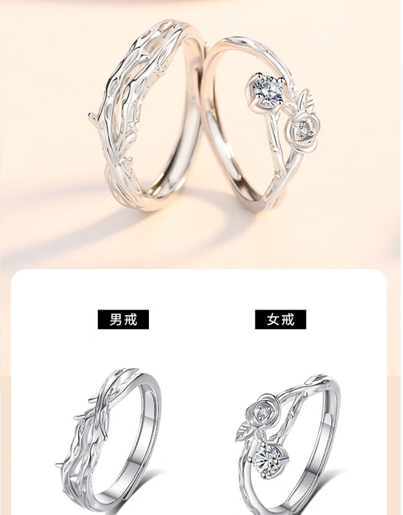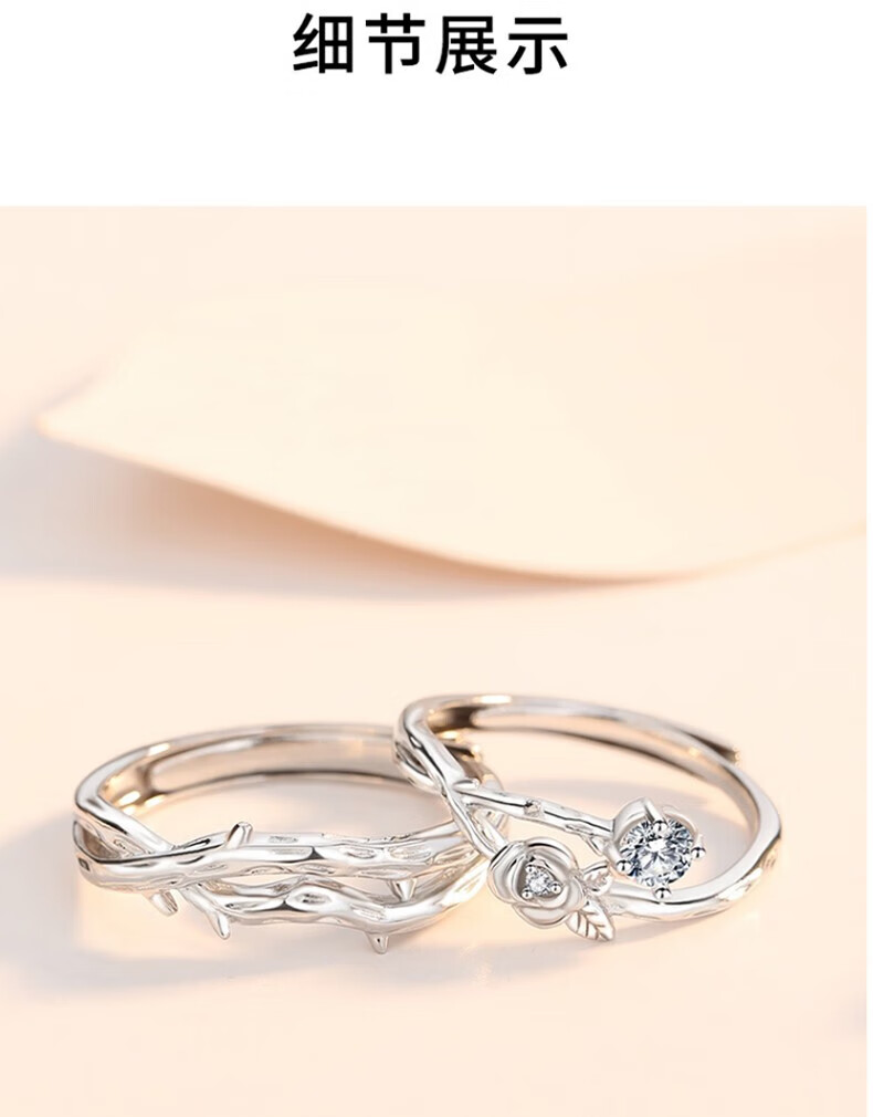 CHINA GOLD Thorns and Roses Pure Silver Ring for Men and Women Couple Ring Ring Bracelet Valentine's Day Birthday Gift for Girlfriend Today/Next Day Delivery* Thorns and Rose Ring Couple Style