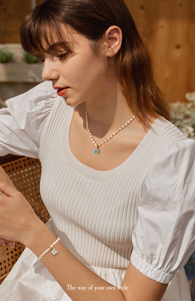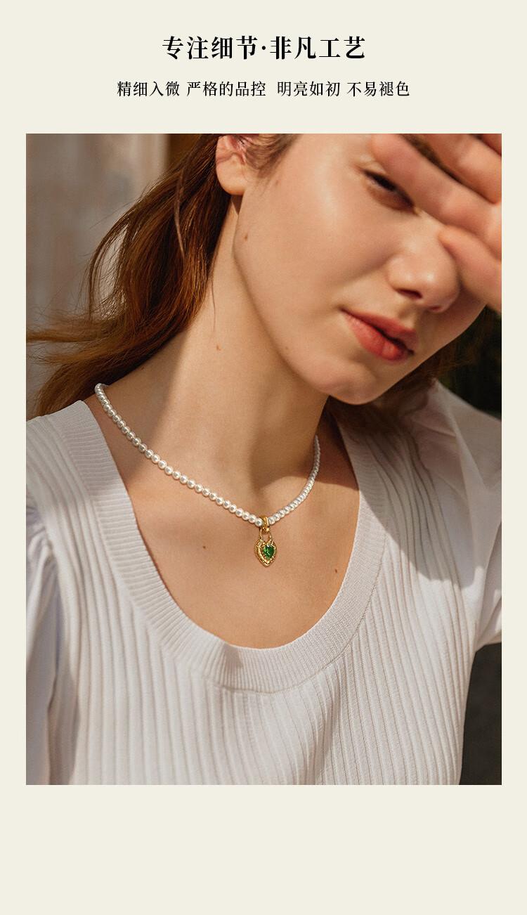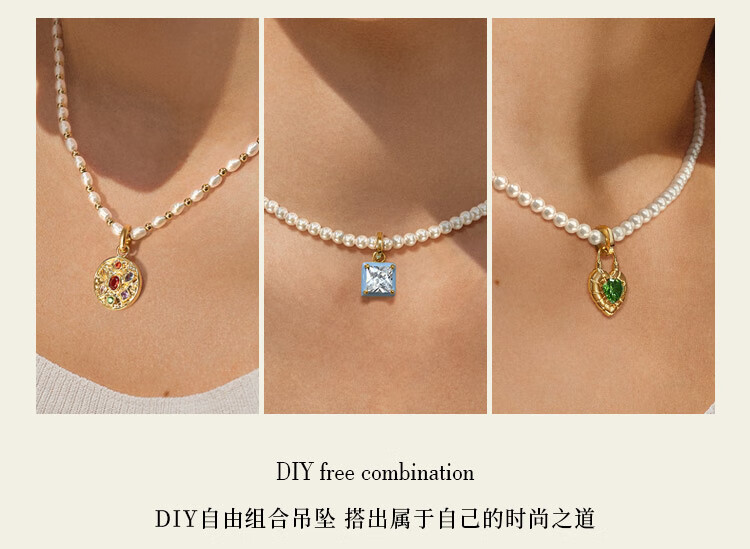 Congye Pearl Necklace Women's Pendant Light Luxury Niche High-Class Clavicle Chain 18k Gold Plated Necklace DIY Accessories Crystal Dew Drop Necklace