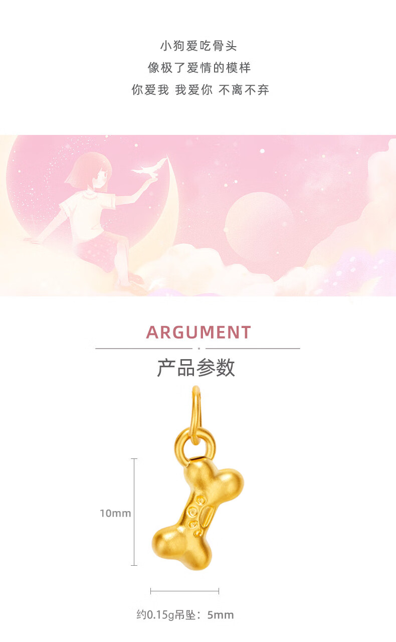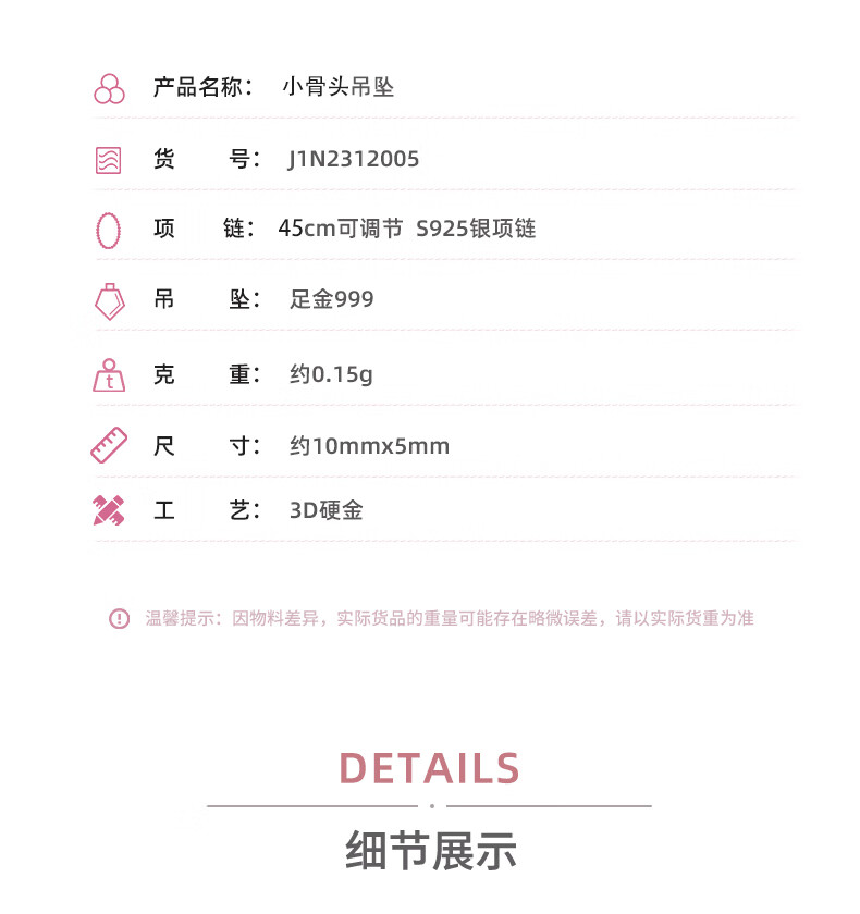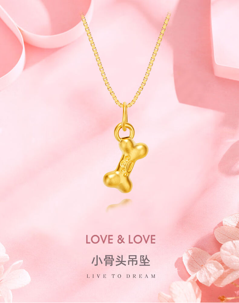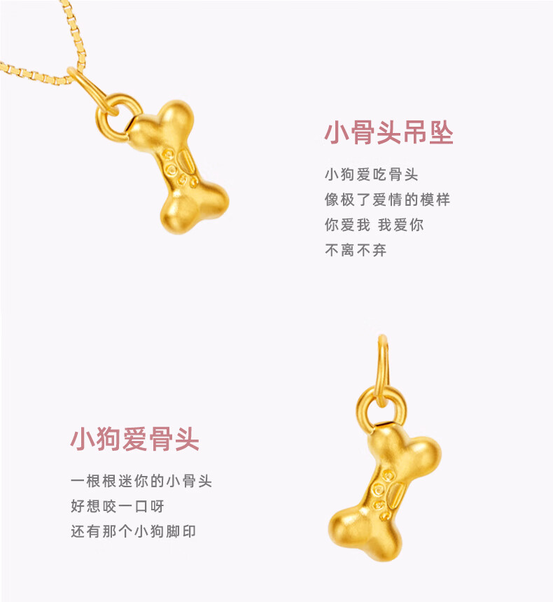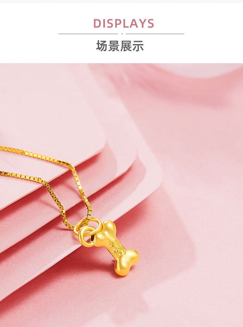 Congye gold pure gold 999 small bone pendant pendant necklace 3D hard gold female cute pet children gift small bone pendant about 0.15g free S925 silver chain