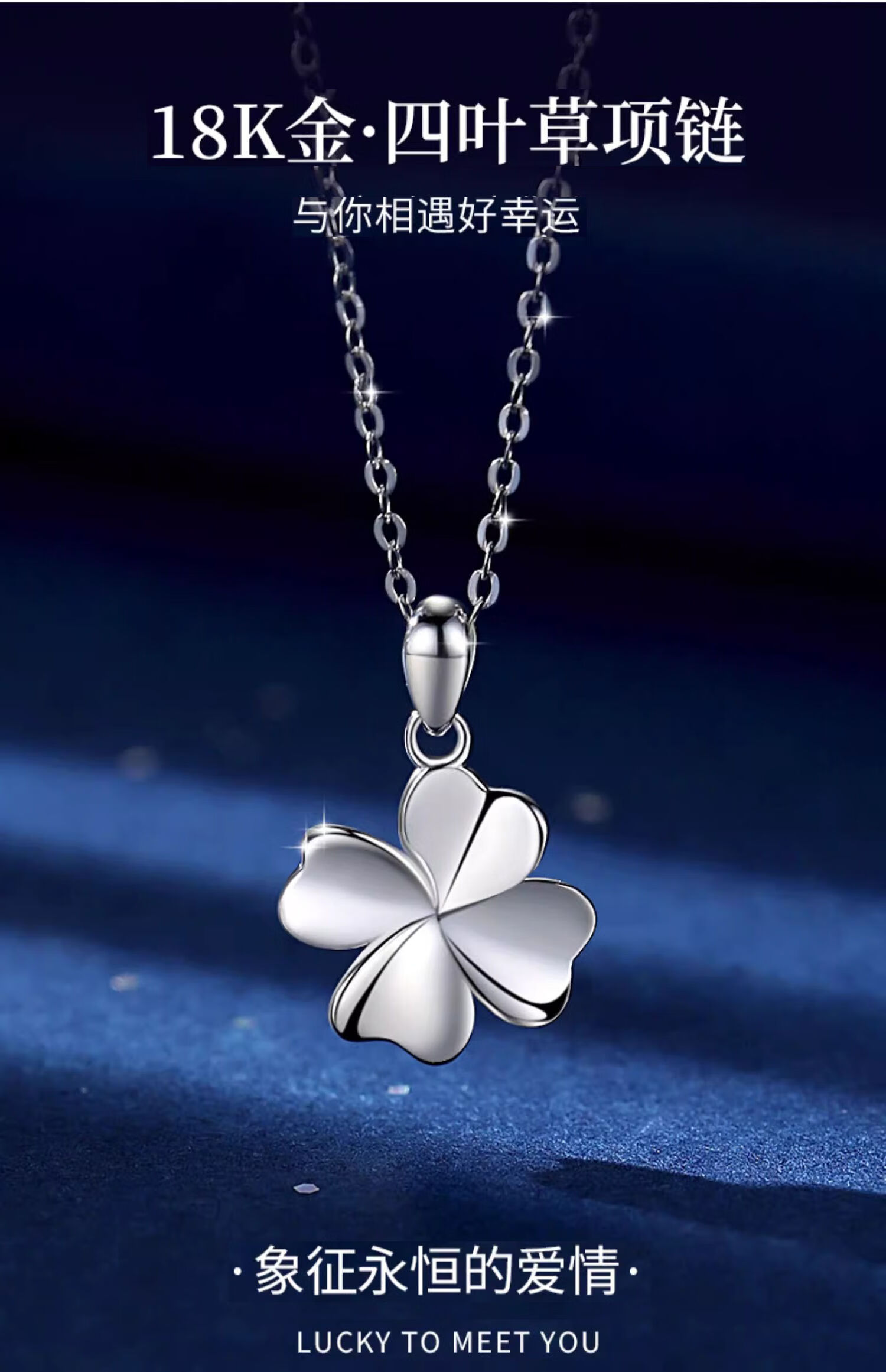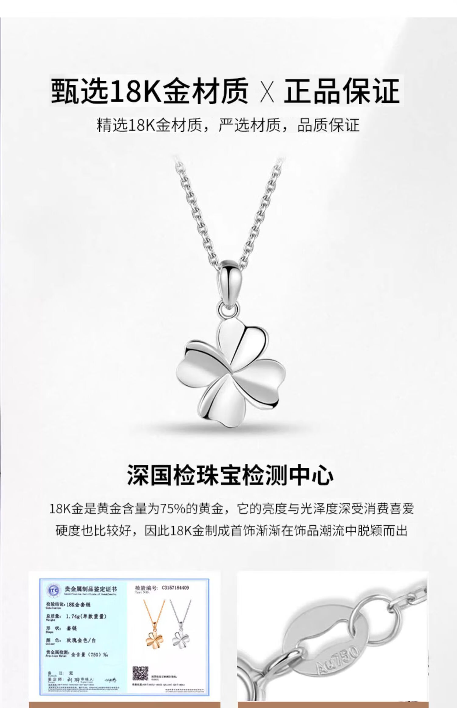 Congye four-leaf clover 18k gold necklace for women platinum high-end pendant clavicle chain Chinese Valentine's Day birthday gift for girlfriend 18K gold four-leaf clover necklace + light luxury sweet gift box