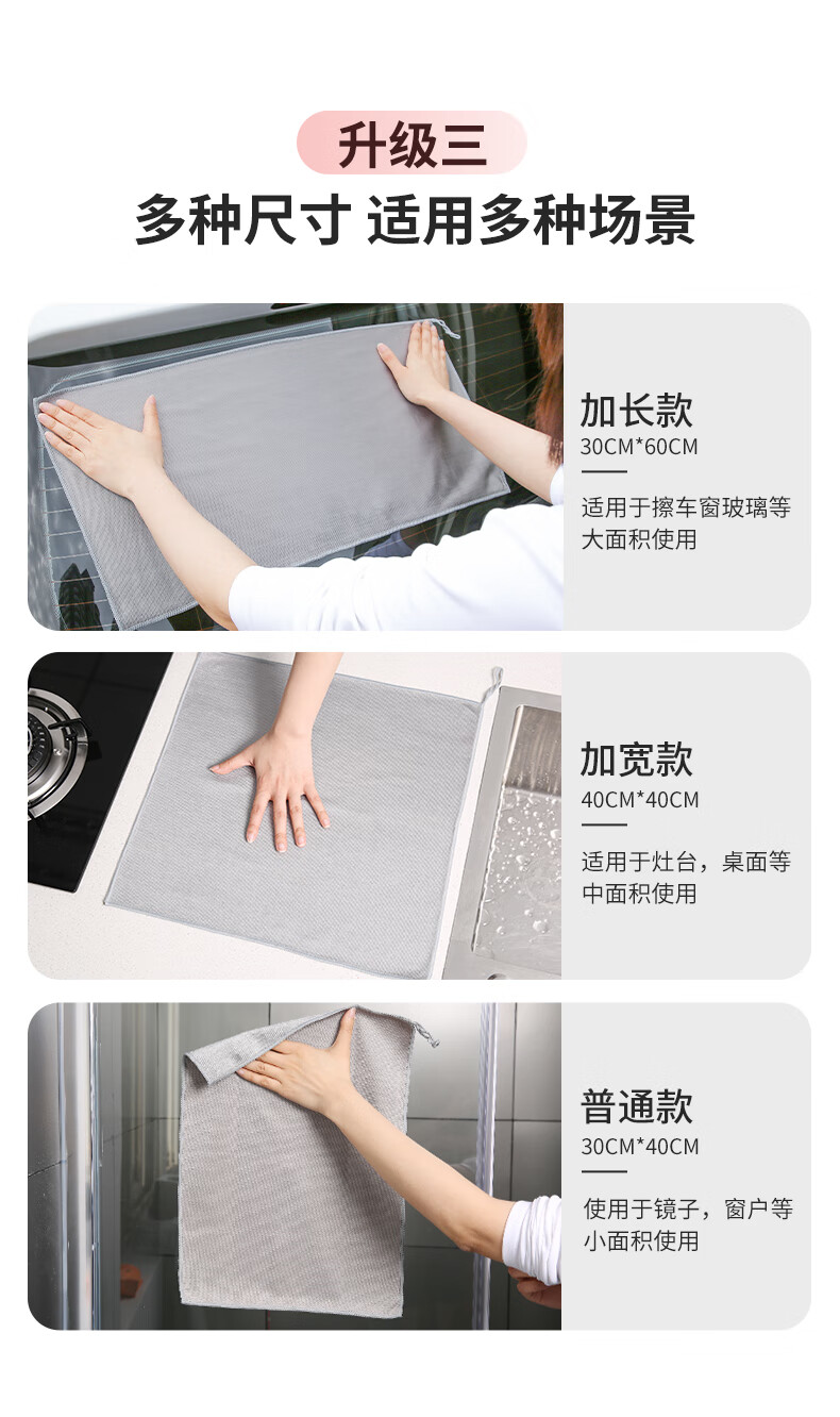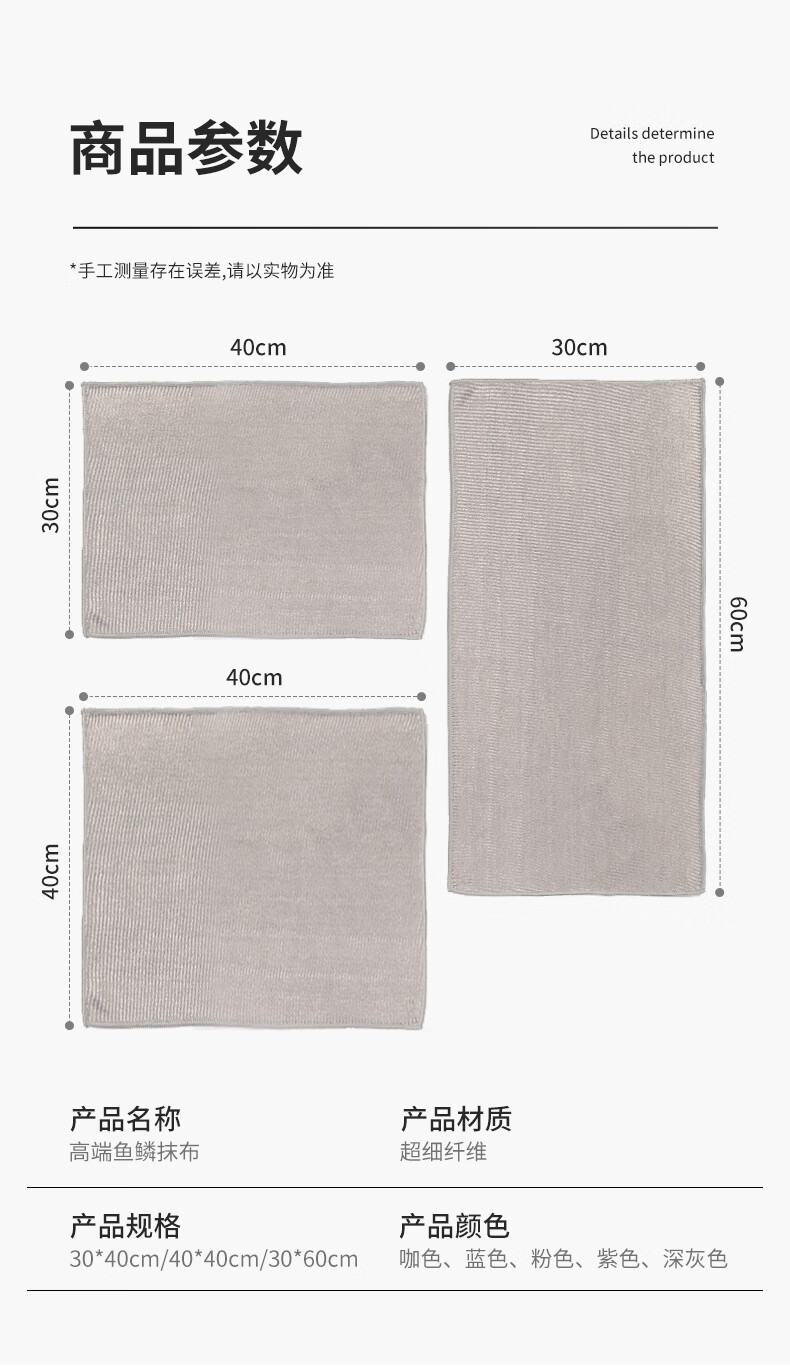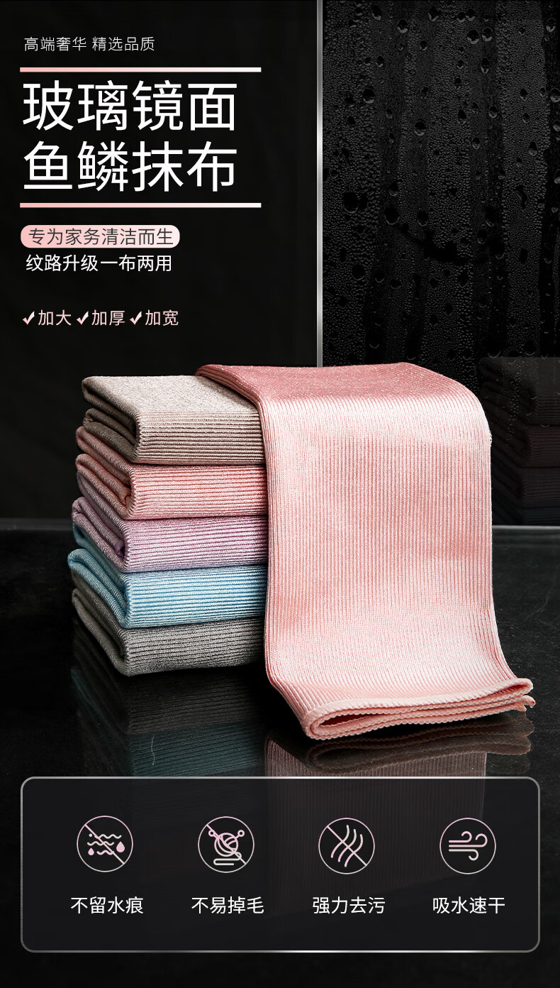 Jingyouyu special fish scale rag for cleaning glass, no trace, no water stains artifact, thickened cleaning cloth for household windows and mirrors to absorb water, thickened lanyard style/three colors/5 pieces (30*40cm)
