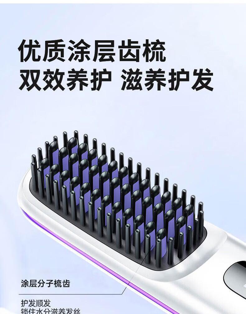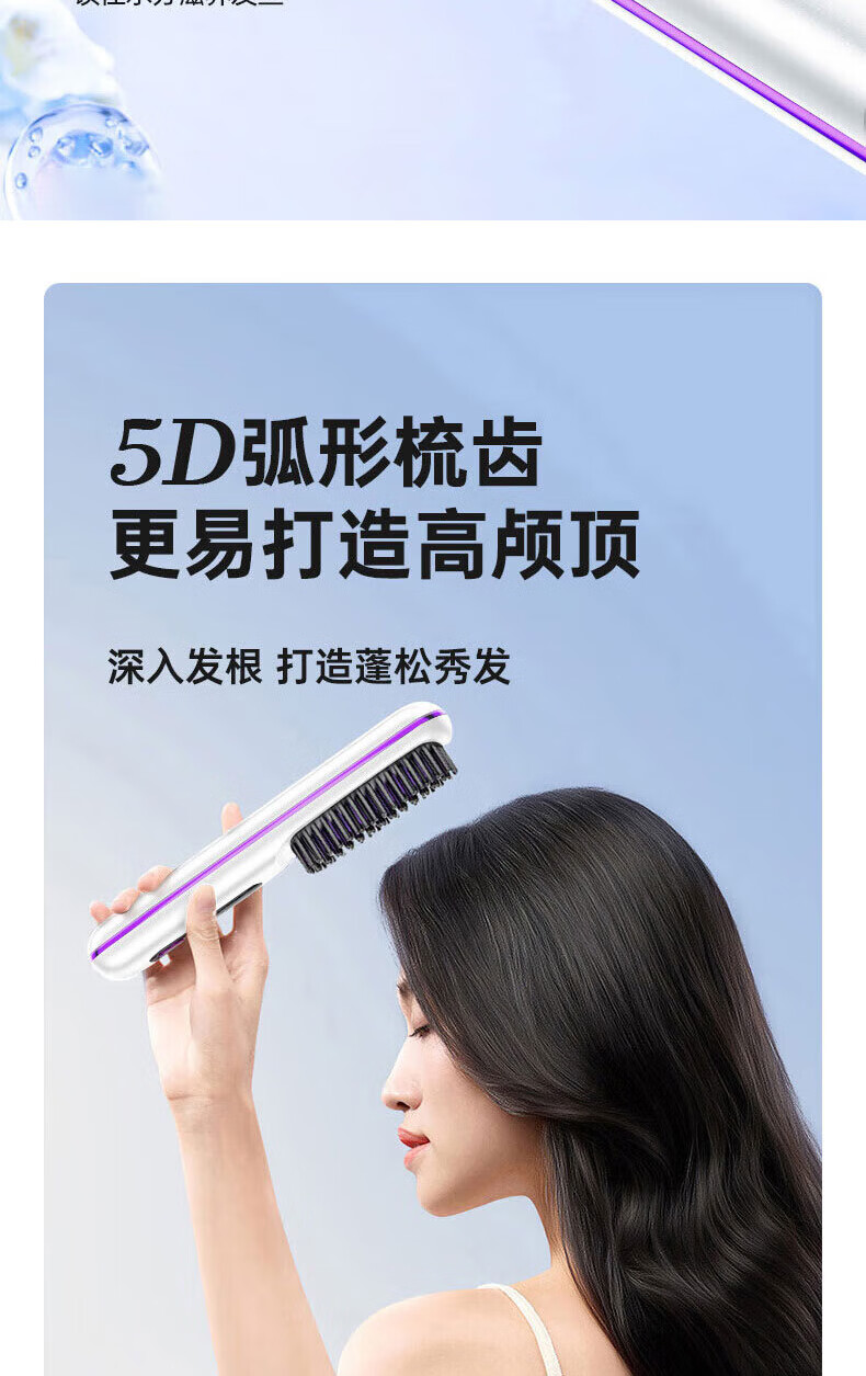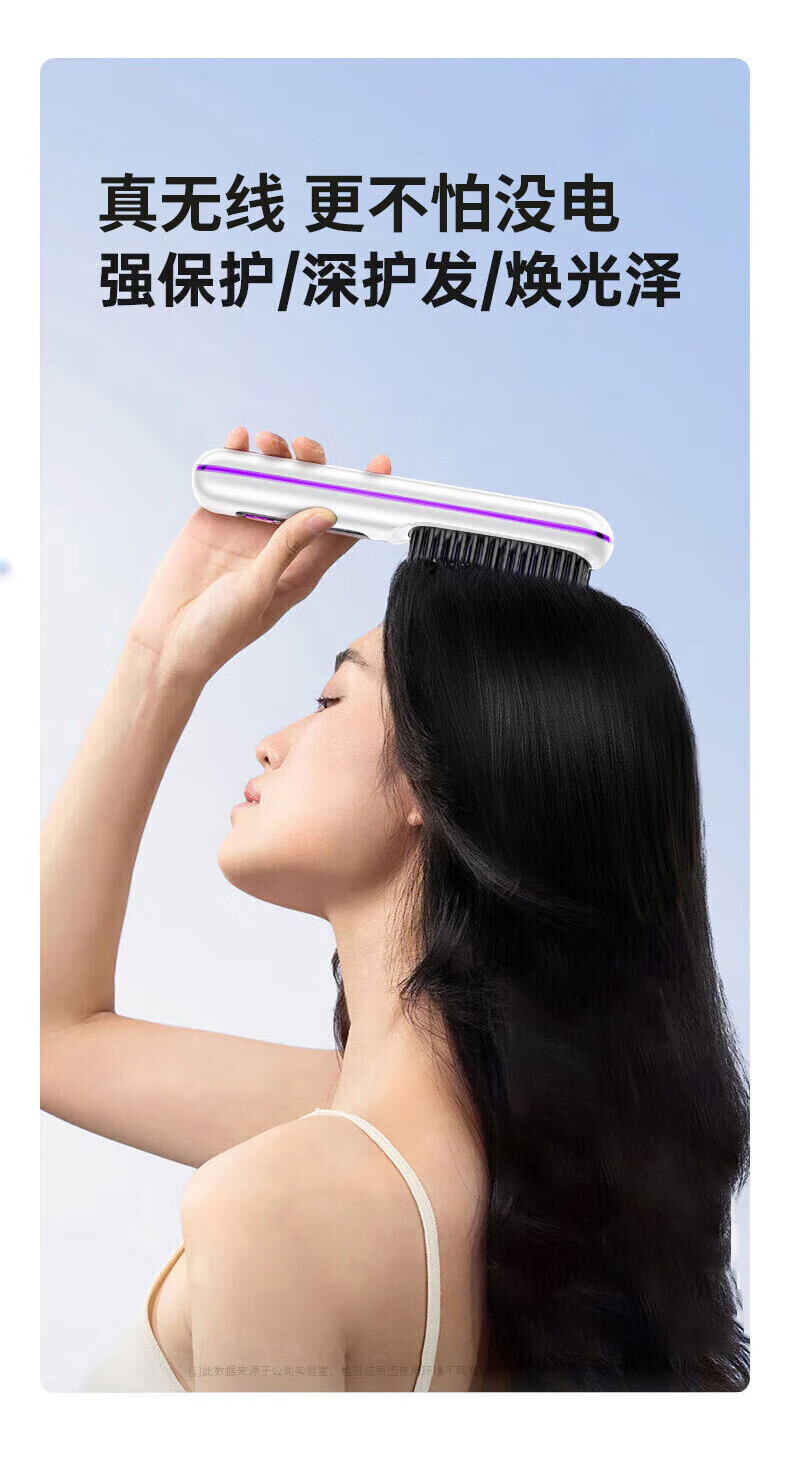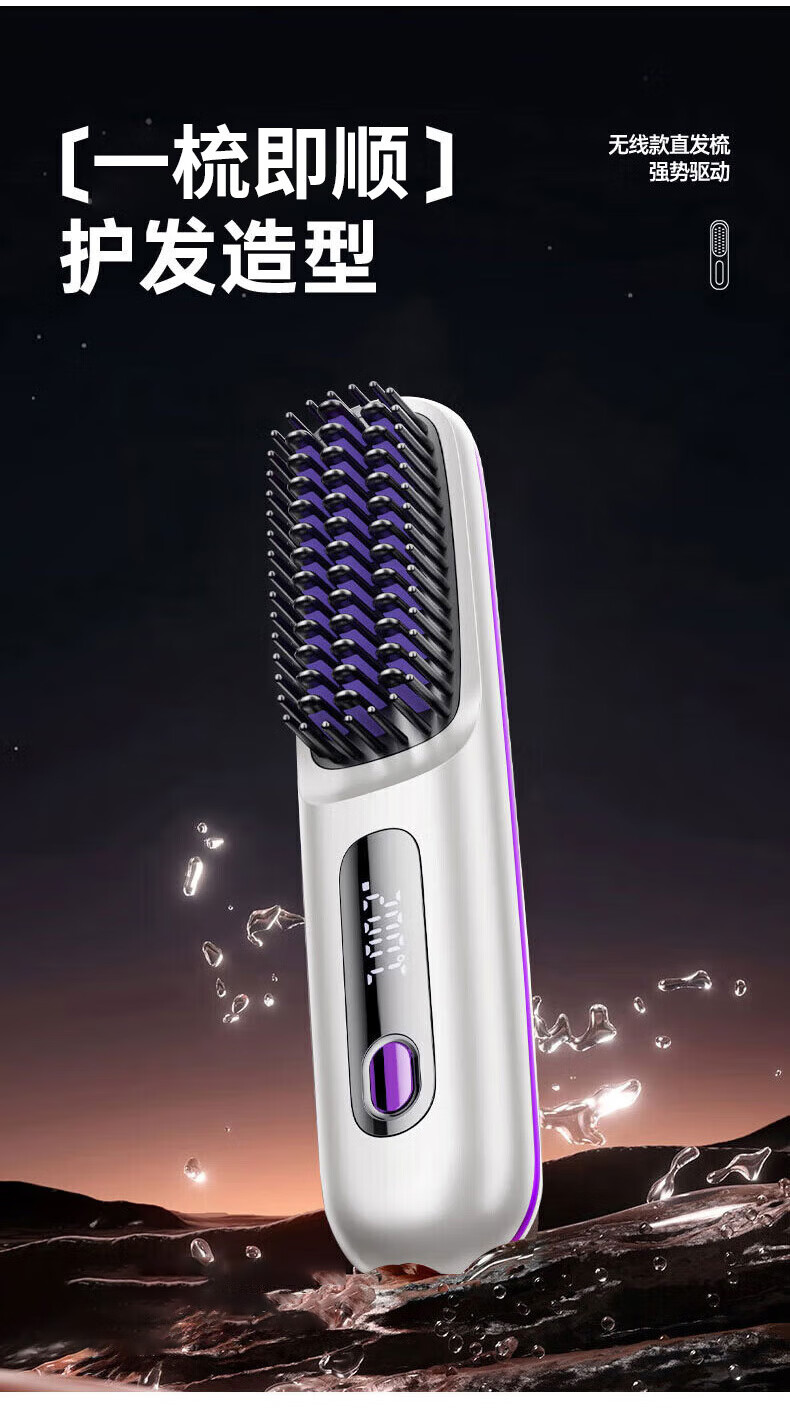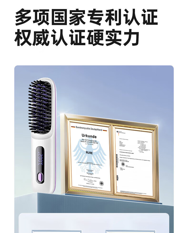 RURE Germany wireless hair straightening comb negative ion hair care does not damage hair wireless portable straightening and curling dual-use fluffy splint for men and women high skull lasting styling white LCD display丨three-level adjustment丨intelligent constant temperature hair care