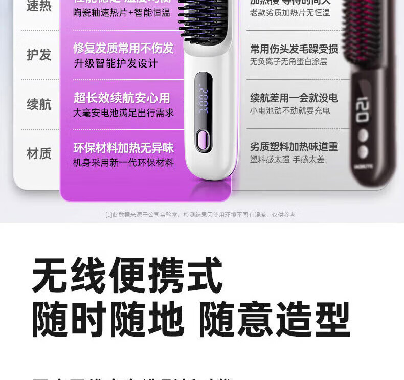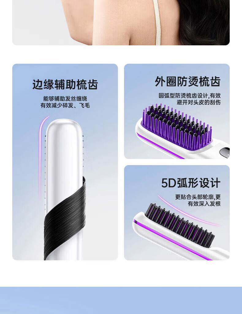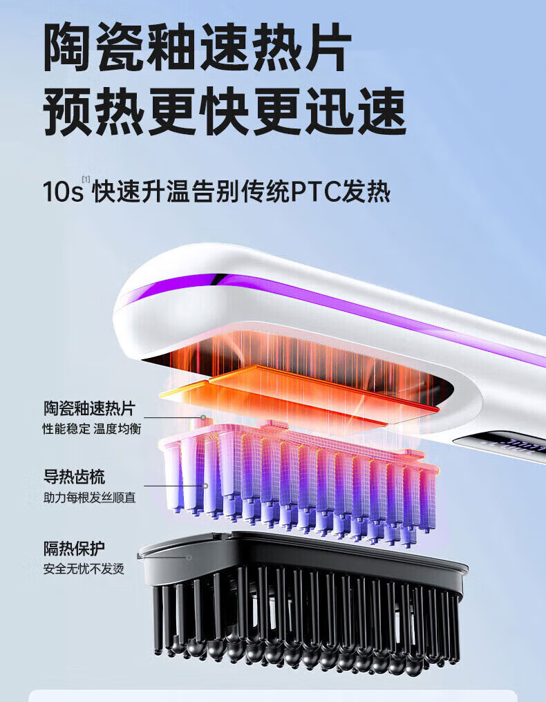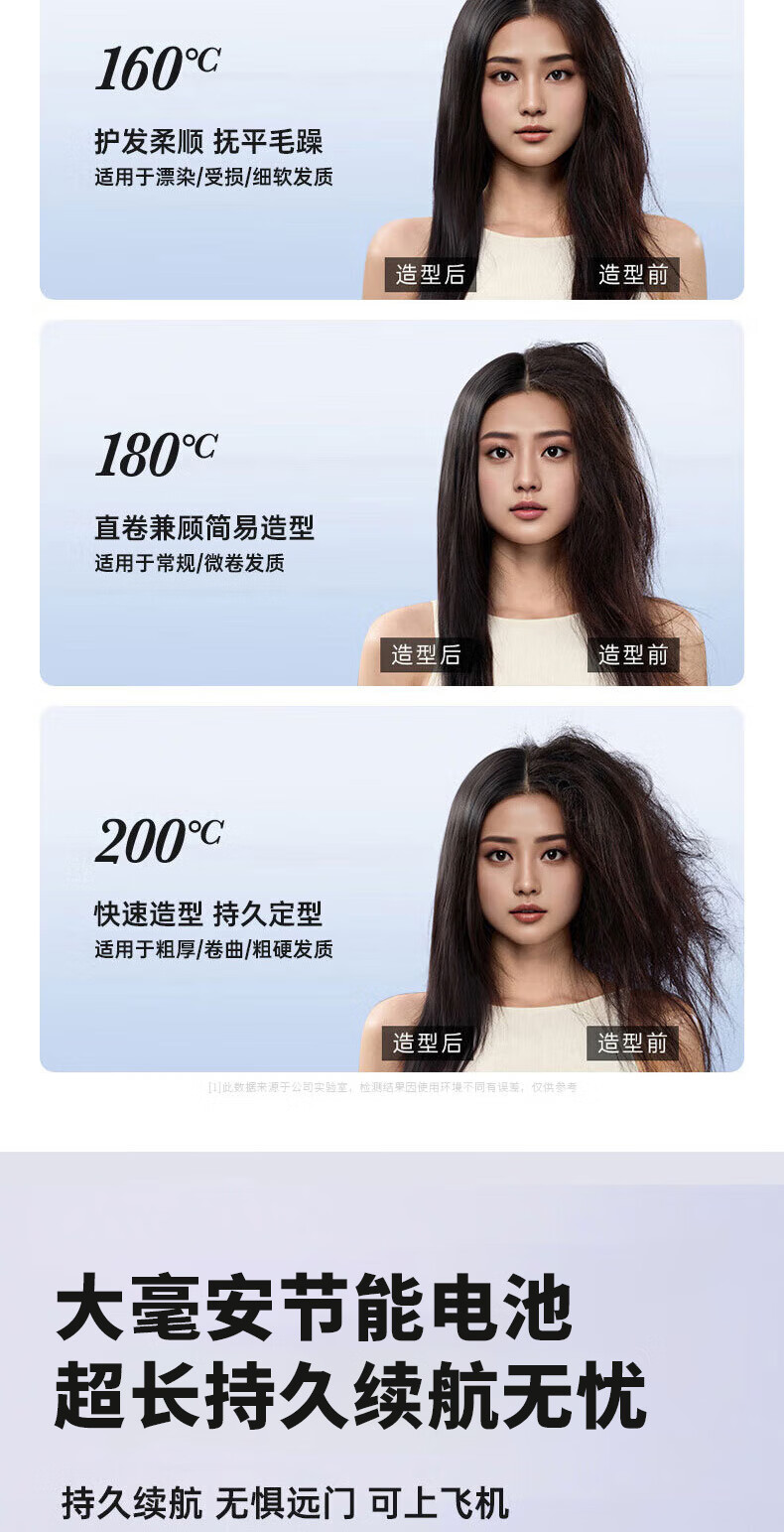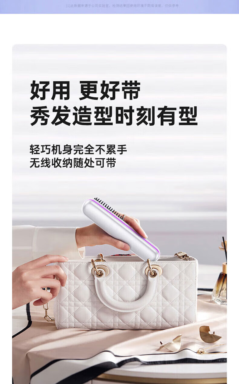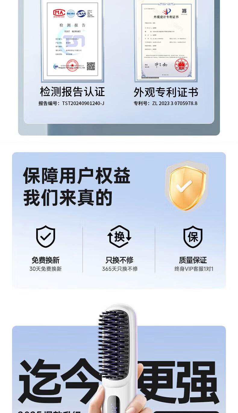 RURE Germany wireless hair straightening comb negative ion hair care does not damage hair wireless portable straightening and curling dual-use fluffy splint for men and women high skull lasting styling white LCD display丨three-level adjustment丨intelligent constant temperature hair care
