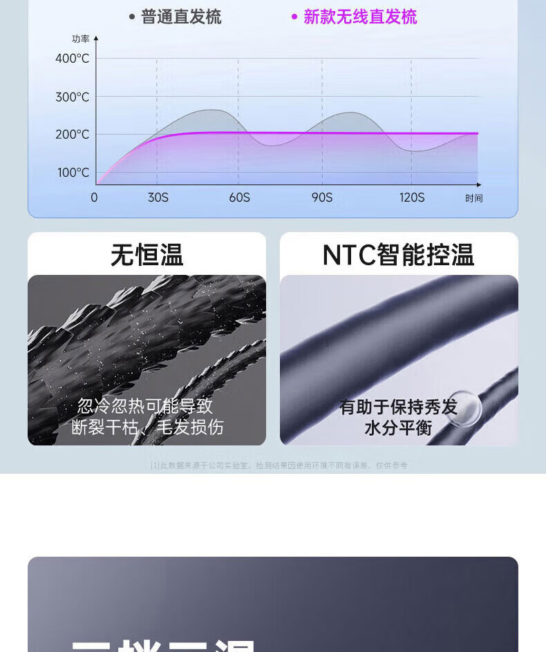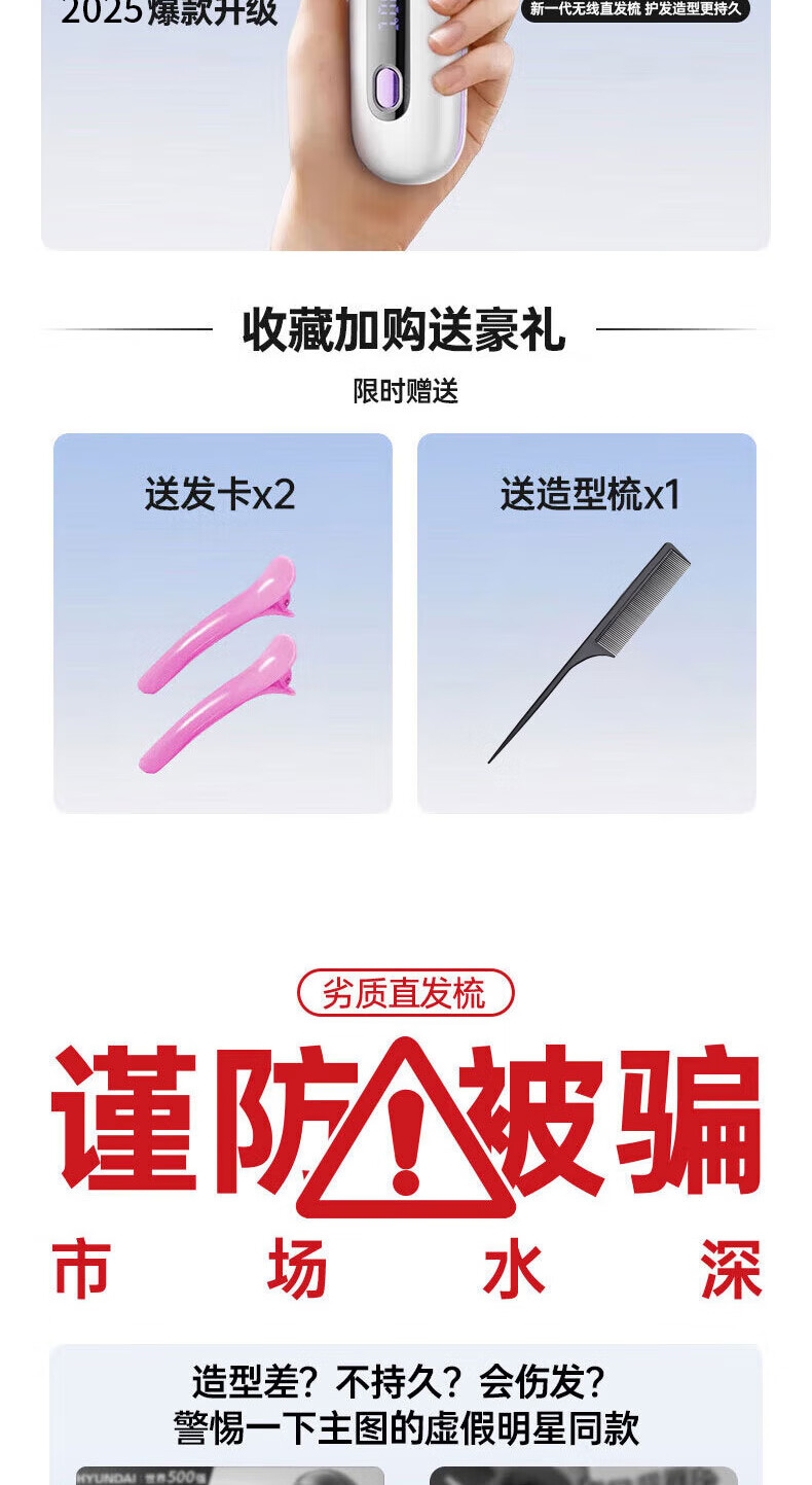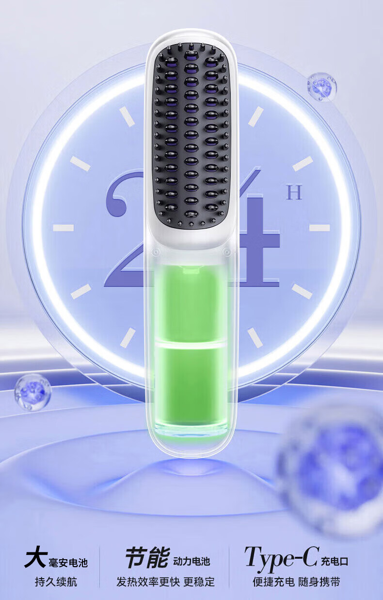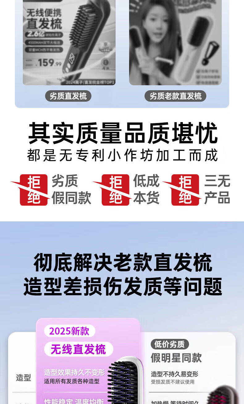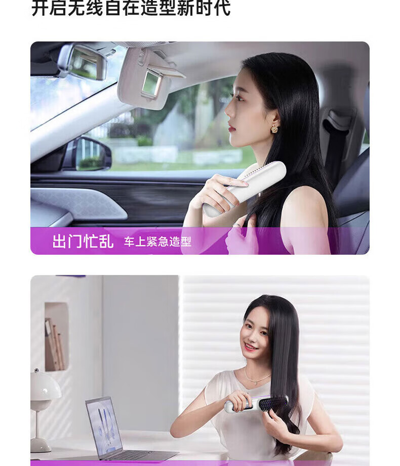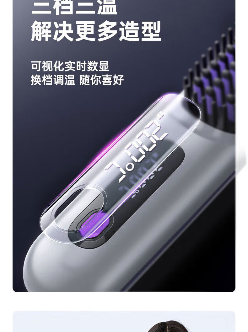 RURE Germany wireless hair straightening comb negative ion hair care does not damage hair wireless portable straightening and curling dual-use fluffy splint for men and women high skull lasting styling white LCD display丨three-level adjustment丨intelligent constant temperature hair care