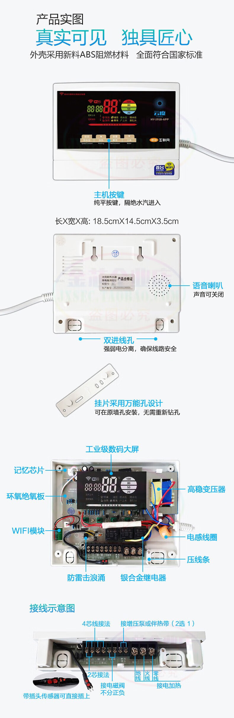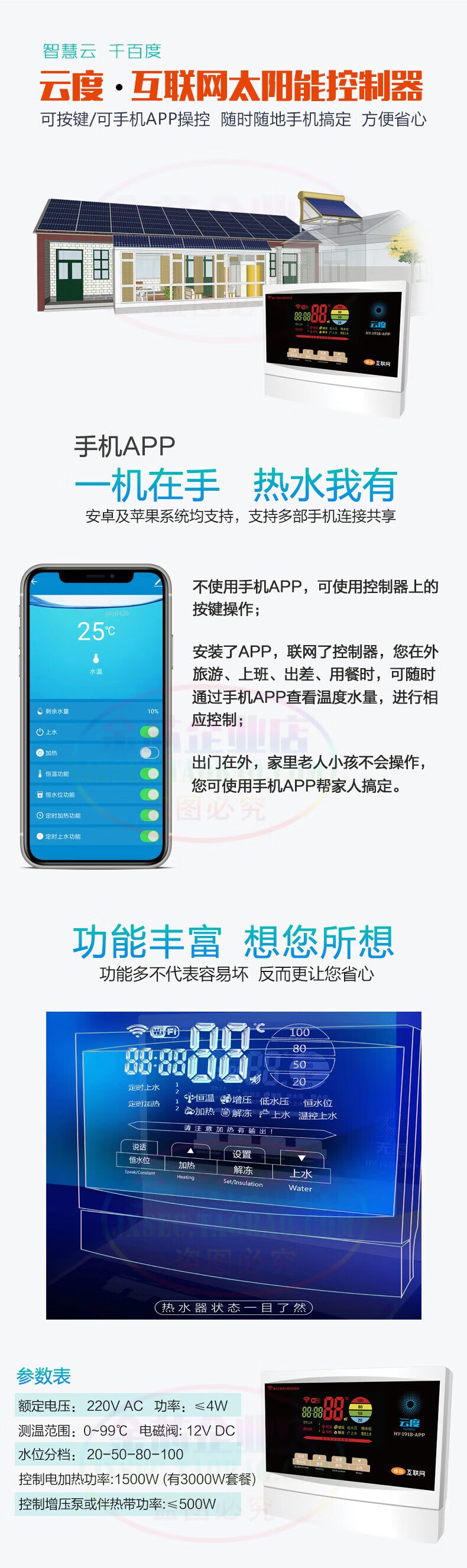 Solar water heater controller wifi smart home fully automatic water meter measurement and control display panel universal cloud model single host 1500W