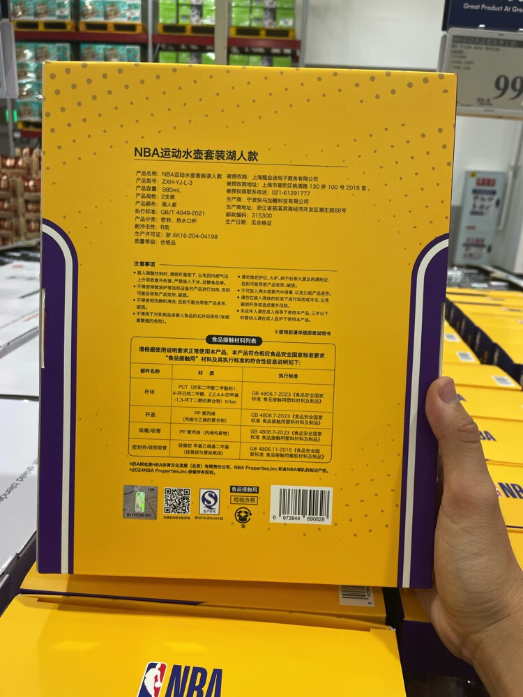 Sam's Purchasing Agent NBA Series Warrior Cup Sports Water Cup Kettle Set 980ML Two Insulated Cups Warriors White Insulated Bottle 1 piece 680ml Purchasing agent does not support returns and exchanges