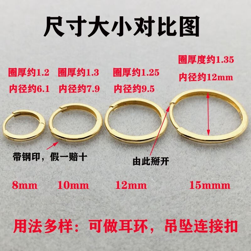 Congye pure 18K gold earrings, round earrings, thickened buckles, DIY necklaces, pendants, earrings, earrings, plain gold accessories, pure 18K gold earrings, support re-inspection, compensate 10% for fake ones
