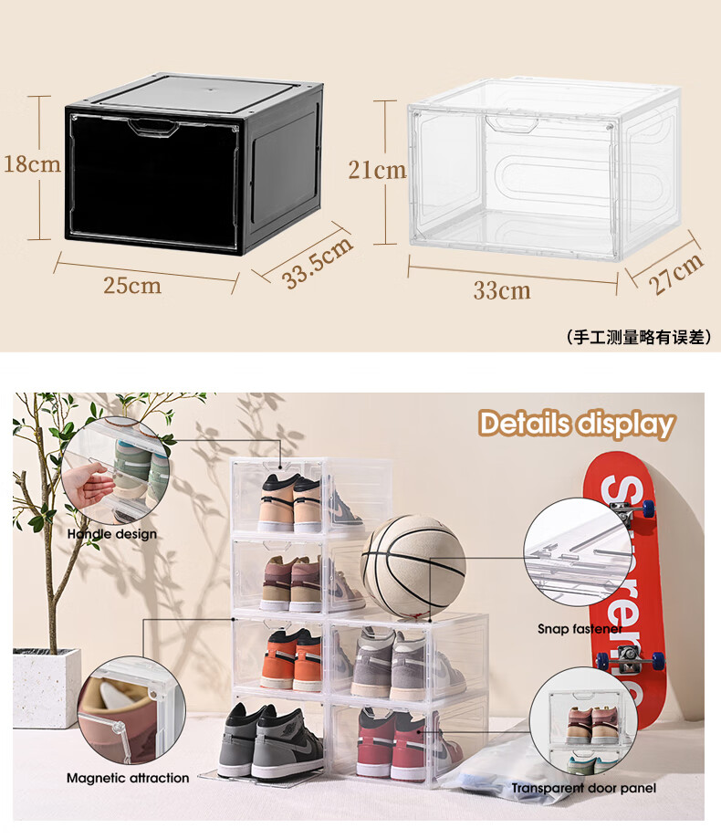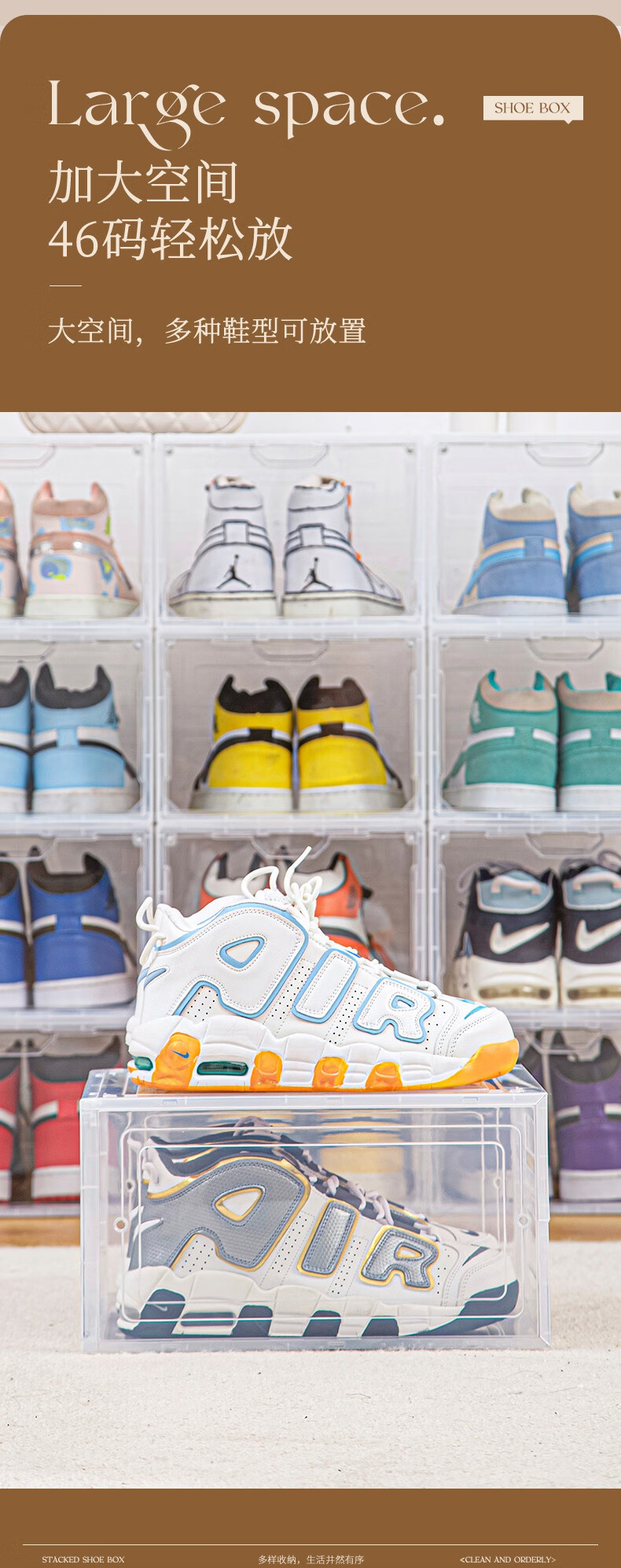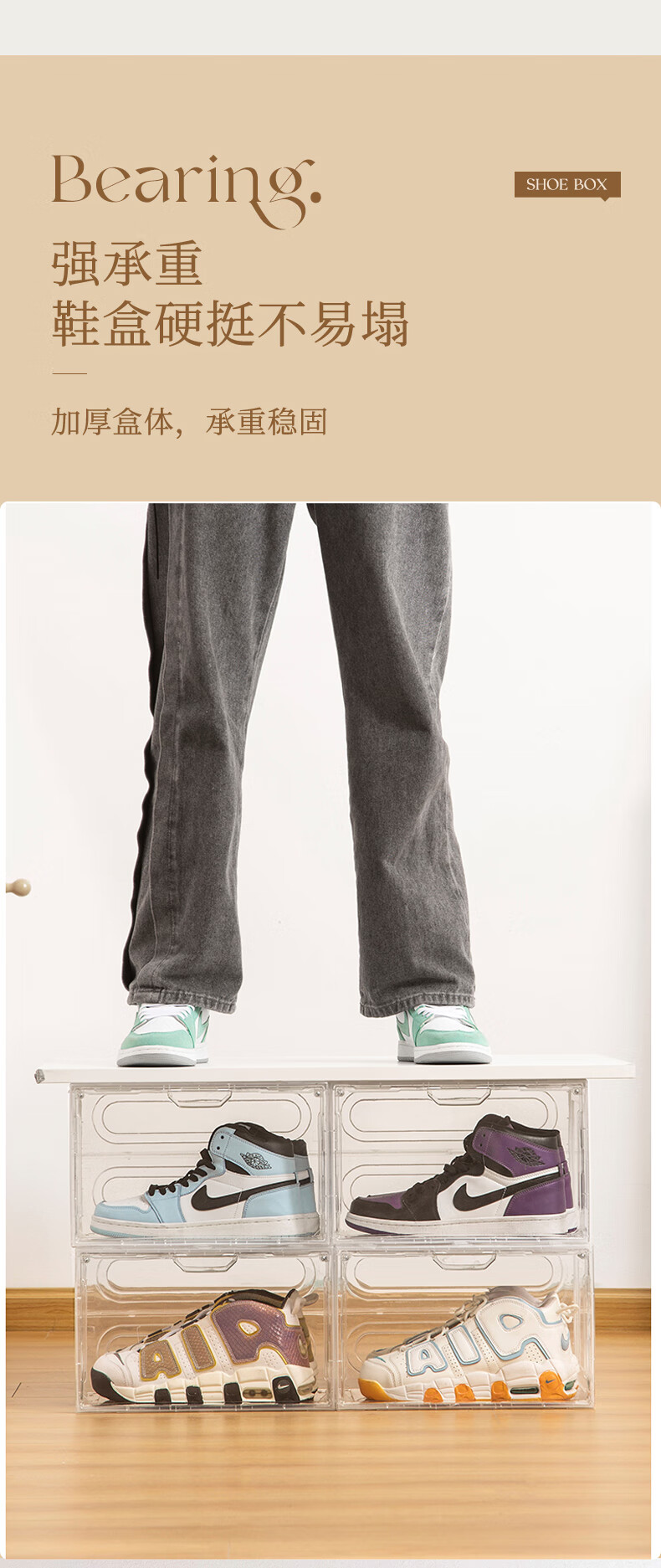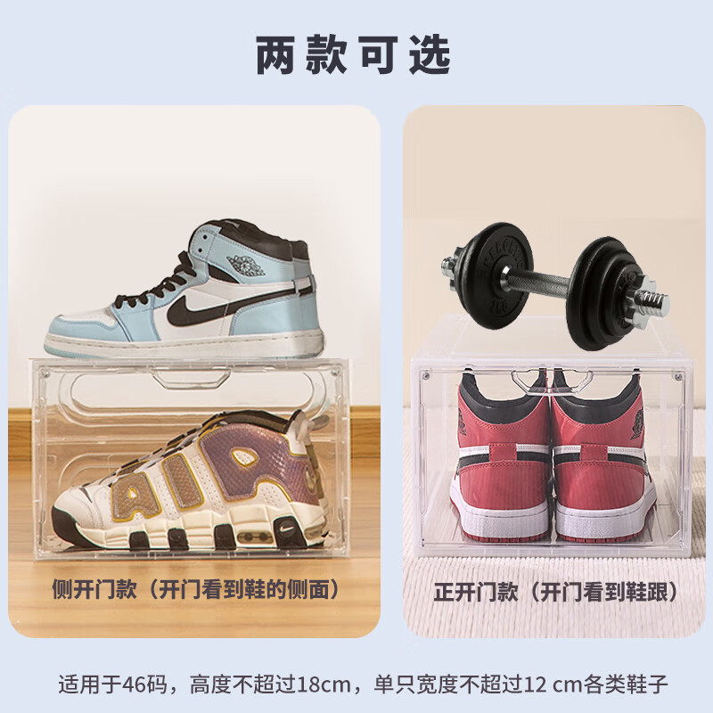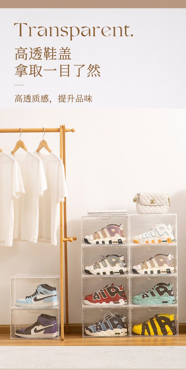 6-sided full hard shoe box storage box AJ sneakers anti-oxidation shoe cabinet transparent shoe plastic acrylic hat box shoe wall side opening white 10 pieces (about size 46 high-top sneakers) 33x27x21cm