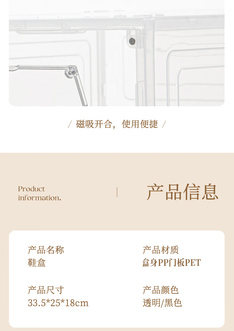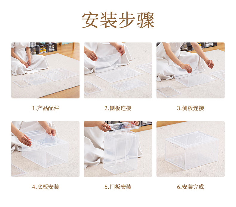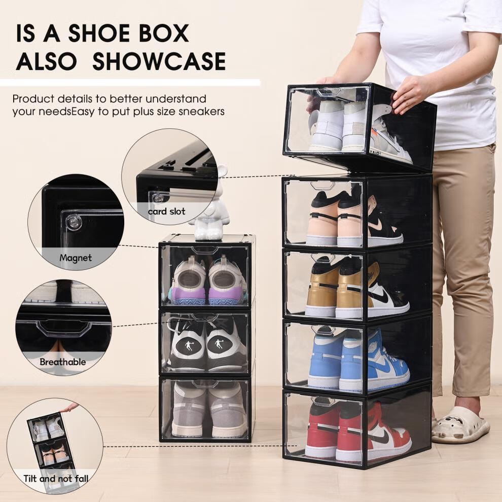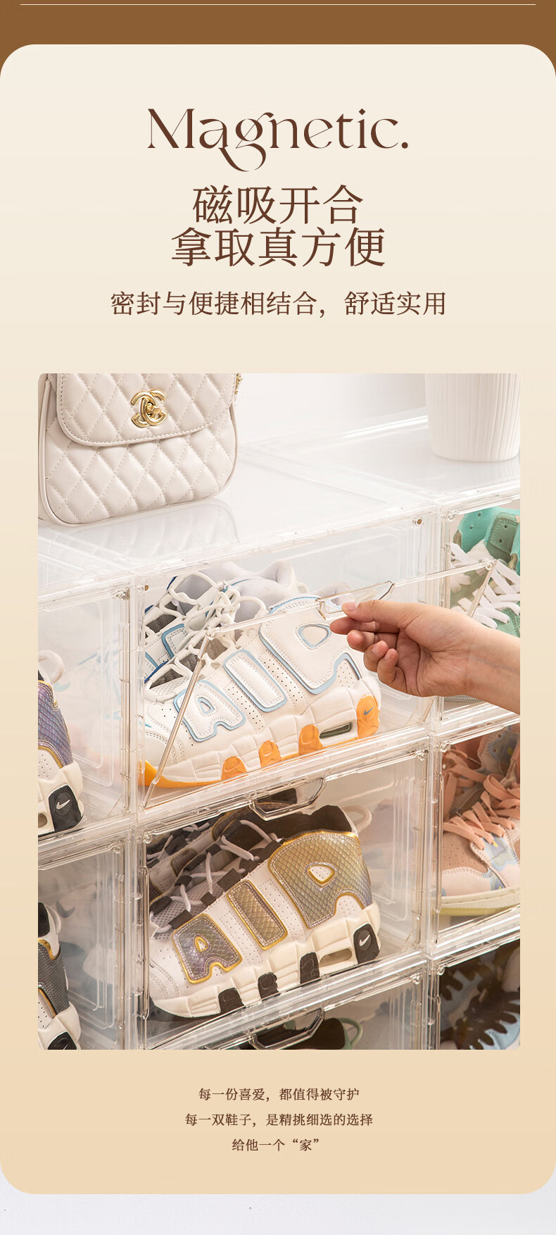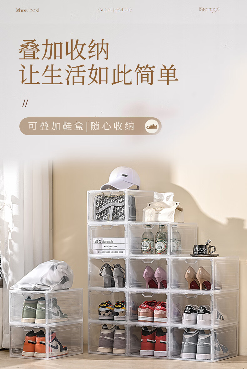 6-sided full hard shoe box storage box AJ sneakers anti-oxidation shoe cabinet transparent shoe plastic acrylic hat box shoe wall side opening white 10 pieces (about size 46 high-top sneakers) 33x27x21cm