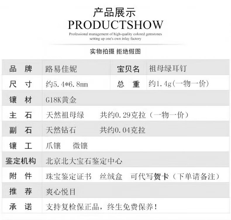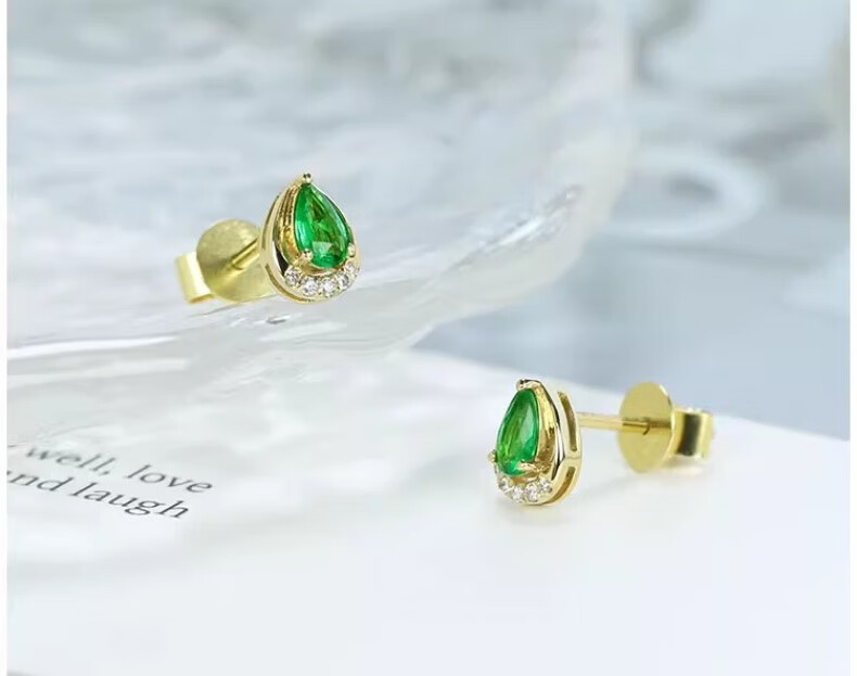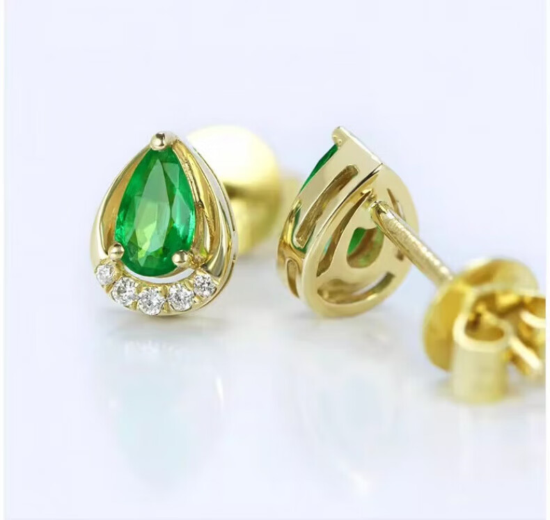 Louis Garni 18K gold emerald diamond earrings female green gemstone small fresh drop-shaped earrings customized with colorful treasures 1 pair of main stones totaling 29 points (with full K gold ear plugs)