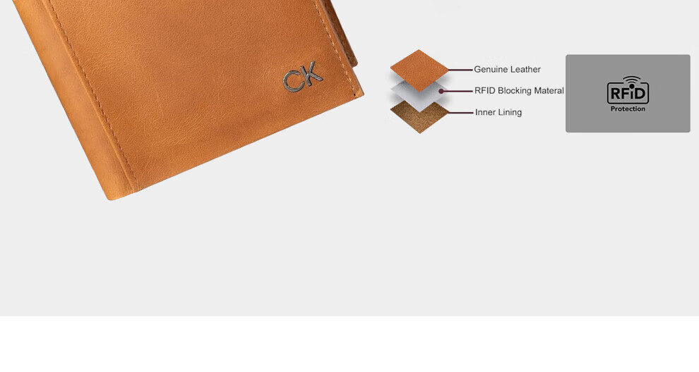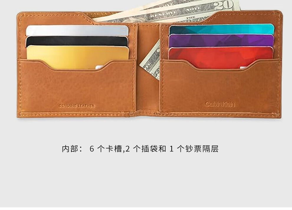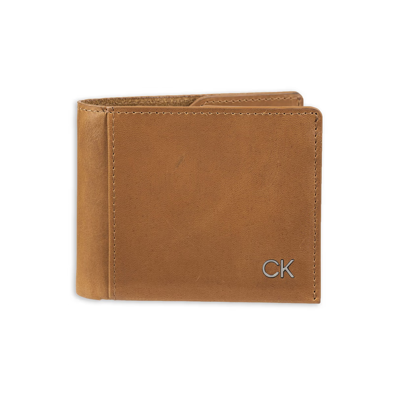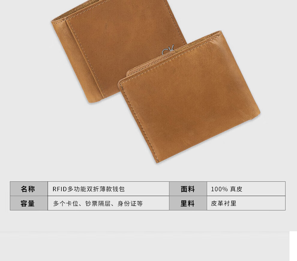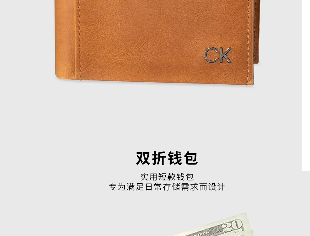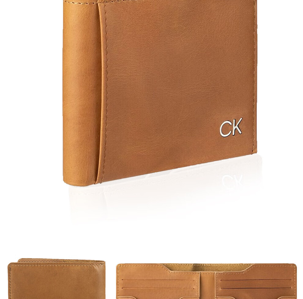 Calvin Klein trendy brand CK men's wallet leather short portable two-fold casual men's bag card holder ID bag Tan os