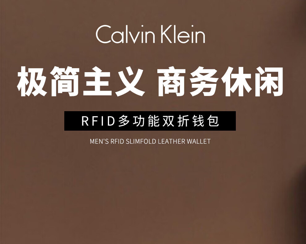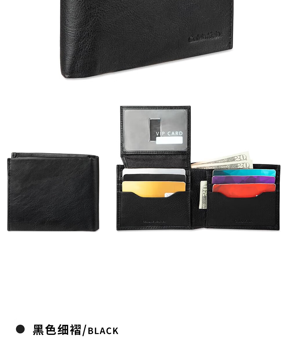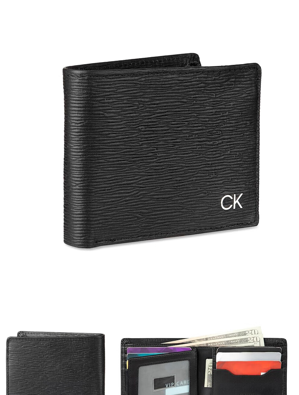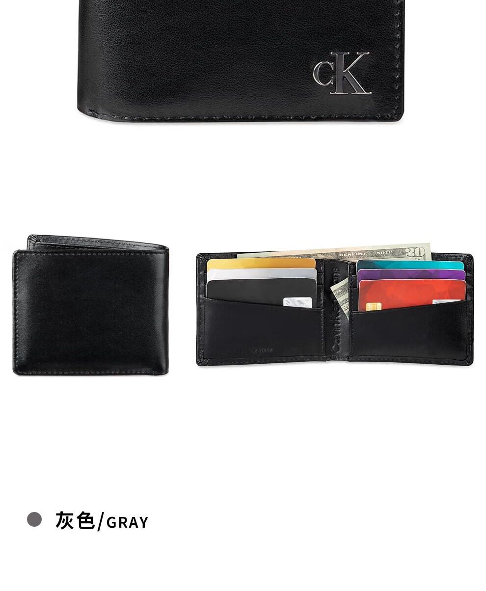 Calvin Klein trendy brand CK men's wallet leather short portable two-fold casual men's bag card holder ID bag Tan os
