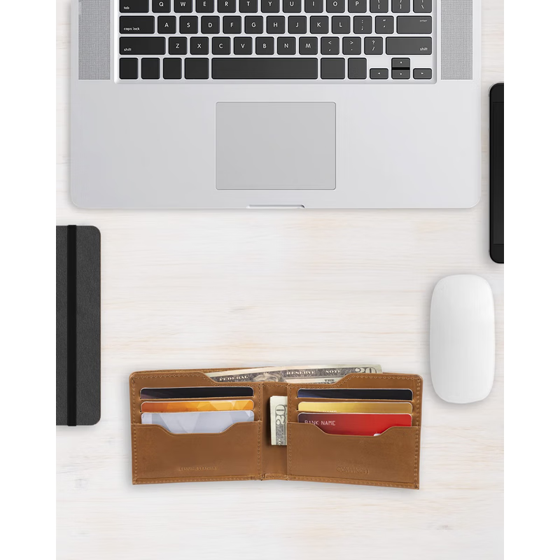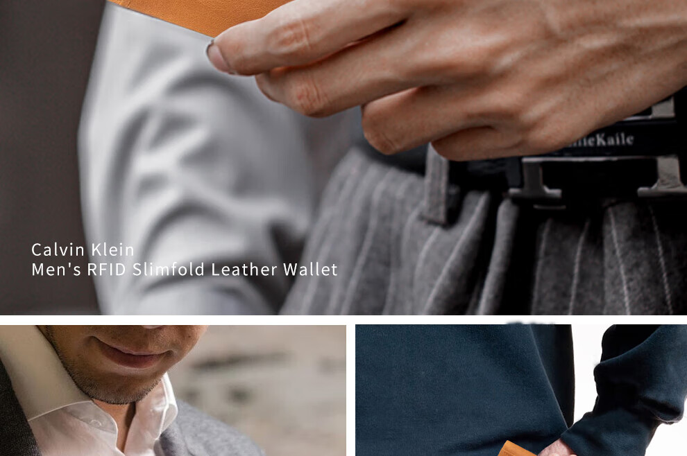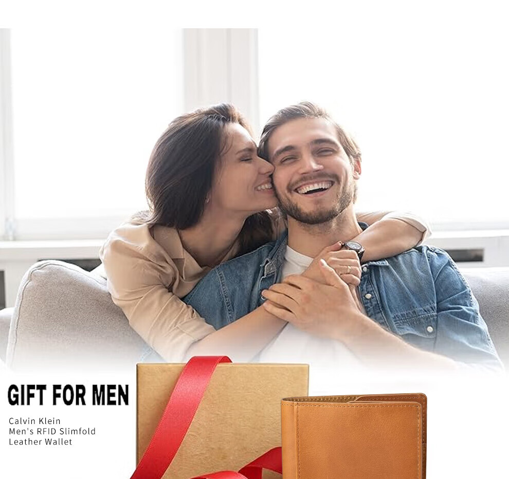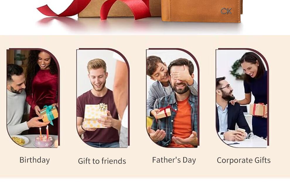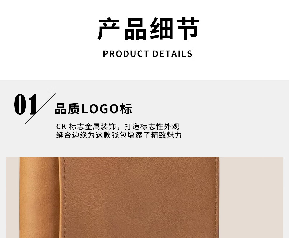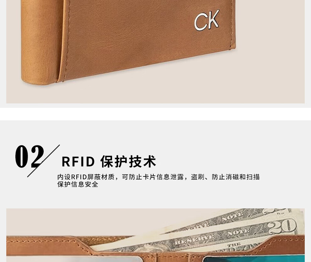 Calvin Klein trendy brand CK men's wallet leather short portable two-fold casual men's bag card holder ID bag Tan os