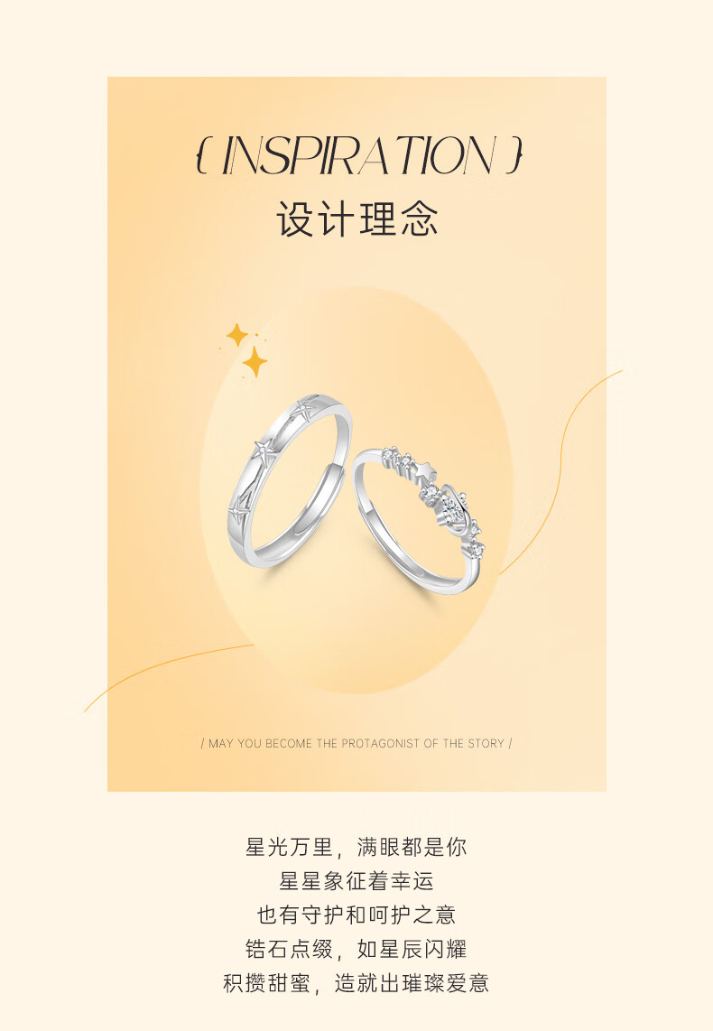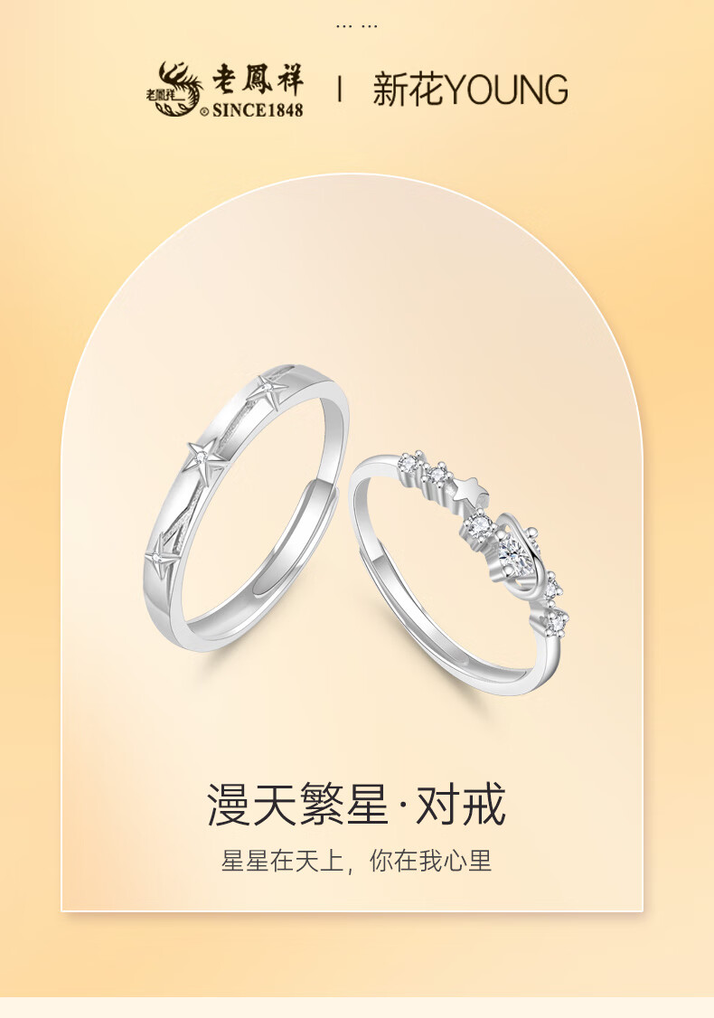 Lao Fengxiang's pure silver couple rings, men's and women's confession rings, marriage proposals, living mouth jewelry, Valentine's Day birthday gifts for girlfriends and wives, starry sky couple rings + custom engraving