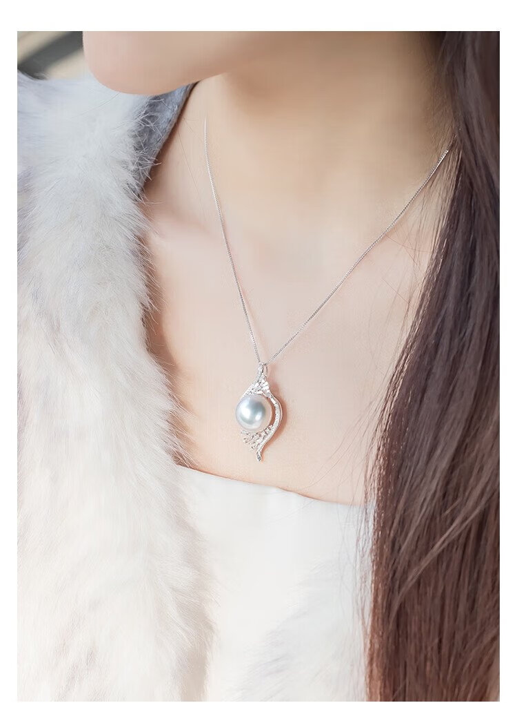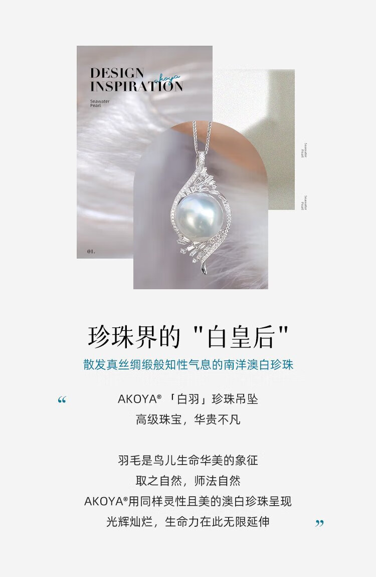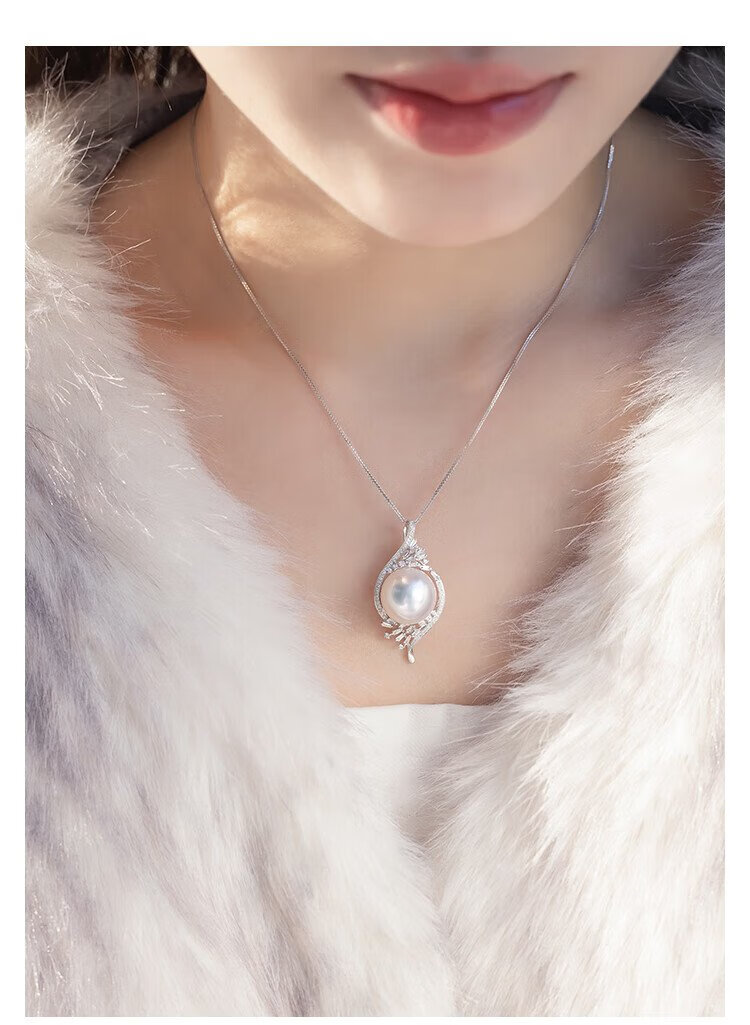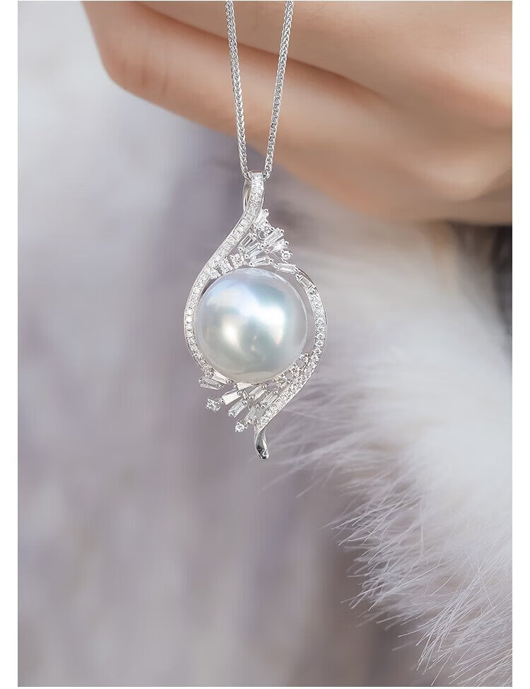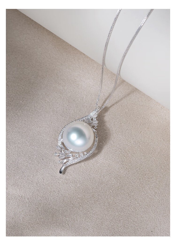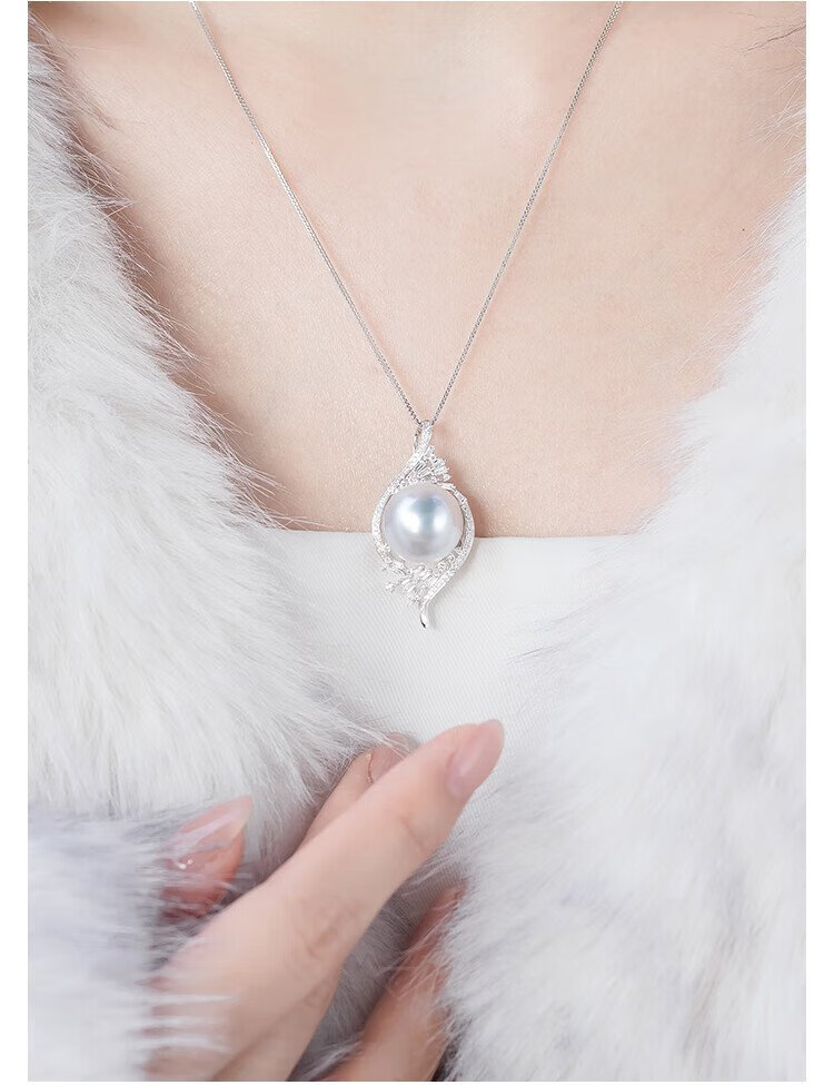 AKOYA Nanyang Australian White Seawater Pearl Pendant White Feather 18K Gold Diamond 13-14 Light Luxury and Noble Gift for Wife 2096 18K Gold White Gold 13-14mm