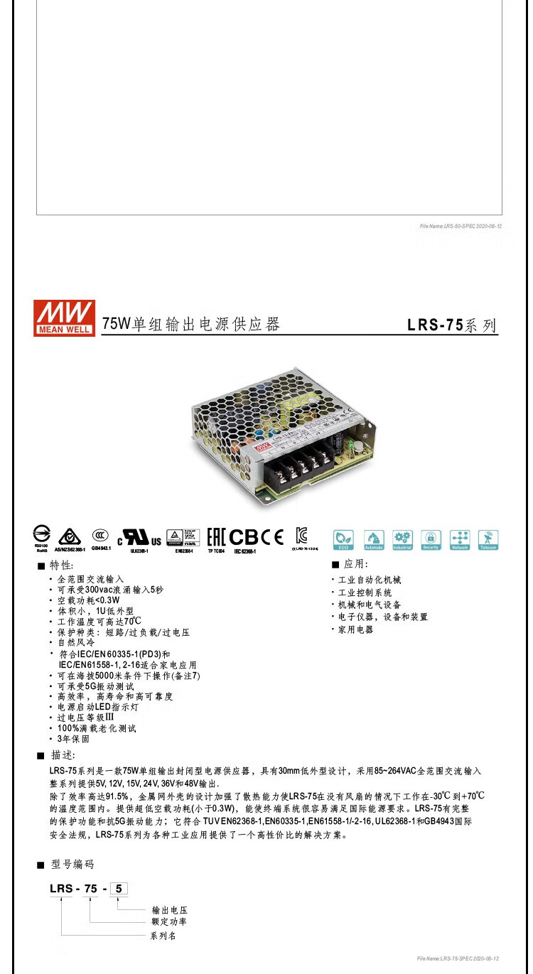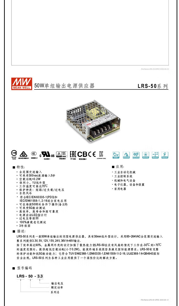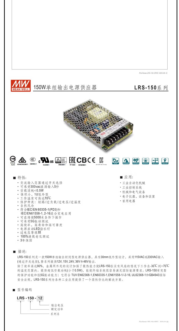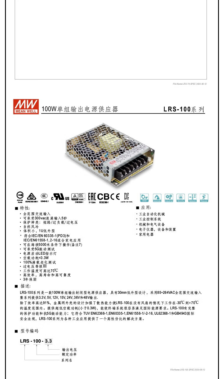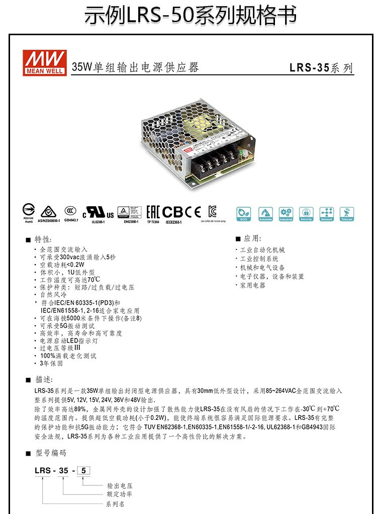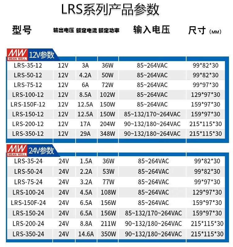 Switching power supply LRS-35/50/75/100/150/200/350-24/12/5 LRS-100-12 12V 8.5A power 100