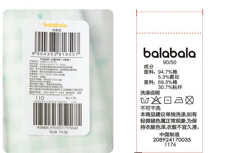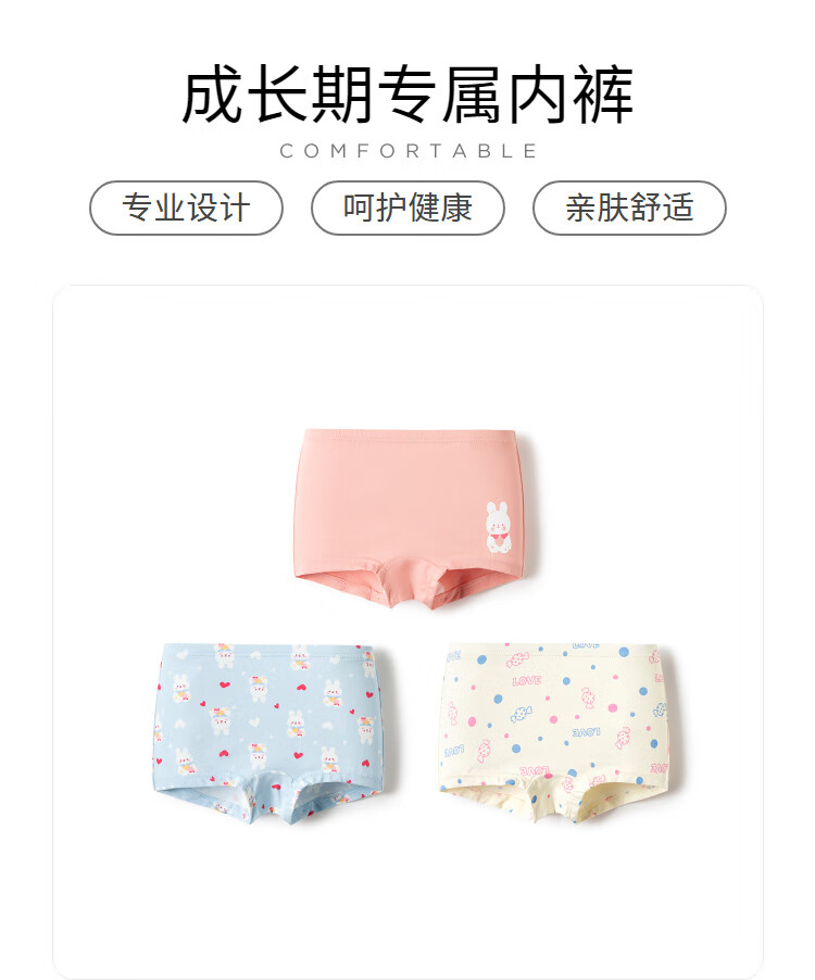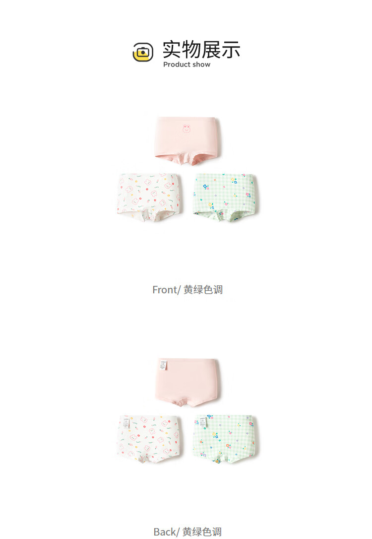 Balabala girls underwear cotton boxer autumn new children's boxer shorts skin-friendly and cute without clipping PP three-pack yellow-green tone 00334- 3 pairs 90cm