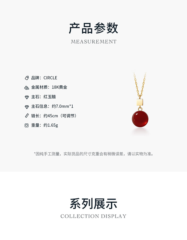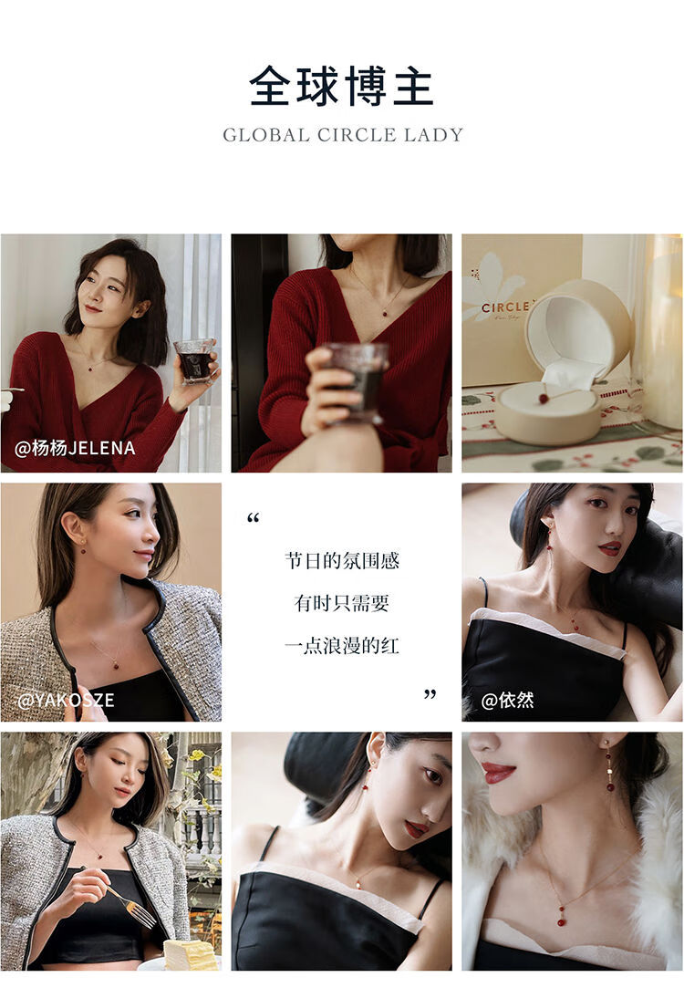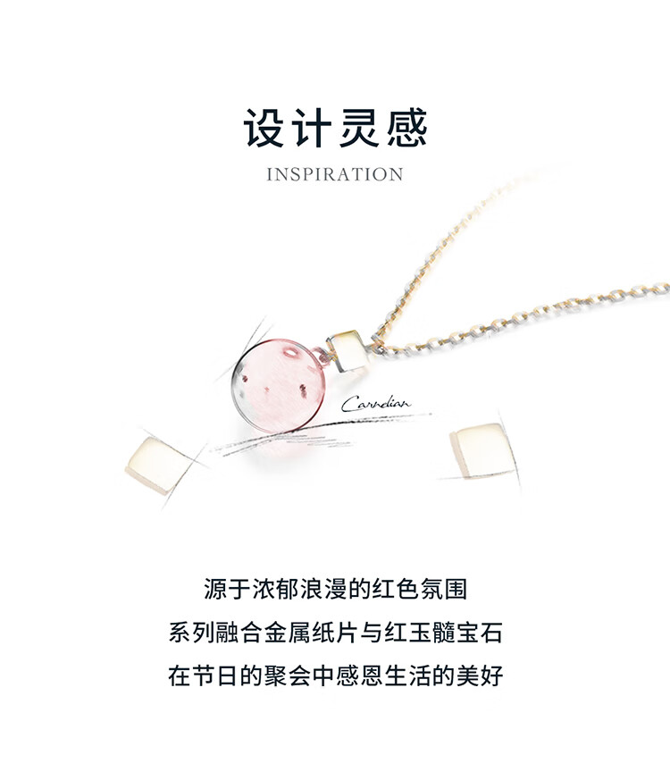 The Story of Pure Rose Wan Qian's same style CIRCLE jewelry Paper Blowing Snow Carnelian Pendant 18K gold gemstone necklace