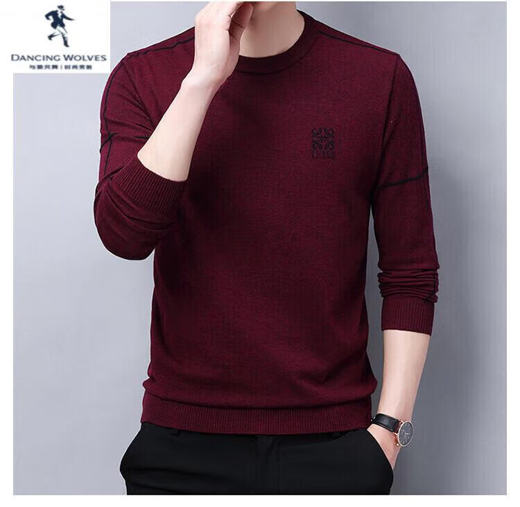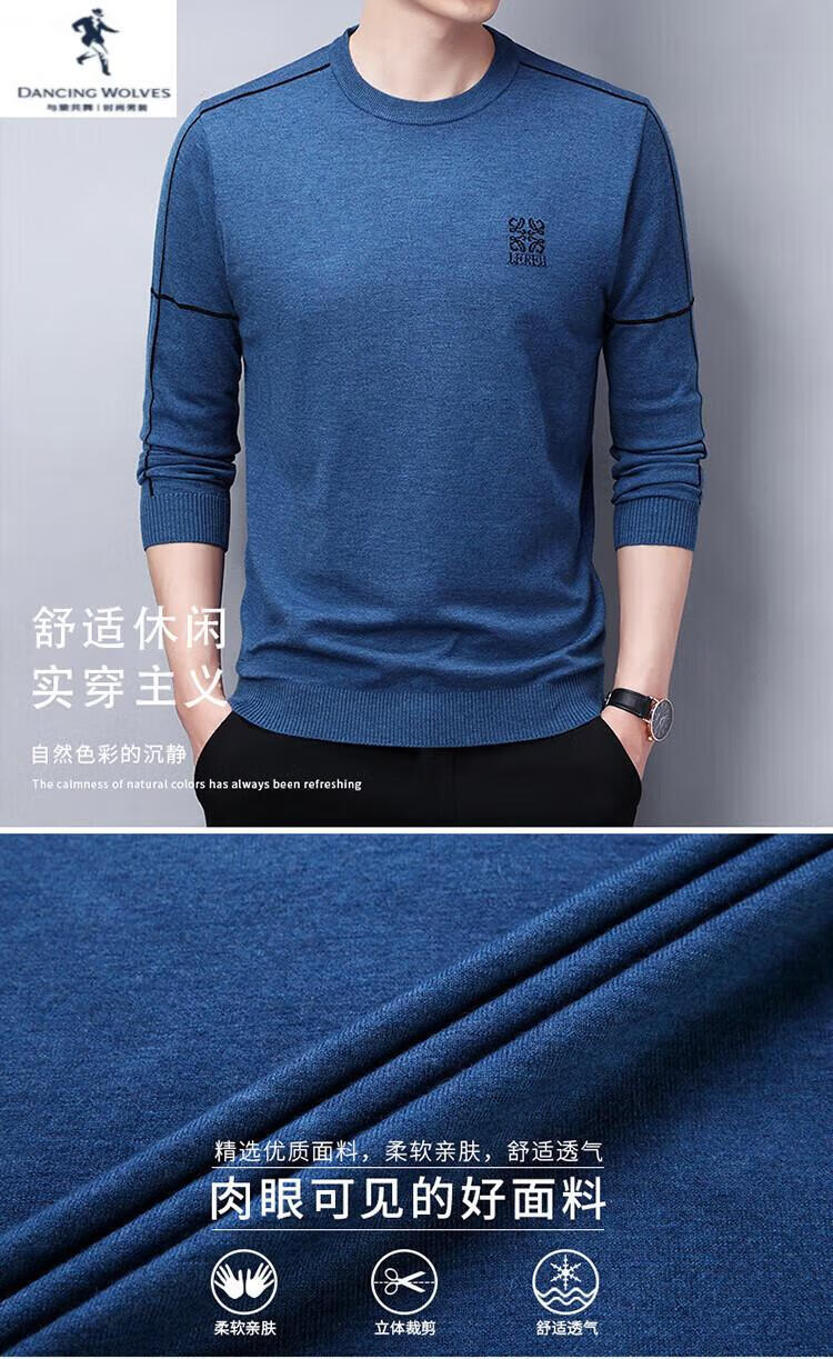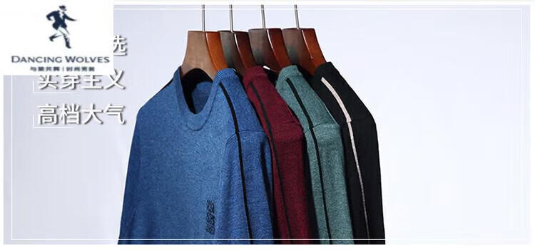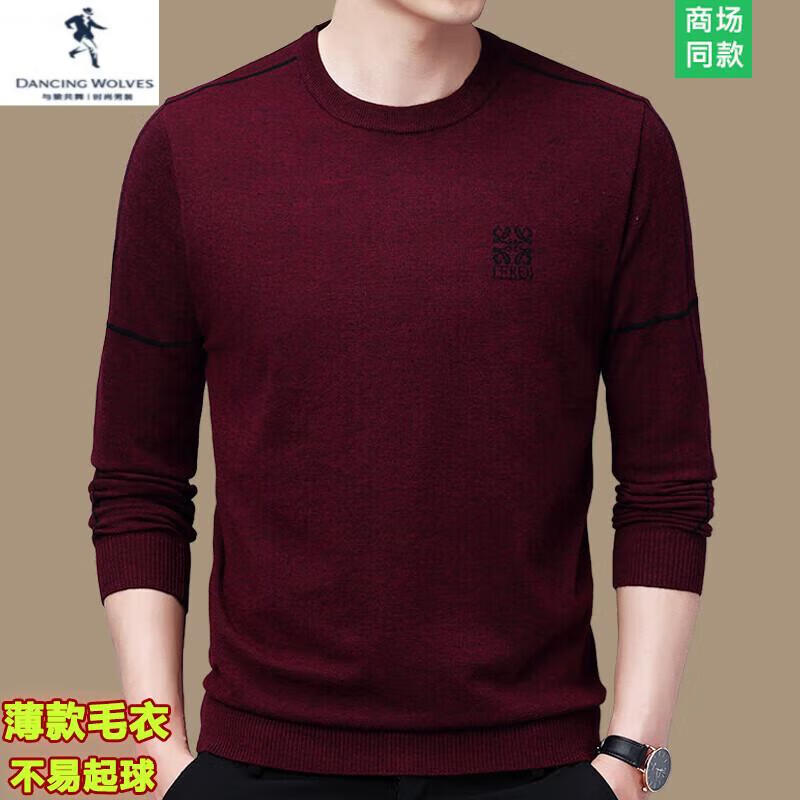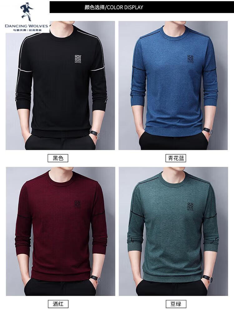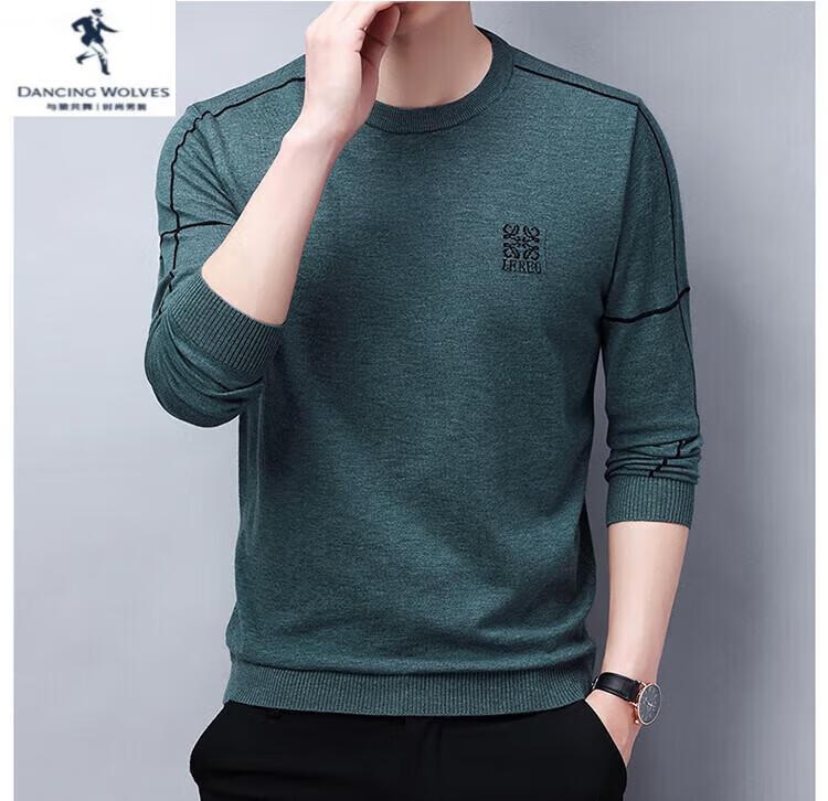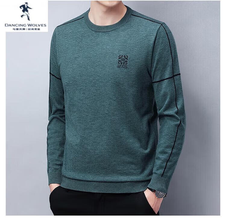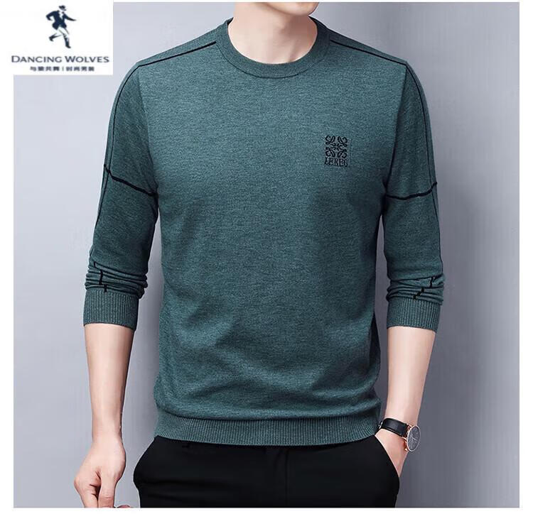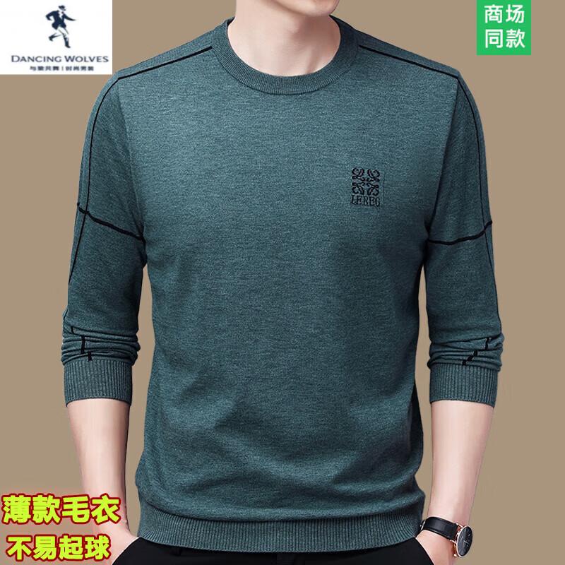 Dances with Wolves Thin Pure Wool Sweater Men's Round Neck Sweater Solid Color Middle-aged Versatile Spring and Autumn Knitted Bottoming Shirt Men Bean Green M 170/88A Recommended 121-140Jin Jin is equal to 0.5 kg
