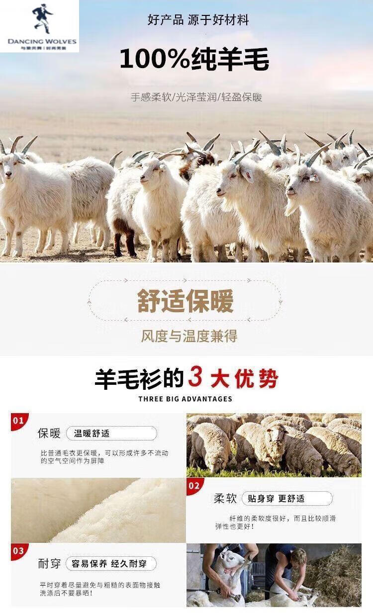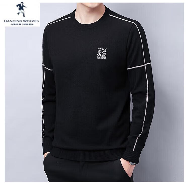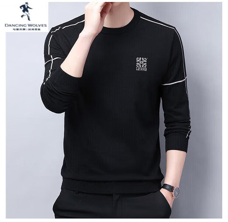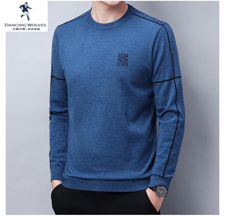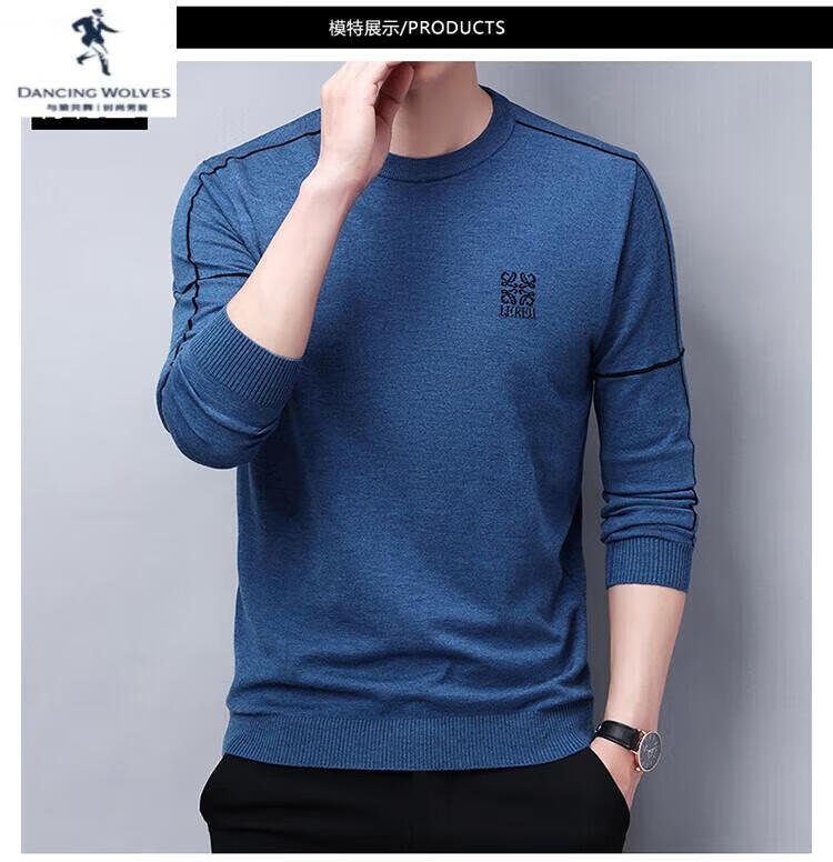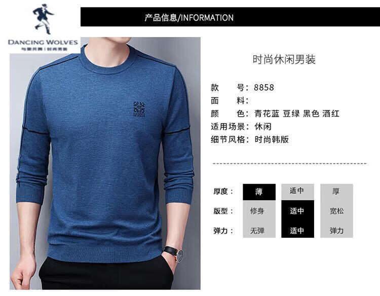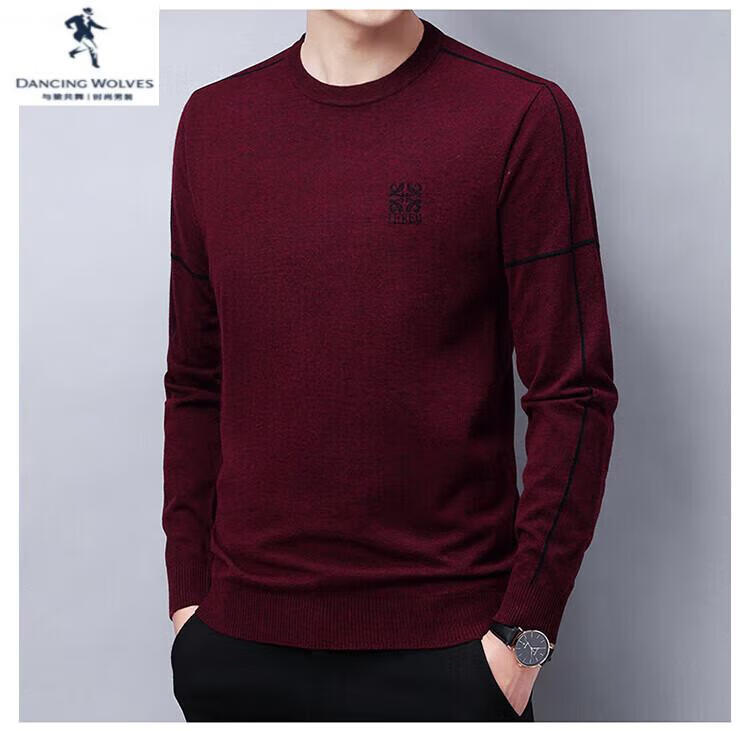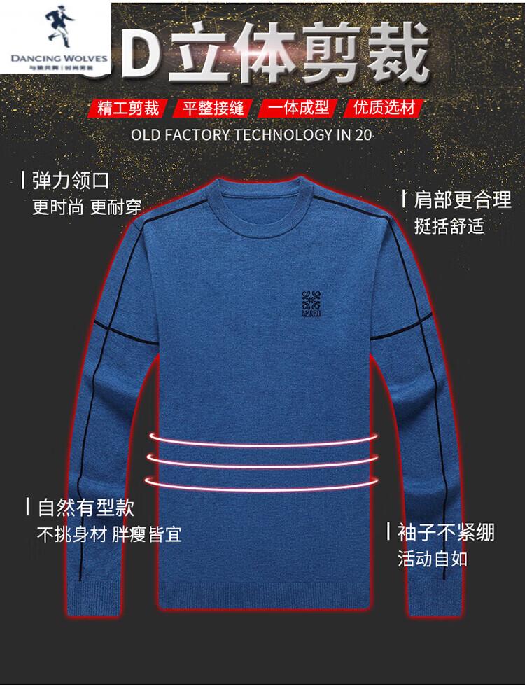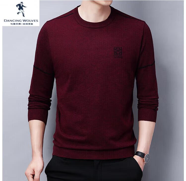 Dances with Wolves Thin Pure Wool Sweater Men's Round Neck Sweater Solid Color Middle-aged Versatile Spring and Autumn Knitted Bottoming Shirt Men Bean Green M 170/88A Recommended 121-140Jin Jin is equal to 0.5 kg