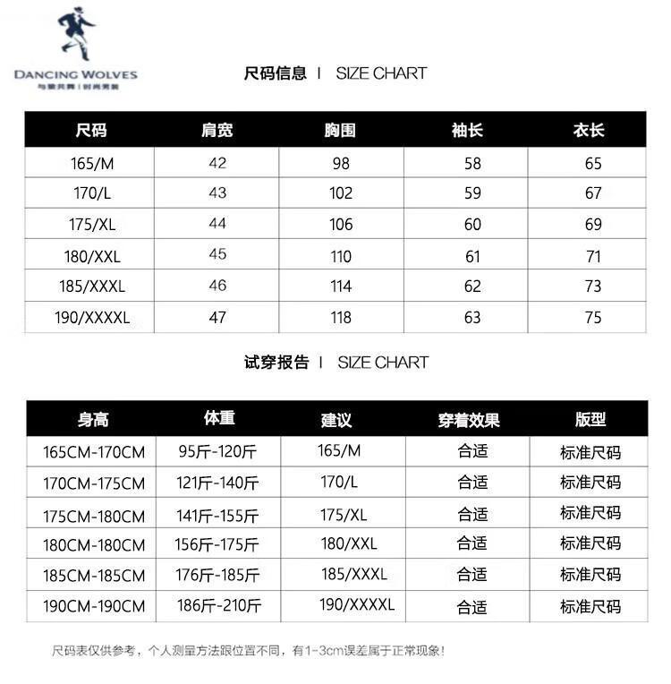 China (cm) 165 / 88-90 170 / 96-98 175 / 108-110 180 / 118-122 185 / 126-130