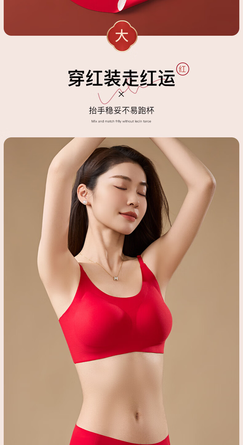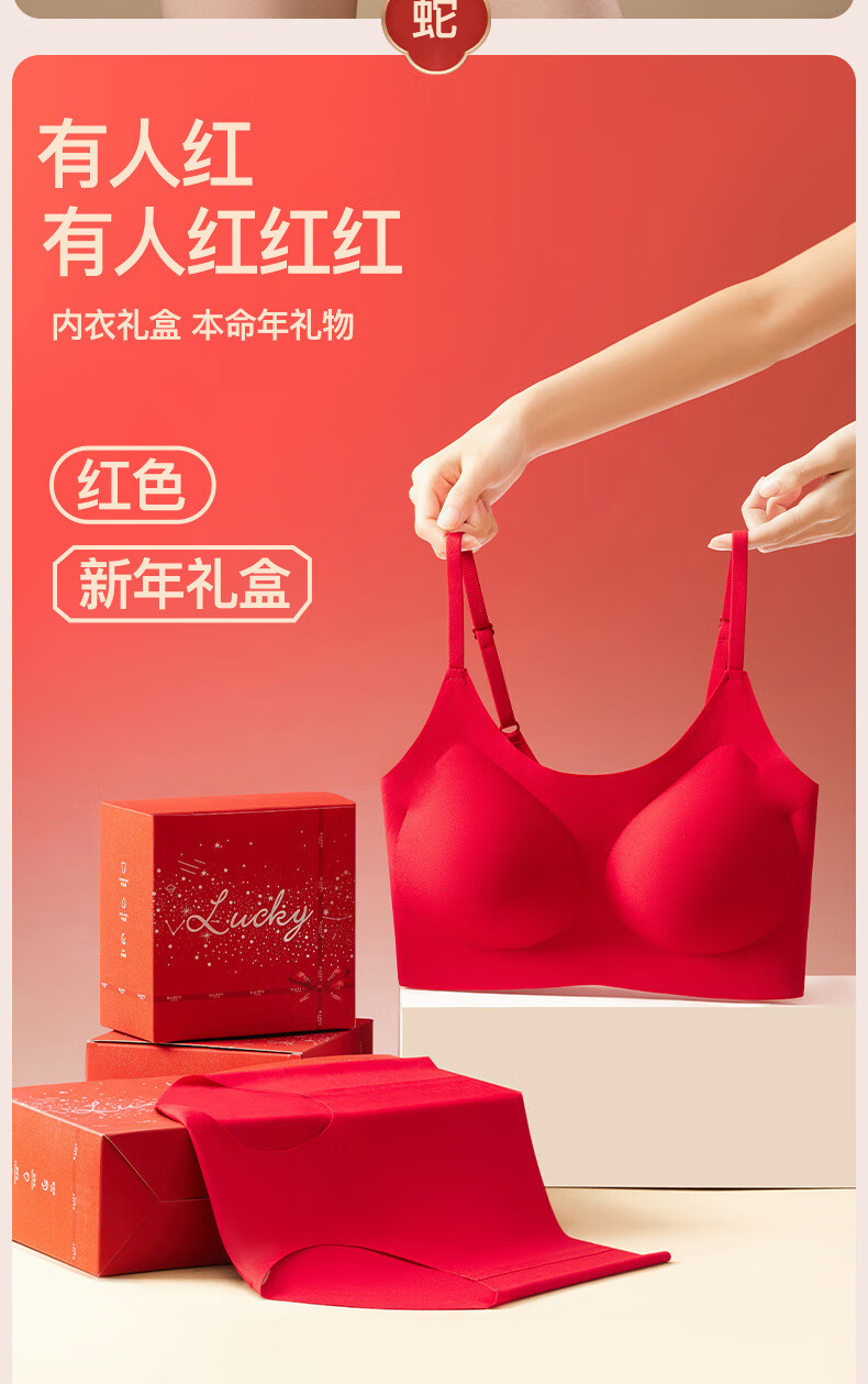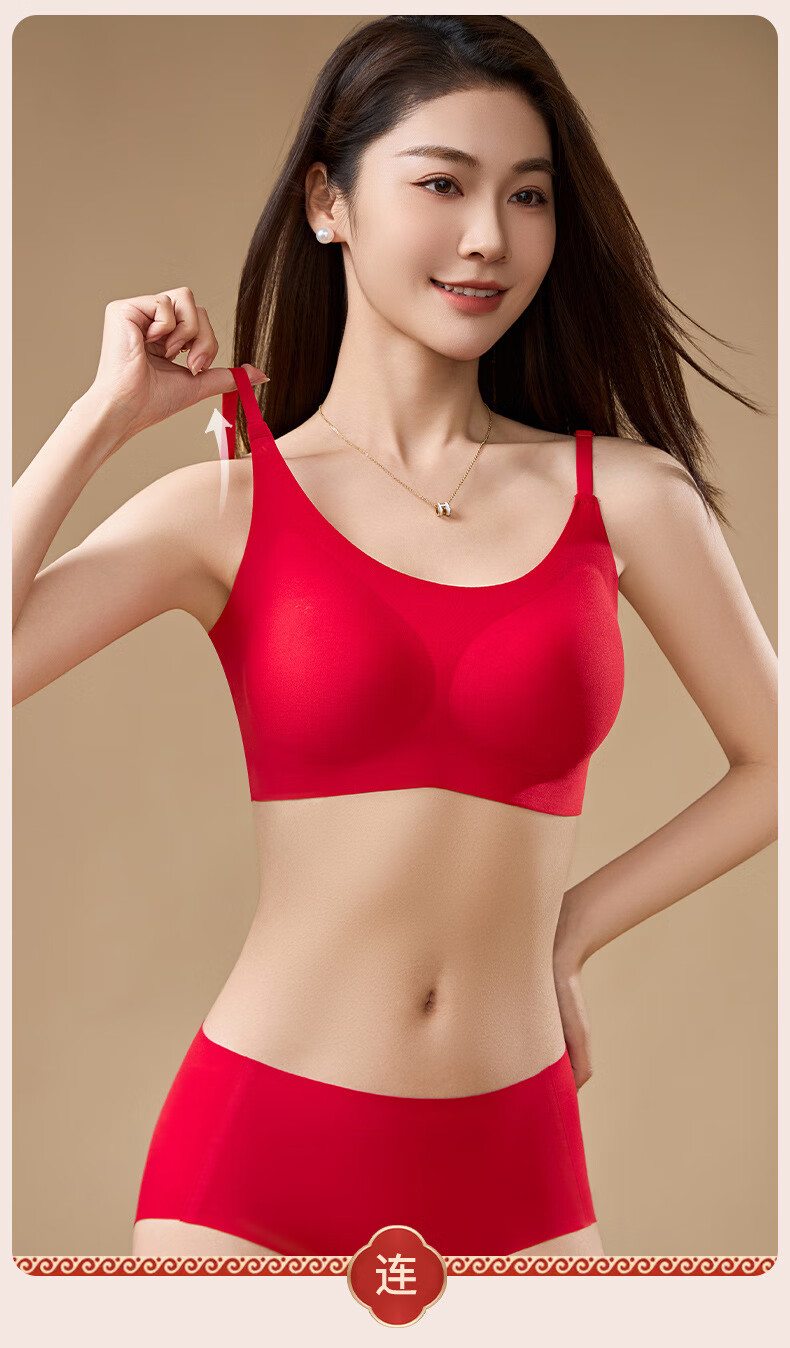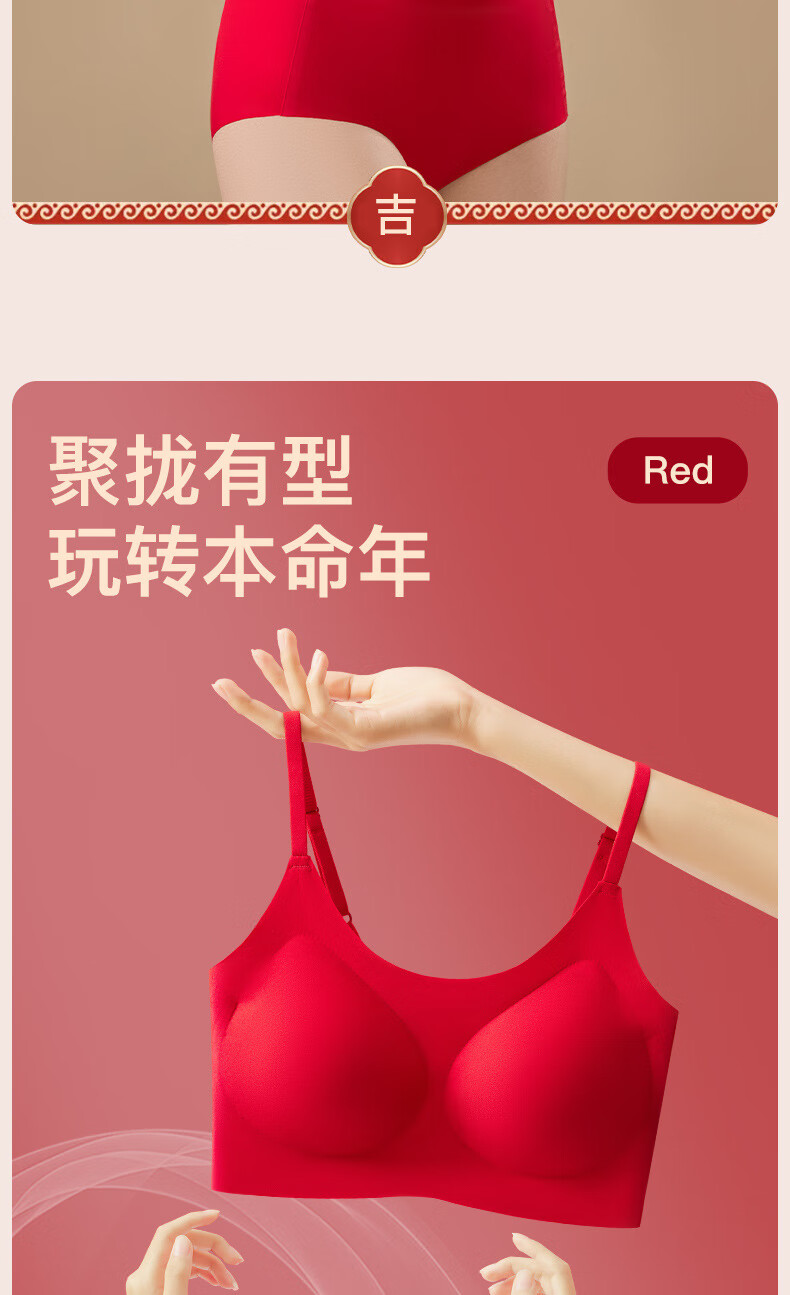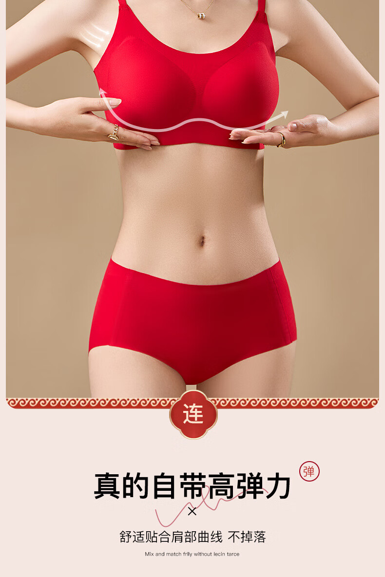 Adore Autumn and Summer Zodiac Year Big Red Underwear Women's Zero-Restraint Seamless Wire-Free One-piece Fixed Cup Beautiful Back Bra and Panties Set Good Luck Red One Size (80-120Jin Jin is equal to 0.5kg)