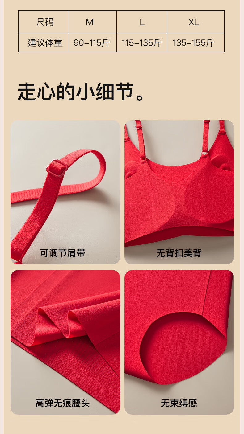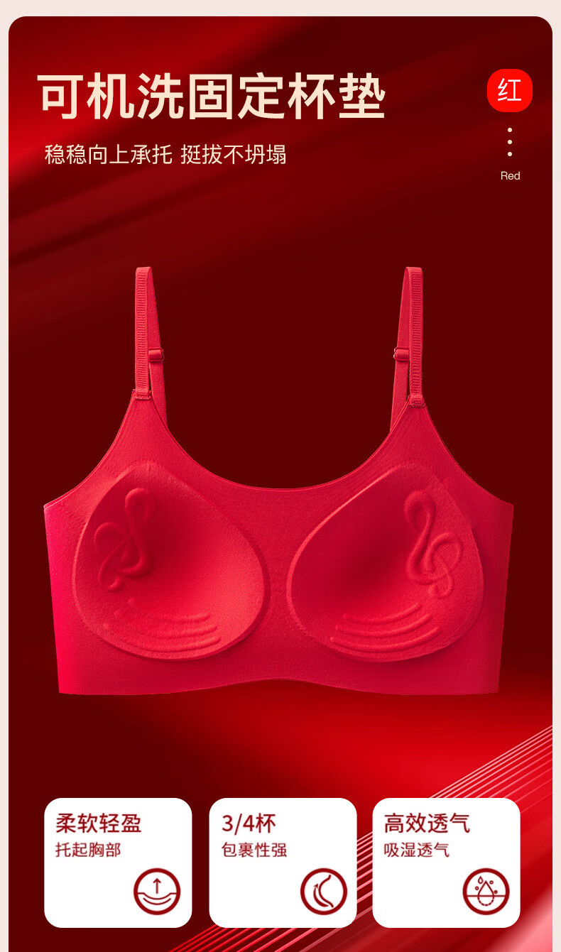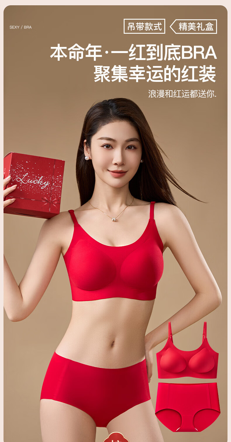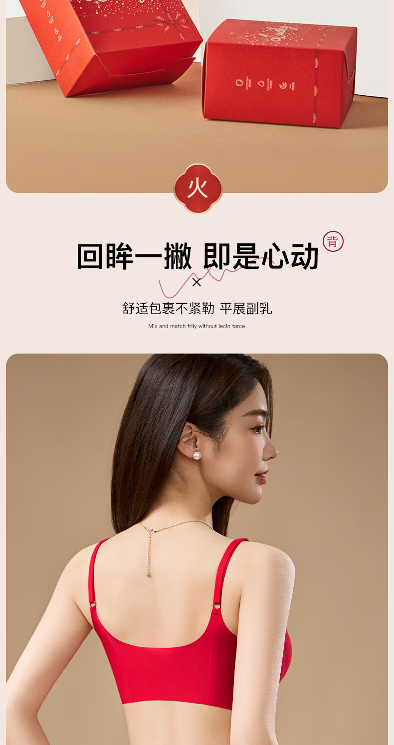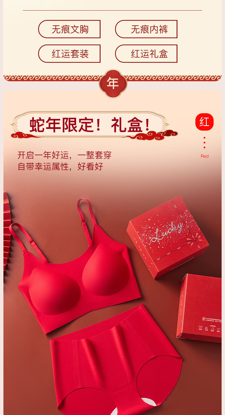 Adore Autumn and Summer Zodiac Year Big Red Underwear Women's Zero-Restraint Seamless Wire-Free One-piece Fixed Cup Beautiful Back Bra and Panties Set Good Luck Red One Size (80-120Jin Jin is equal to 0.5kg)