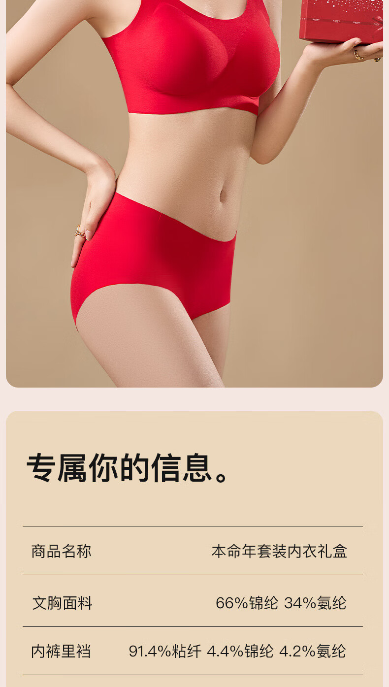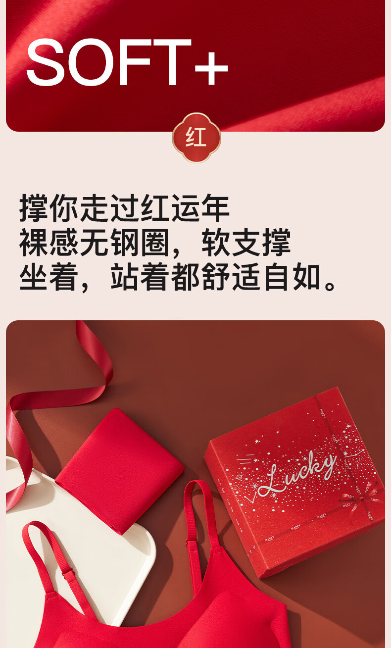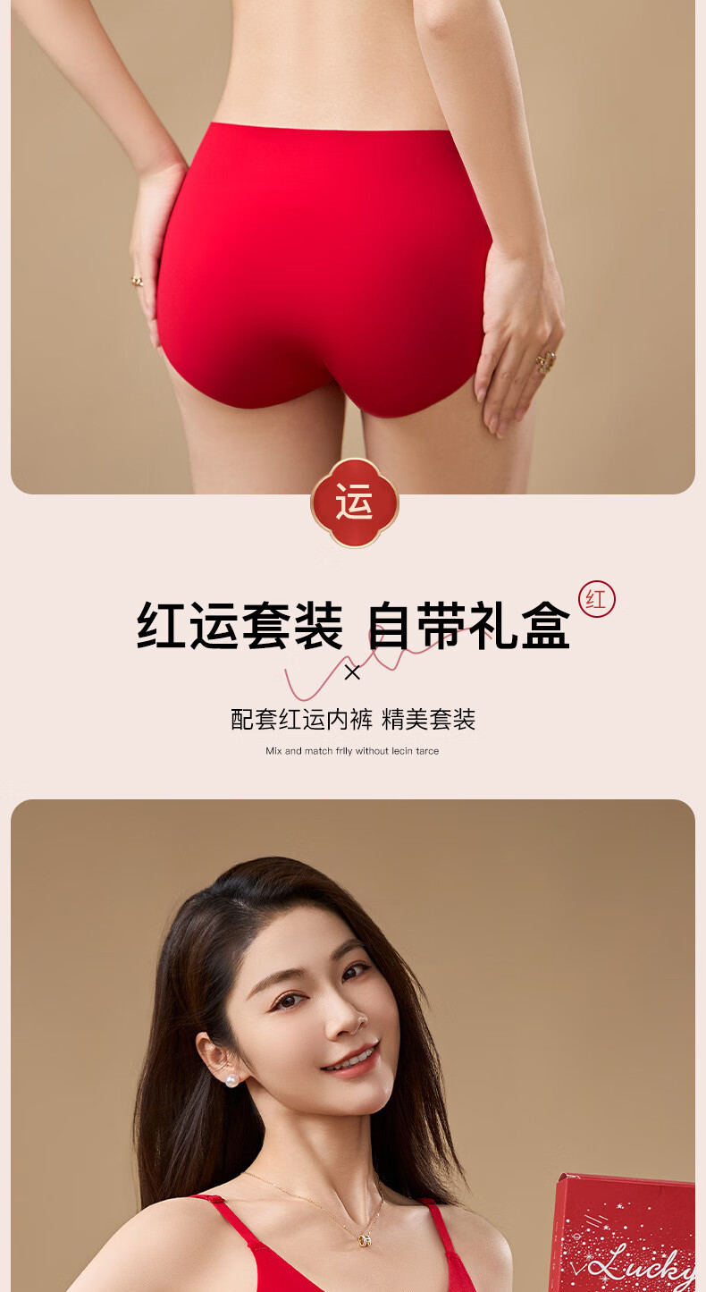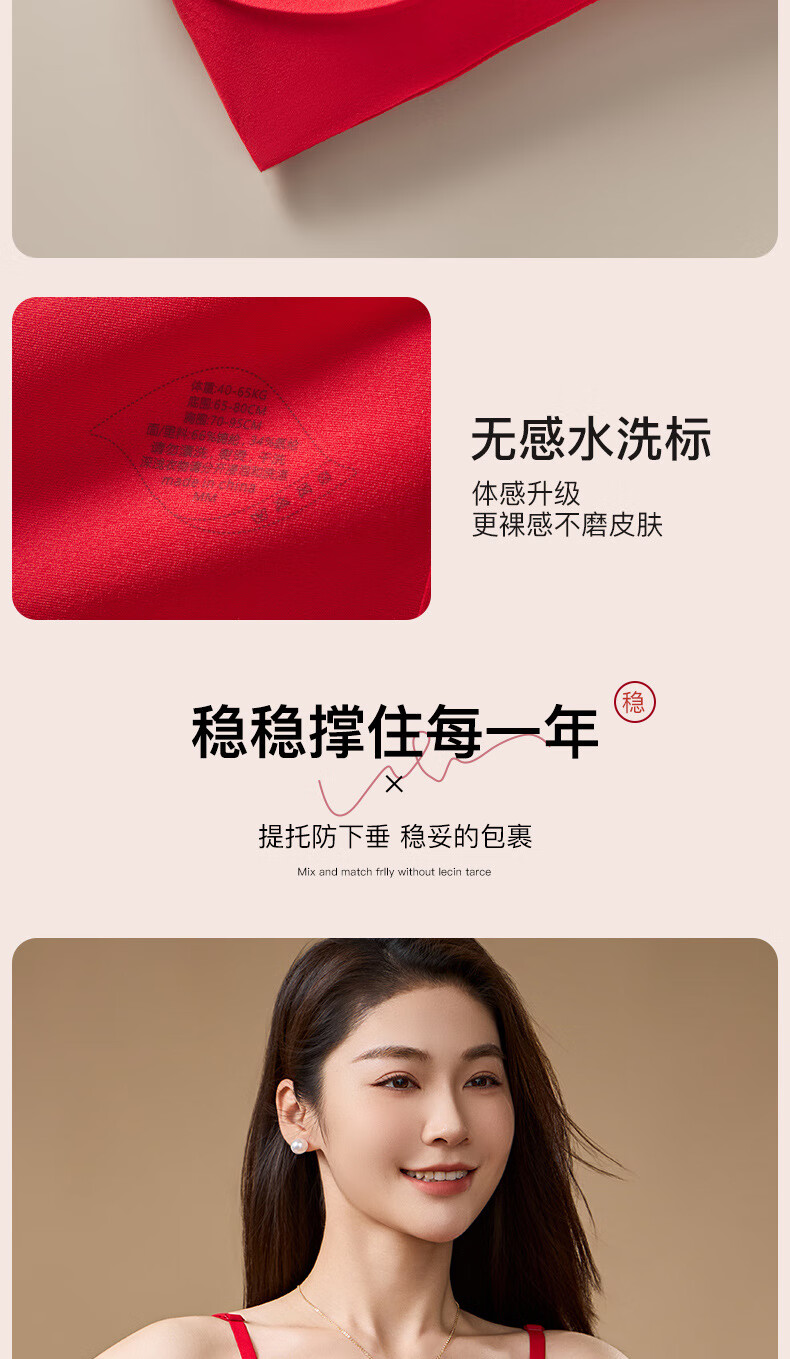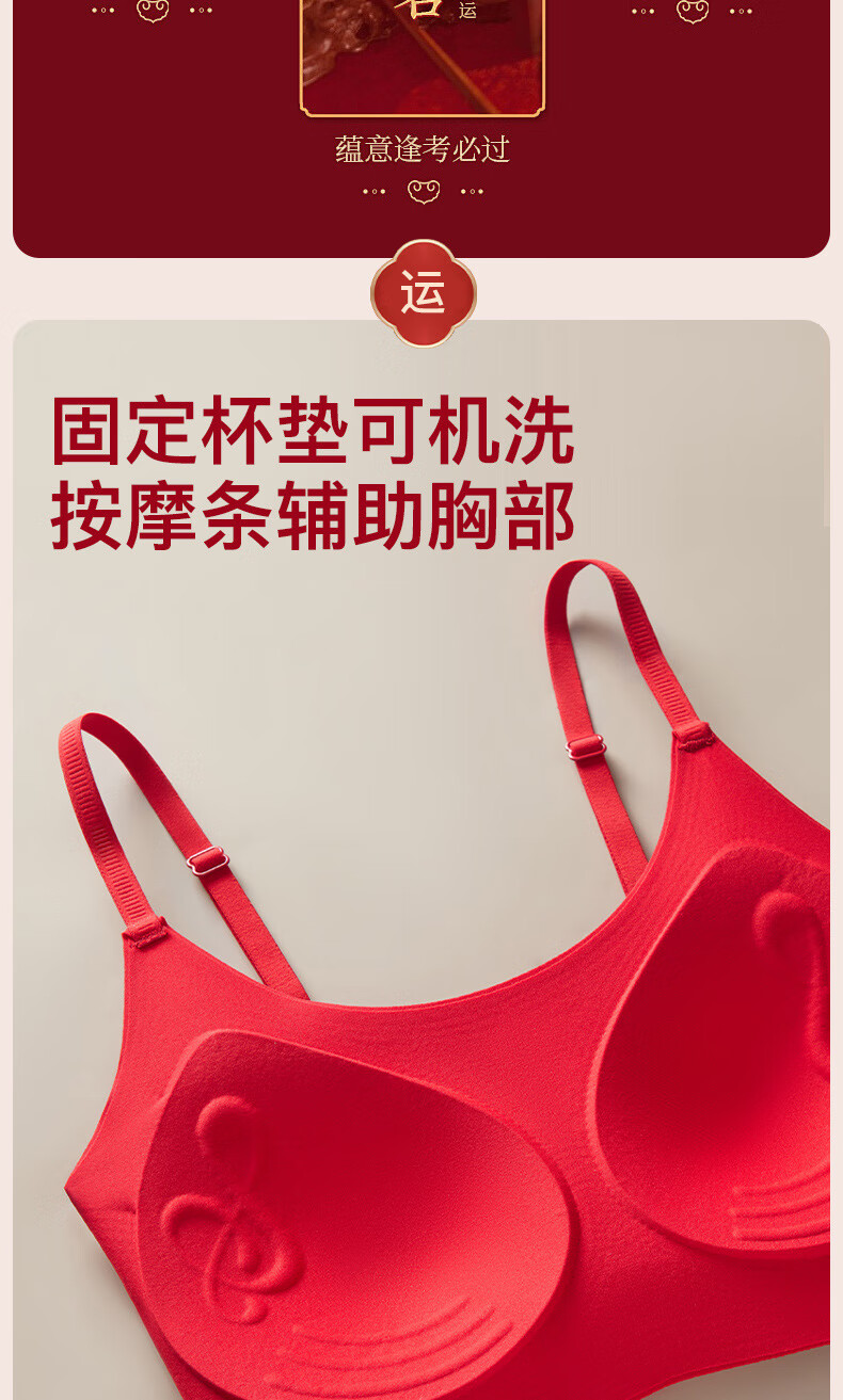 Adore Autumn and Summer Zodiac Year Big Red Underwear Women's Zero-Restraint Seamless Wire-Free One-piece Fixed Cup Beautiful Back Bra and Panties Set Good Luck Red One Size (80-120Jin Jin is equal to 0.5kg)