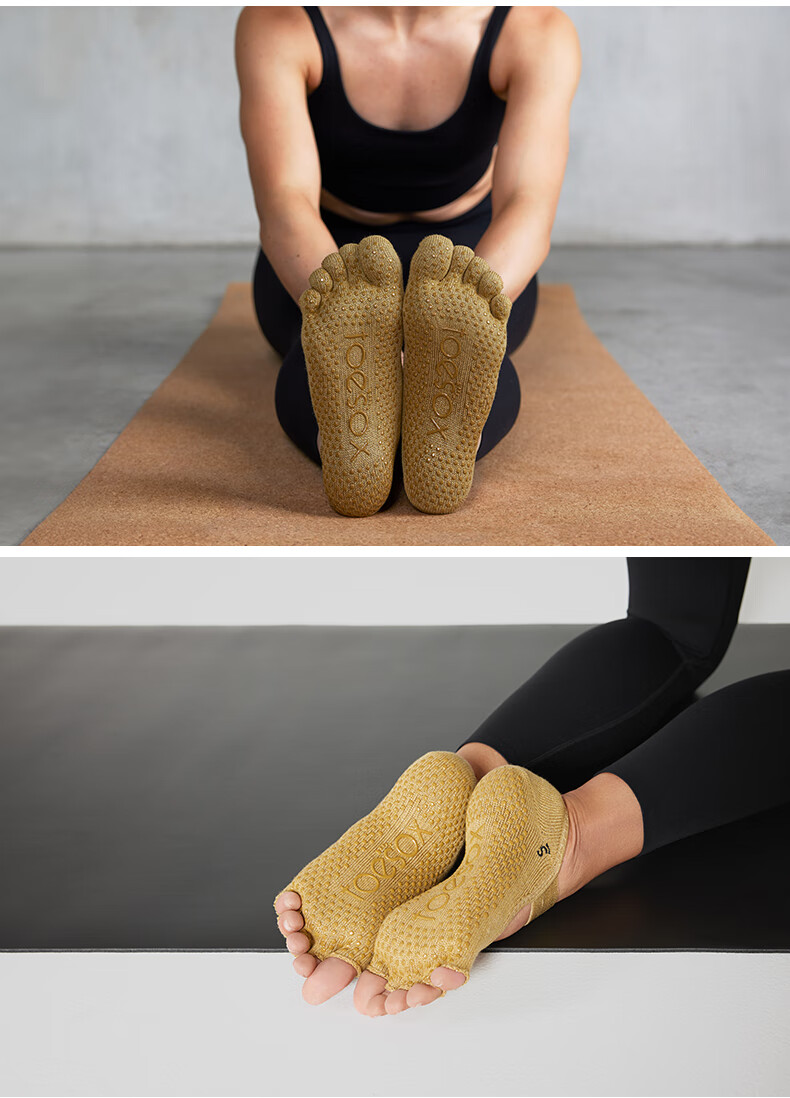 Toesox yoga socks non-slip rubber Pilates sports five-toe socks Mia series black ribbon S (size 34~38)