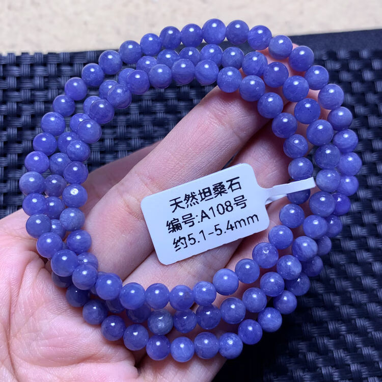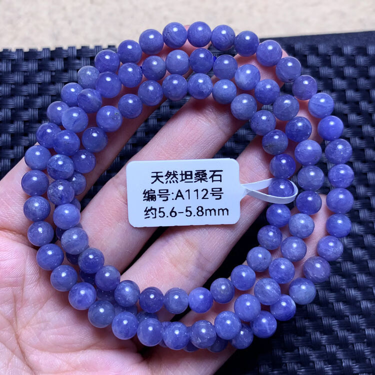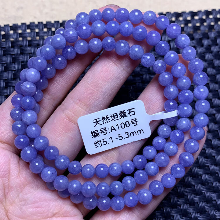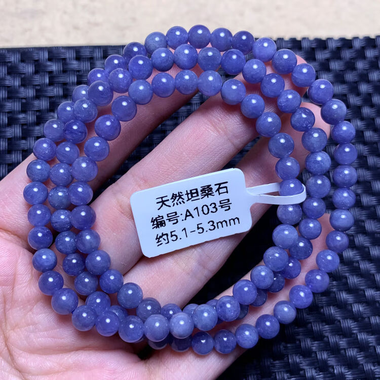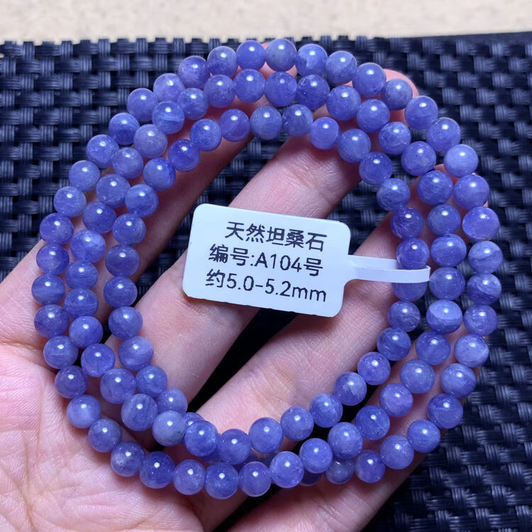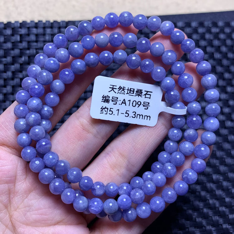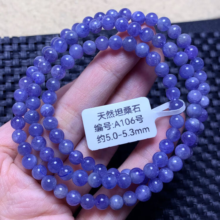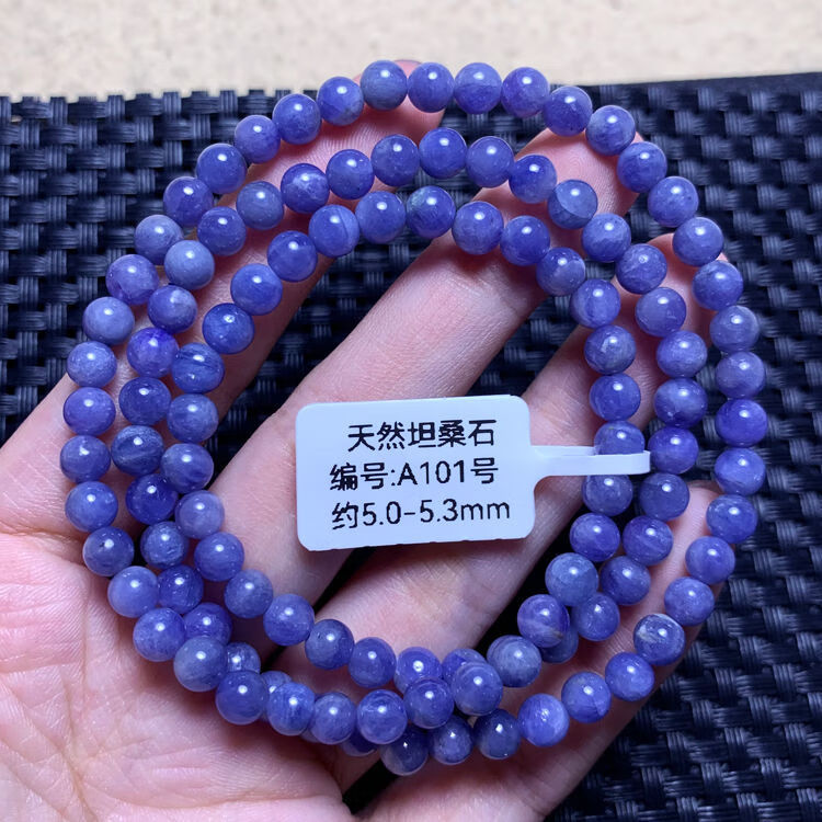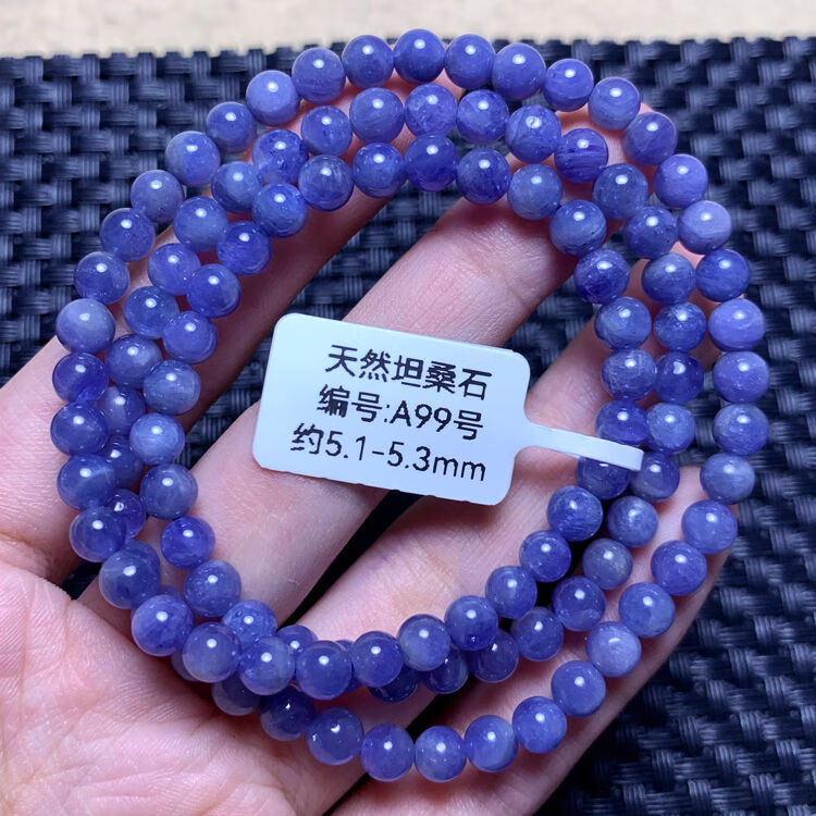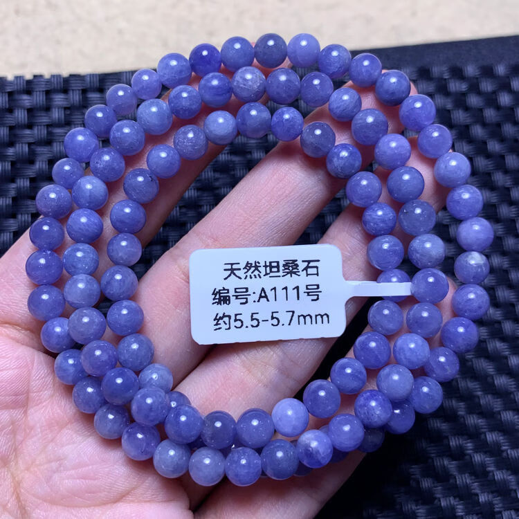 Henglijia Natural Ocean Heart Tanzanite Three Circle Bracelet Buddha Beads Purple Sapphire Crystal Bracelet Tanzanian Gemstone Jewelry for Women (A102) Approximately 5.1-5.2mm