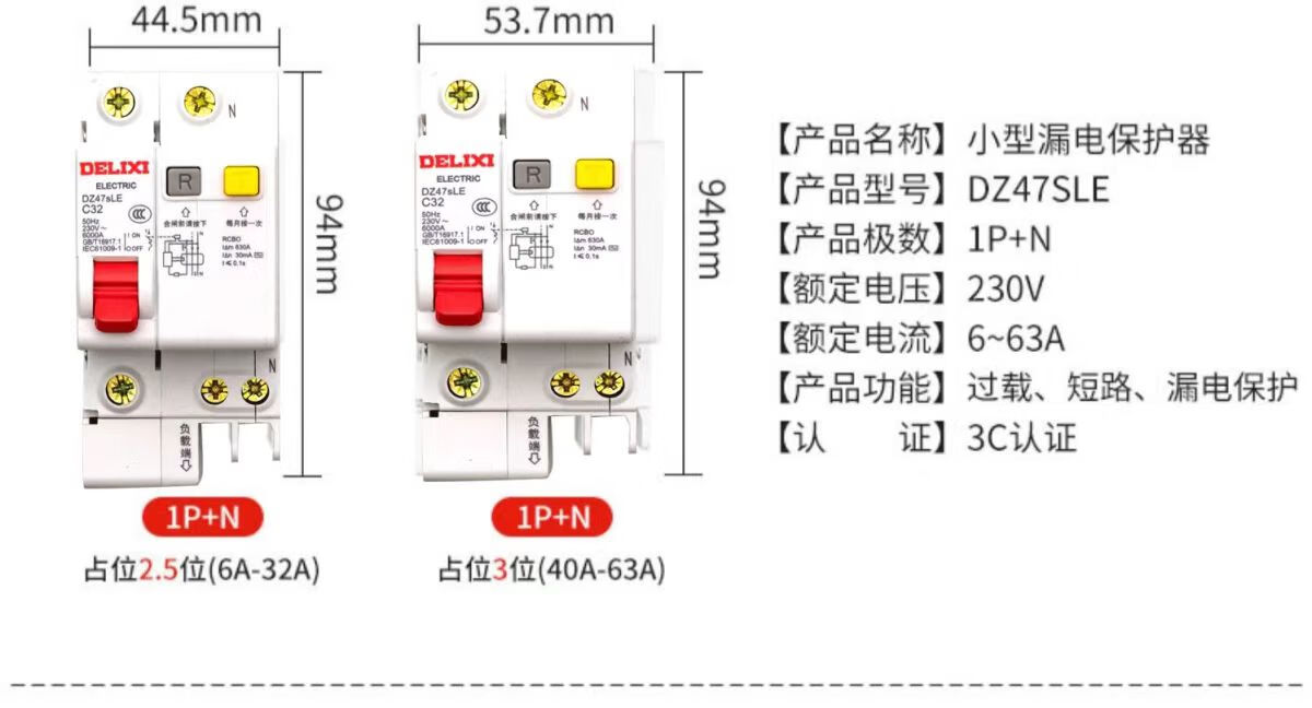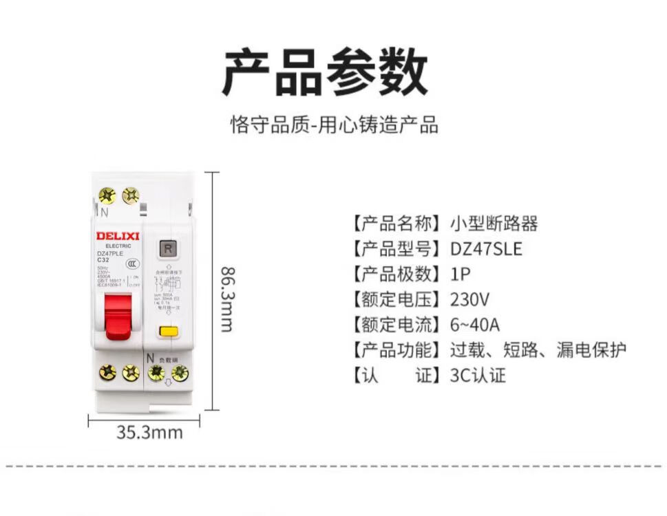 Delixi electrical air switch with leakage protector 63A household circuit breaker 220V leakage protection 40A 1P+N