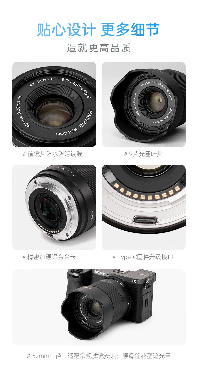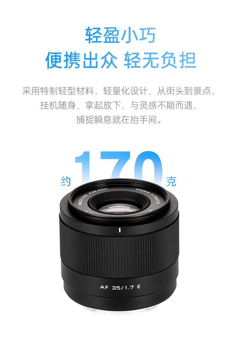 Vlitrox 35mm F1.7 lens autofocus large aperture fixed focus portrait lens AIR 35 1.7 Z mount E mount X mount imaging store Sony E mount one year extended warranty 52mm